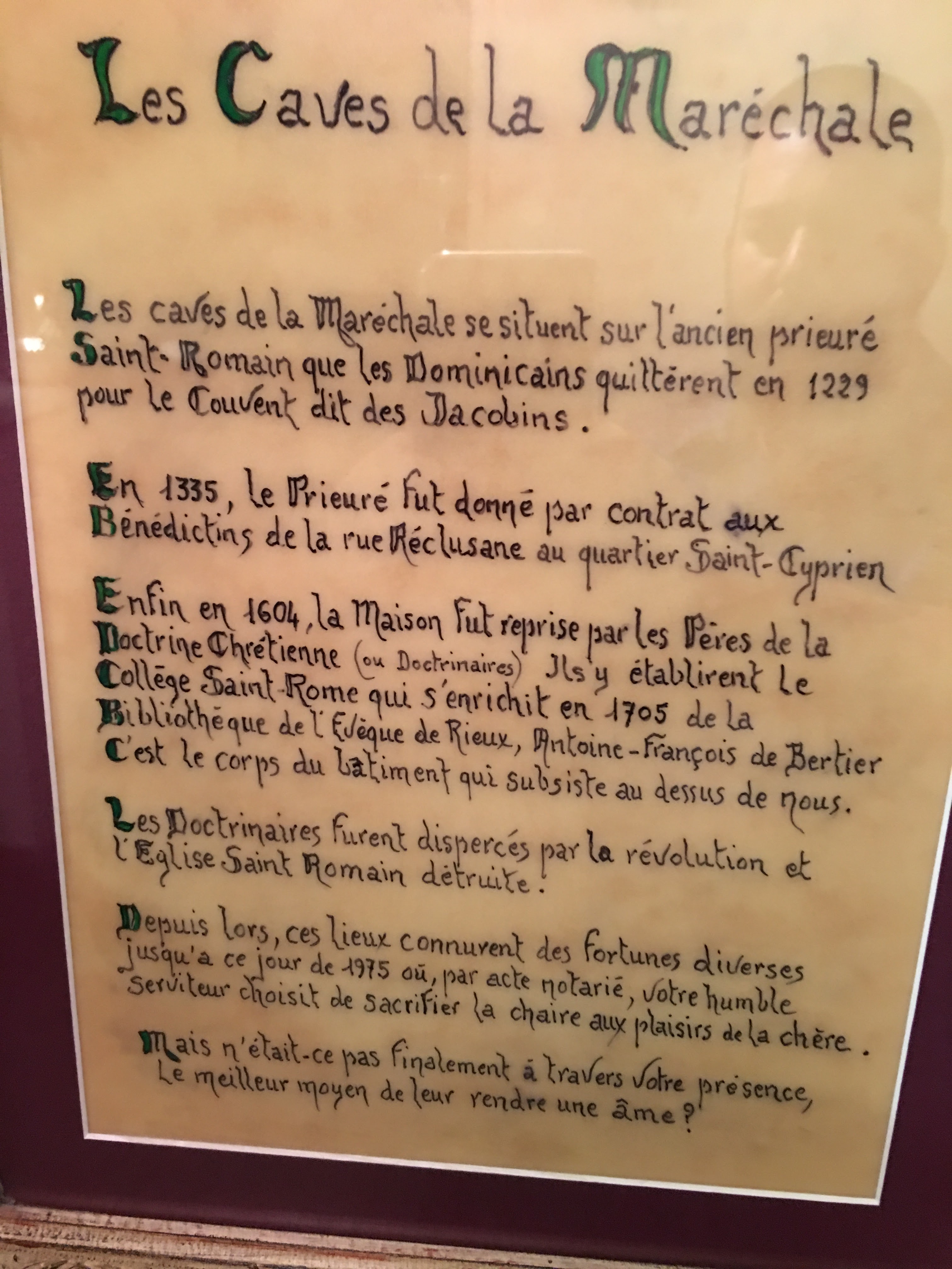 Toujours aussi agréable. Un rapport qualité prix qui défie toute concurrence. Un personnel professionnel et sympathique. Il s'agit d'un menu du soir à 44€ qui est juste parfait. Bien entendu cela n'est en rien comparable à un menu à 145 € dans un illustre restaurant voisin. Il faut comparer ce qui est comparable et éviter les critiques qui n'ont pas lieu d'être. Aux caves de la Maréchal nous pouvons manger bon dans un cadre enchanteur et une ambiance cosy autant que plaisante. Je recommande pour tous