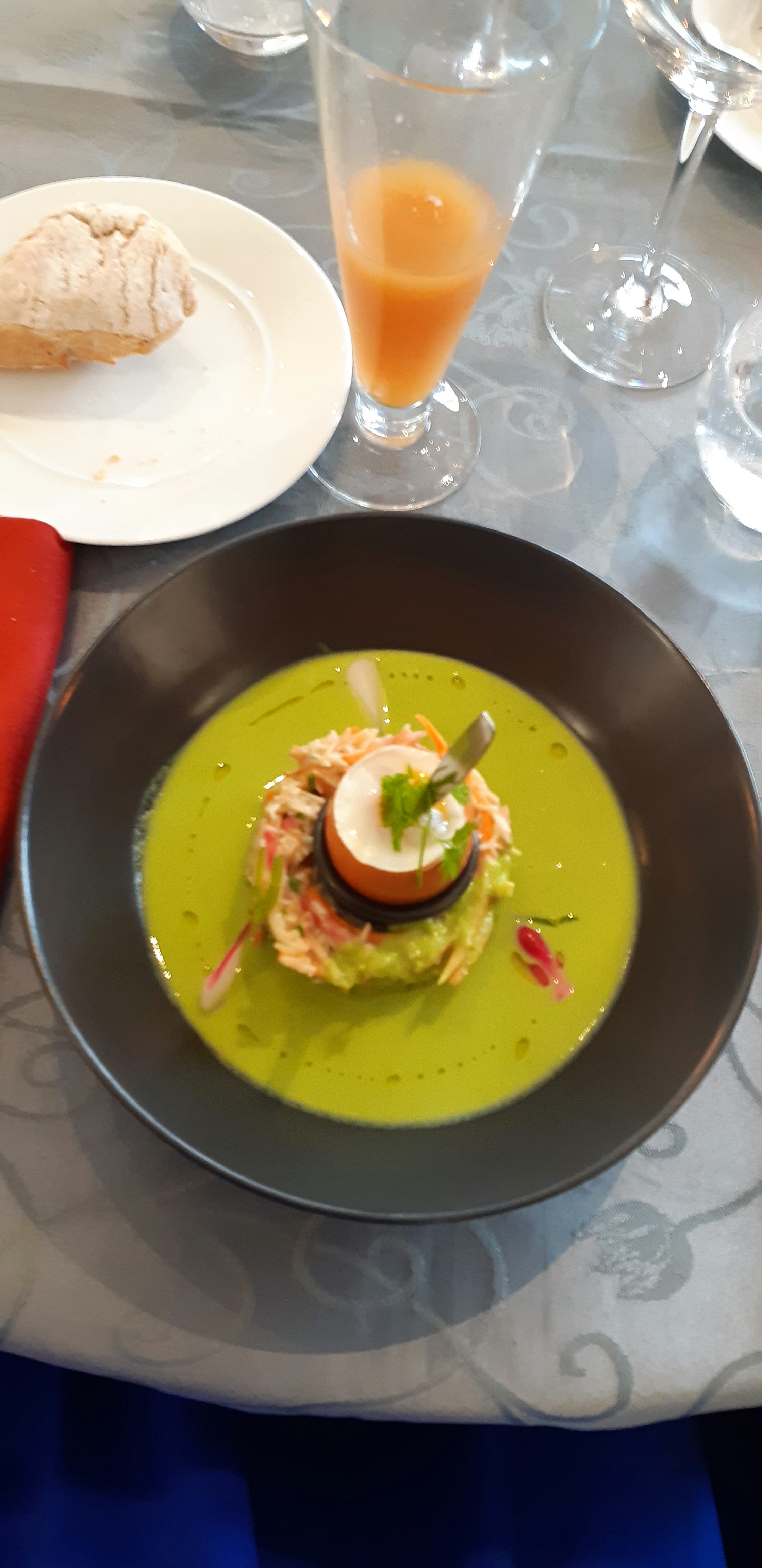 Superbe ! Tout était délicieux fin gourmand avec des légumes différents haricot coco, chou romanesco... mélange chaud froid, une très belle présentation d'assiettes, des énoncés de plats excellent pour un avant goût aussi doux à l'oreille que fin en bouche. L'accueil très agréable, les serveurs discret serviable à l'écoute. Une salle spacieuse un décor cosi. Tout était SUPER ! Encore merci.