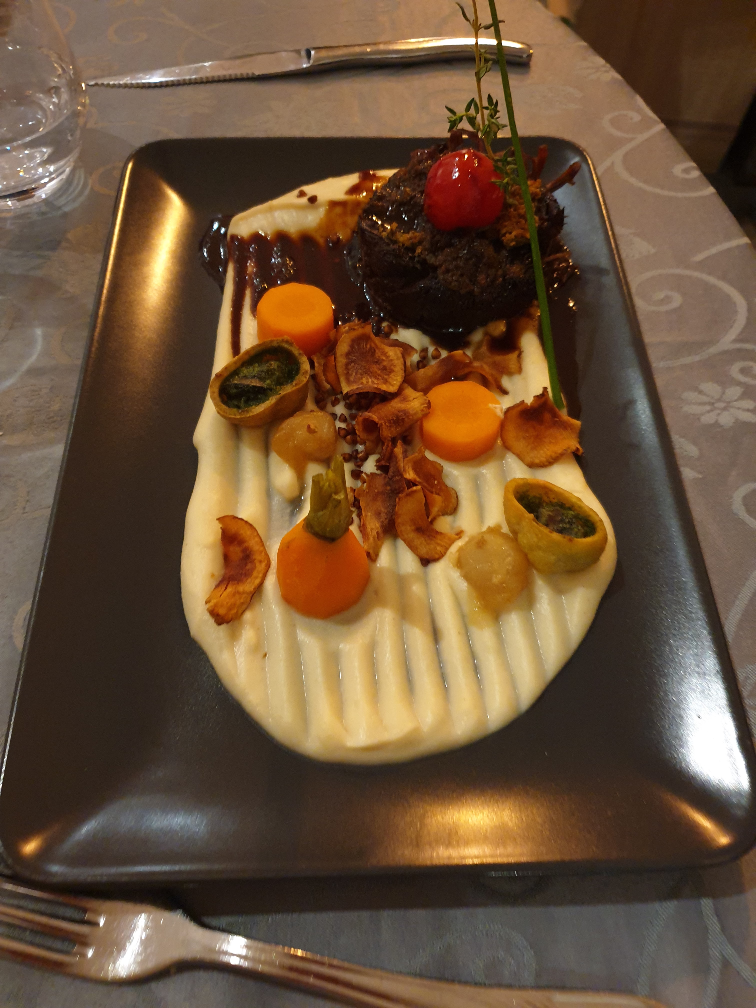 L'épaule de veau était très sec je déconseille,je préfère fortement mon menu kebab sauce blanche à 6€50 de st Étienne et de plus sur les autres tables il y avait des pots de fleurs et pas sur la mienne et en dernier la cheminée était éteinte alors qu'il faisait froid.