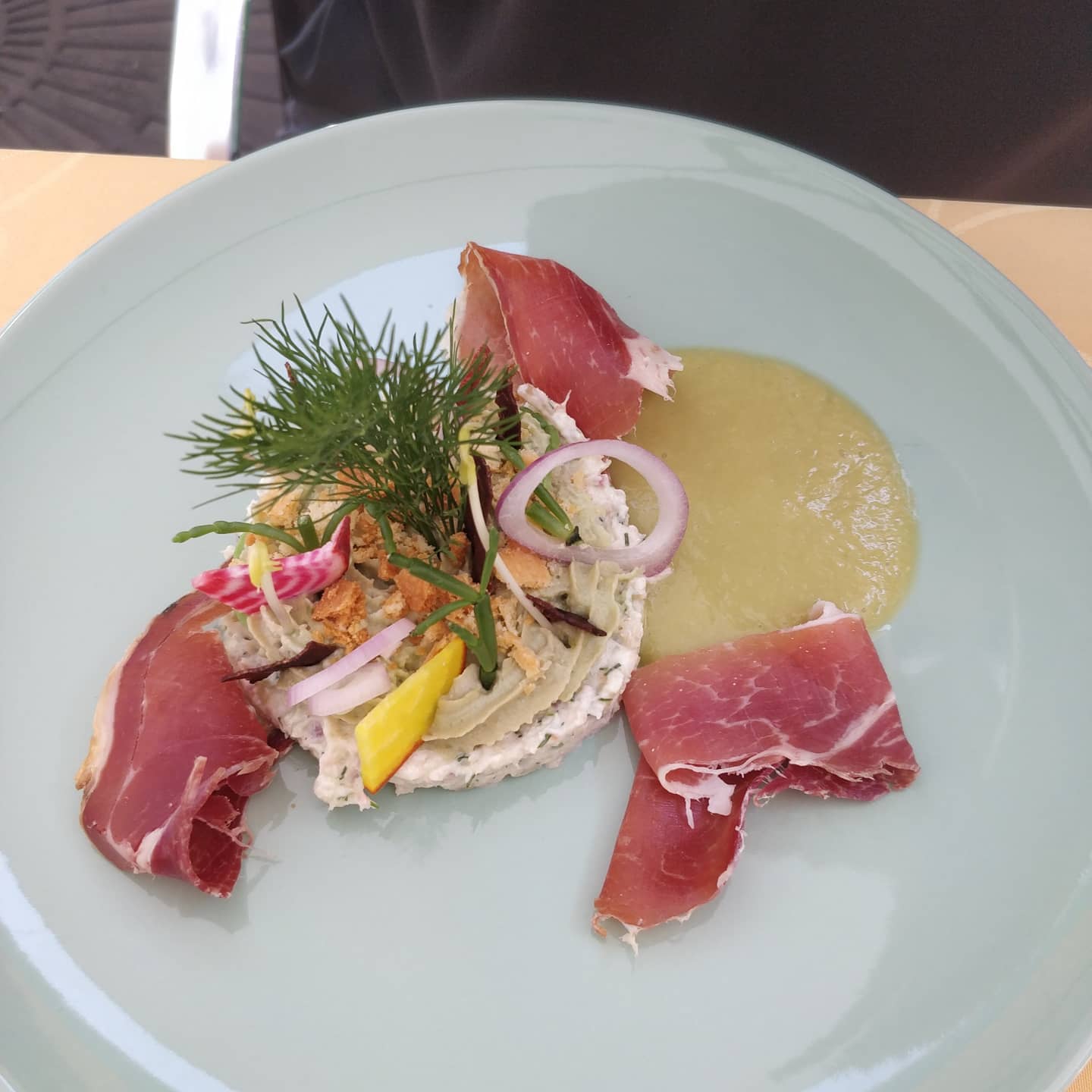 Très beau cadre avec un très bon rapport qualité prix ,produit frais carte d été avec des mélanges innovants (dessert avec du fenouille ou de la lavande coquelicot chèvre menthe….) Menu un peu complex pour mon palais À tester