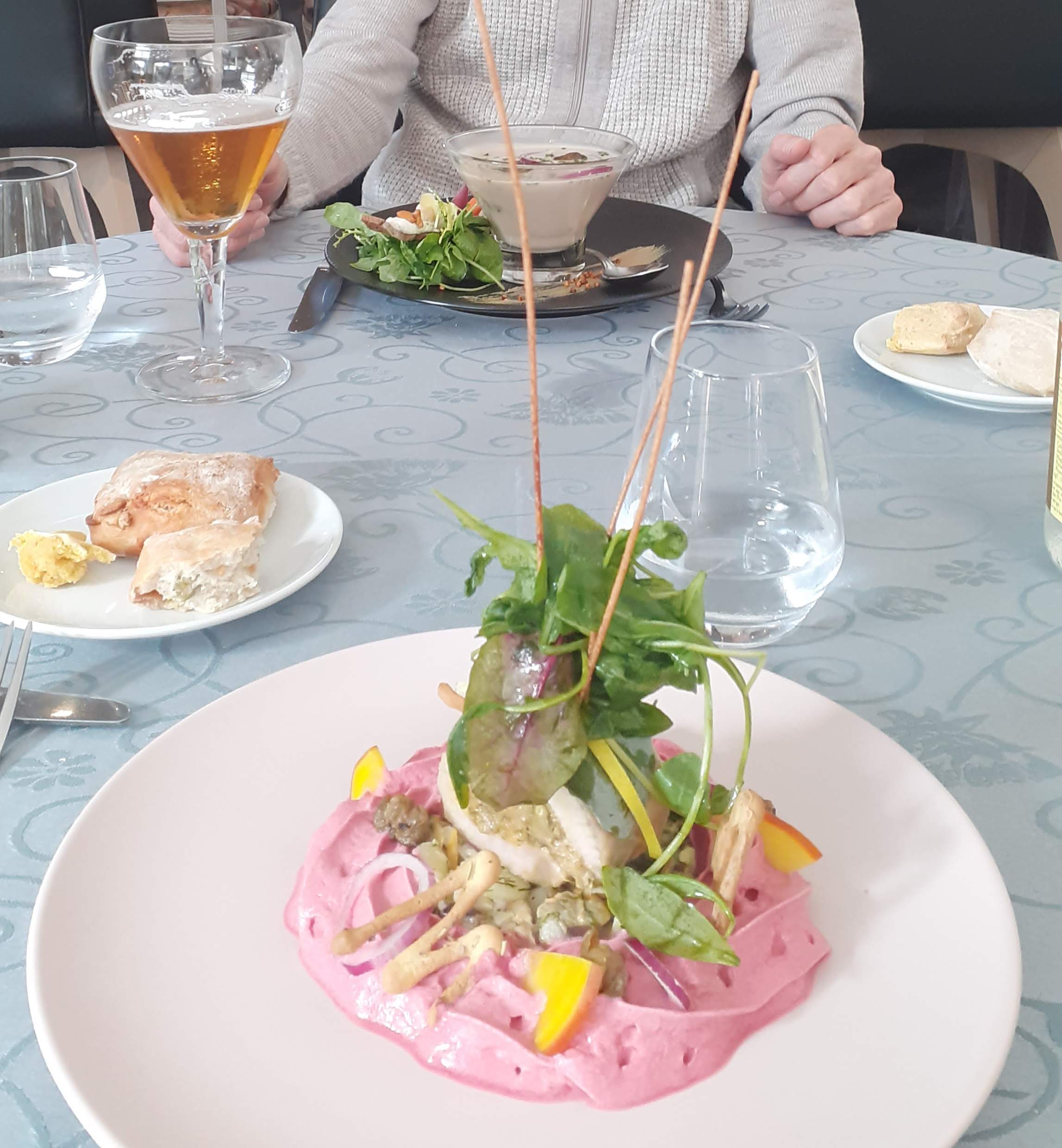 Très bon, belle assiette mise en valeur avec de bons produits. La propreté des toilettes irréprochable. Nous avons mangé dehors c'était très agréable. Le seul point négatif un café à 3 € !