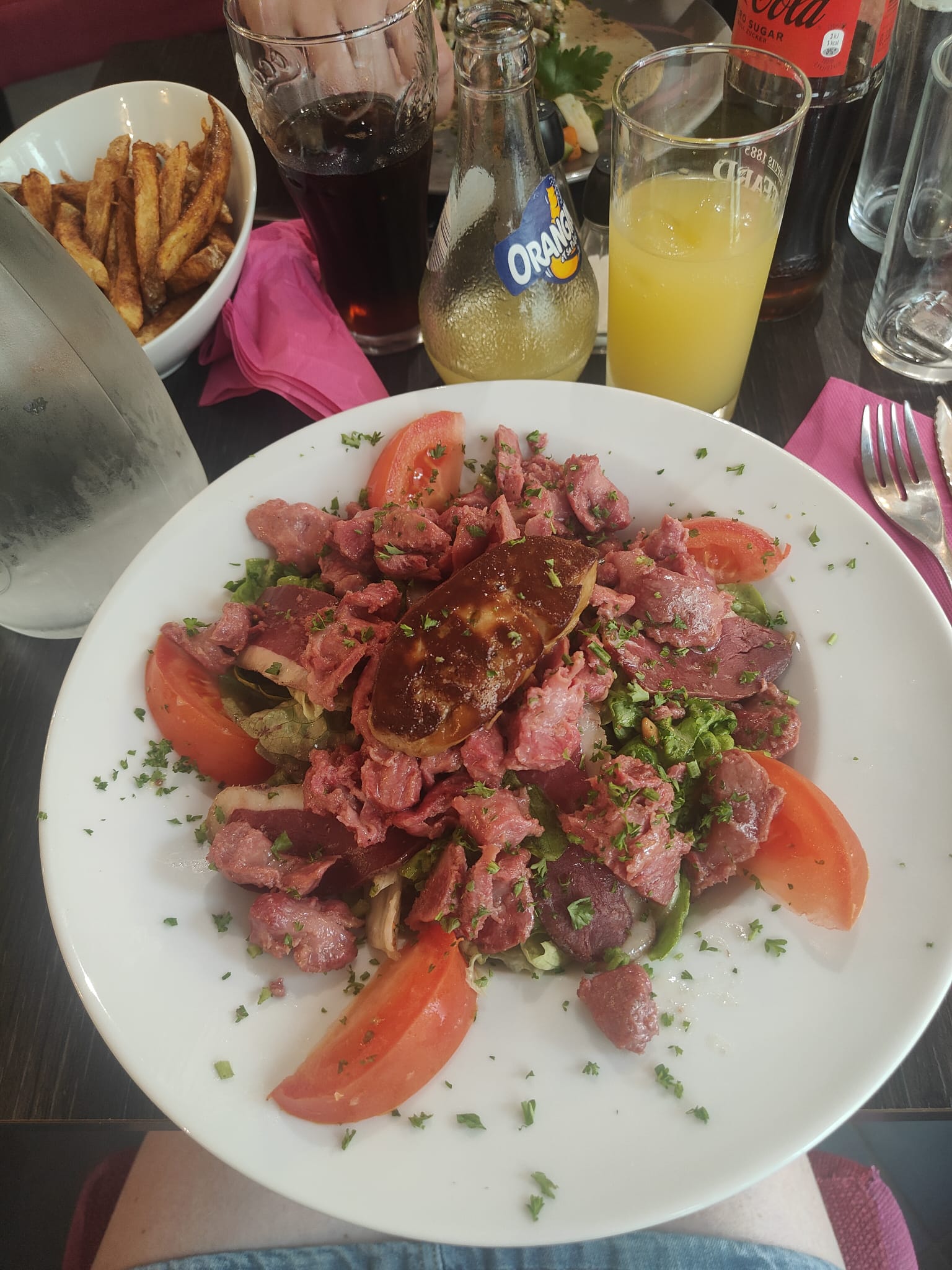 Déçu de l'assiette franc comtoise car trop de salade et 30g de saucisse, 30g de comte, u. Peu de croûtons, 1/2 tomate, plat à ne pas recommander