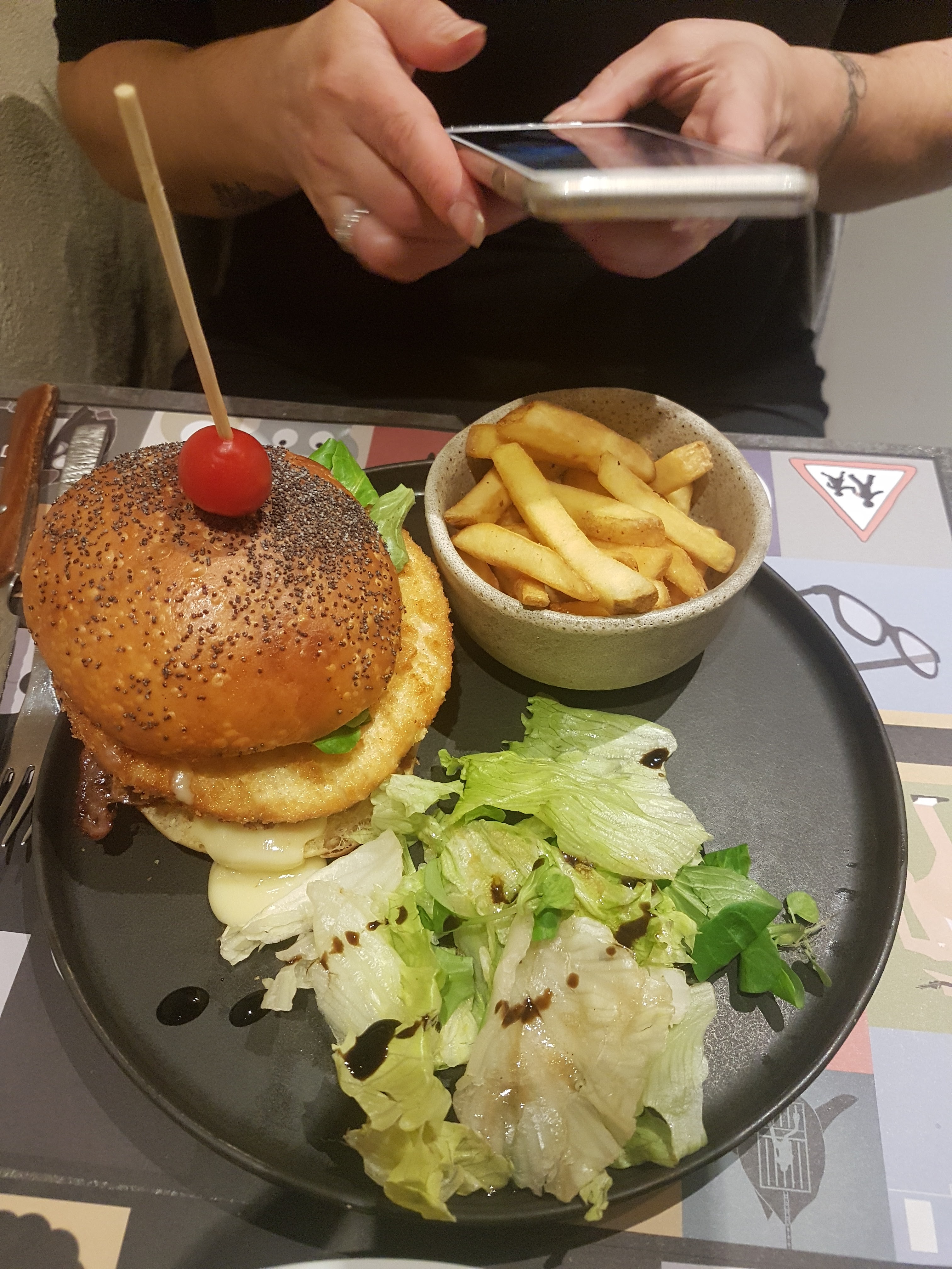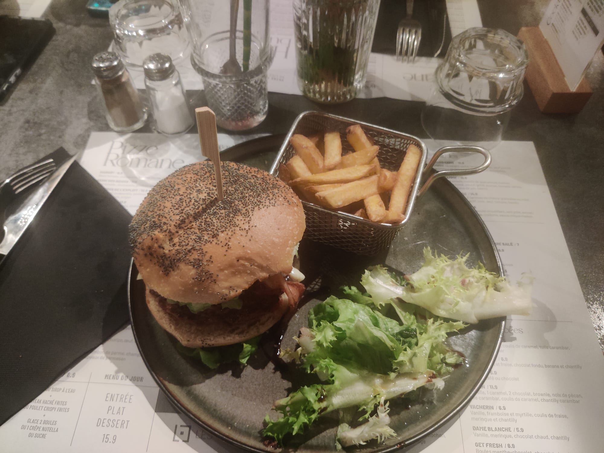 Très bien. Je recommande. Ambiance sympa, service impeccable, plats goûtus. Deux points d'amélioration tout de même : - le burger n'est vraiment pas généreux. A ce prix, le remplir avec plus de garnitures (fromage, salade, tomates...) serait normal. Il n'était pas fourni - des frites fraîches avec serait un plus (éviter les frites congelées : ce n'est pas pour le temps que cela prend d'éplucher des pdt).