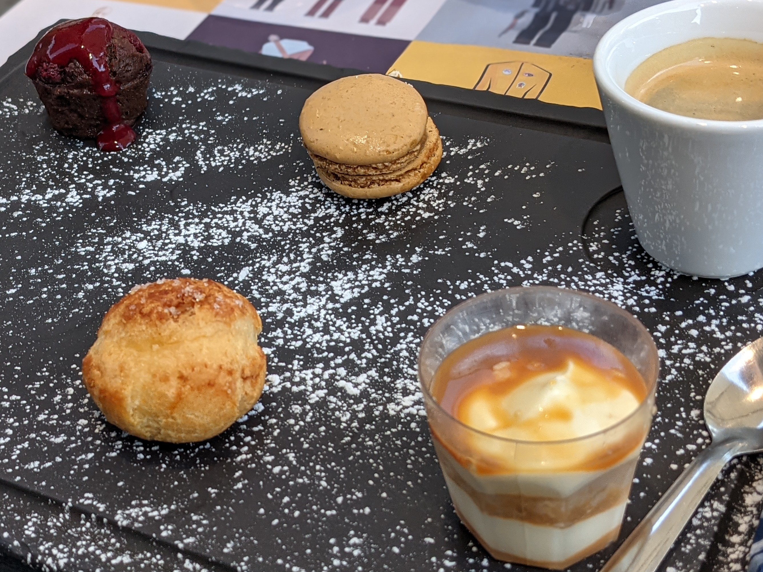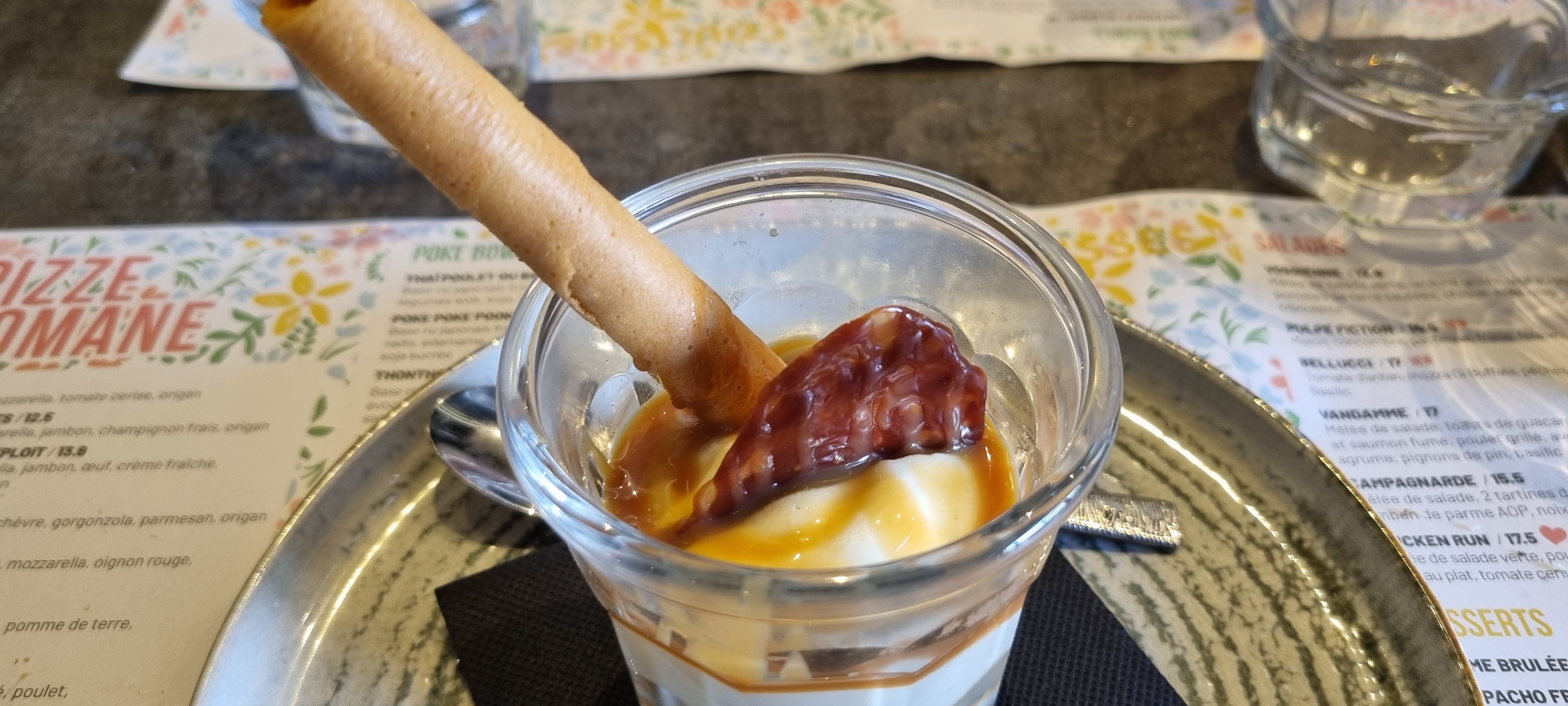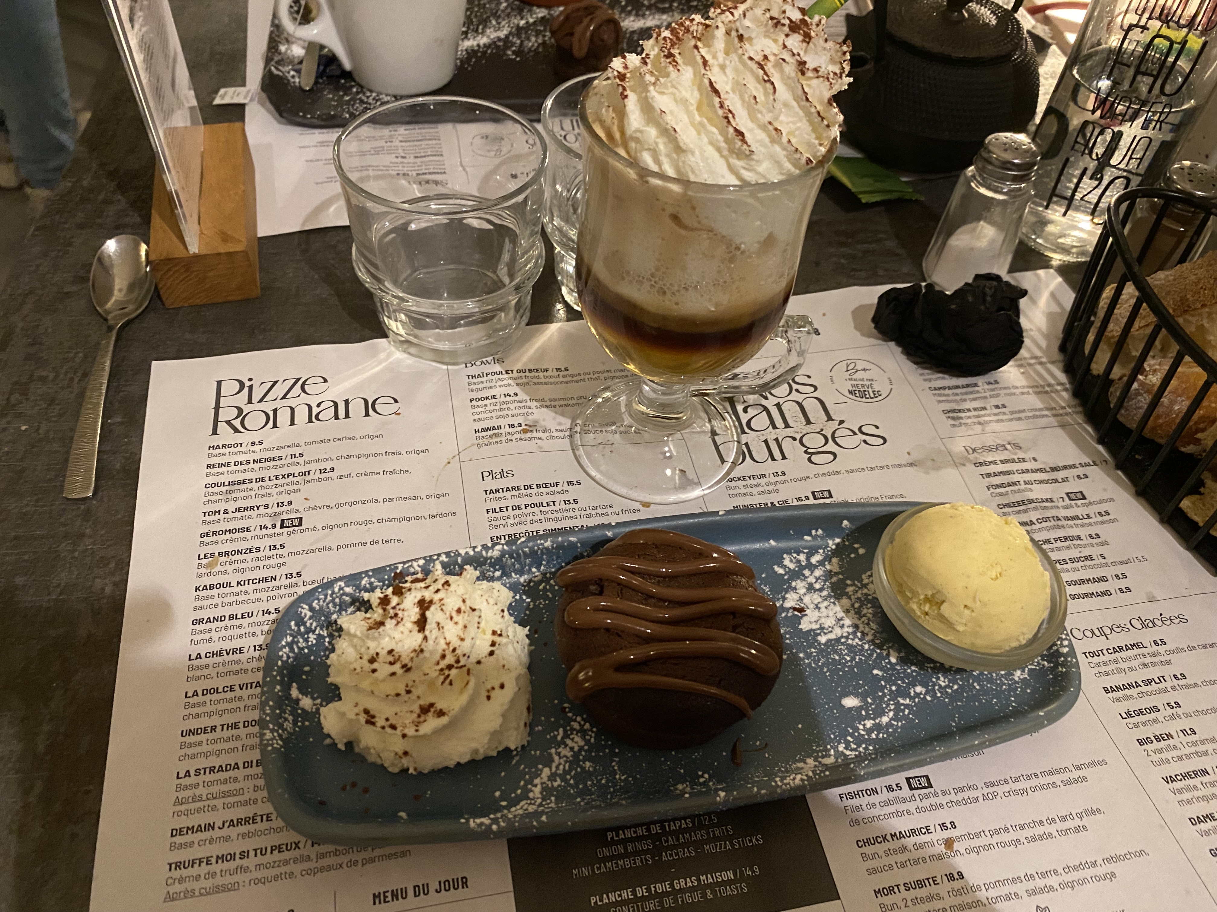 On a trouvé dommage c'était bon mes il manquait des choses. Quand au service on avait un jeune homme super agréable super gentille mais alors la jeune fille complètement paumé et qui nous servait en bout de table donc on devait se passé l'apéritif, les assiettes au lieu de se mettre vers le centre de table. Elle nous monte les desserts pas de cuillère j'ai attendu plus de 5 min ma crème chantilly le jeune homme me l'a changé car complètement liquide a cause de l'attende bien gentille mais ma glace du coup et devenu liquide donc pas agréable a manger et mon moelleux était froid.
