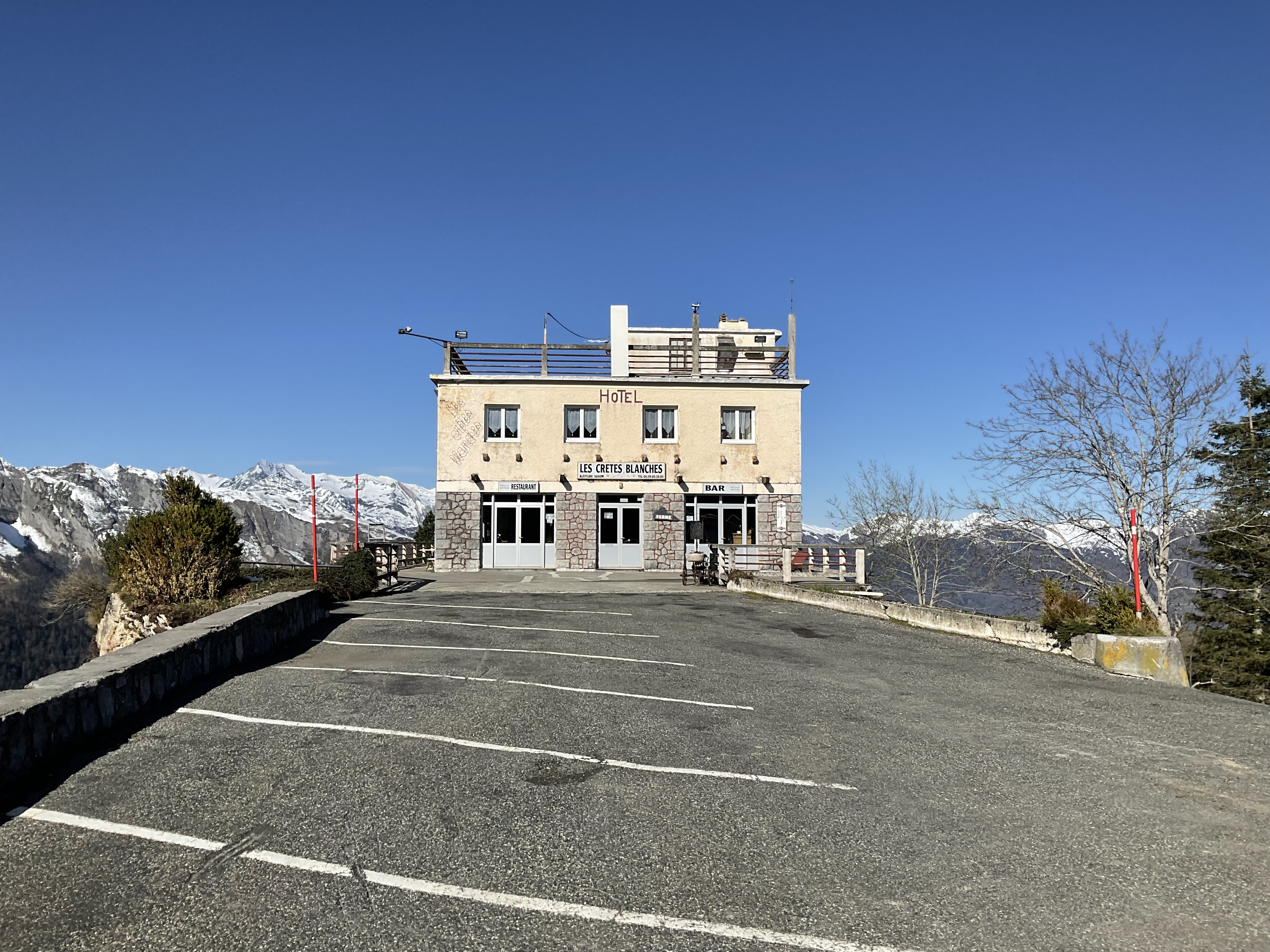 On se croirait au sommet du monde en arrivant à l'Hôtel et Restaurant Les Crêtes Blanches. La vue imprenable sur les montagnes des Pyrénées environnantes est spectaculaire et l'hôtel bénéficie d'une position centrale surplombant celles-ci, ce qui rend l'emplacement tout à fait unique. On a le sentiment que cet hôtel constituerait un séjour idéal pour une occasion romantique. Imaginez vous réveiller pour voir ces vues ! Nous n'avons pas essayé la nourriture car nous ne nous attendions pas à trouver l'hôtel et étions de passage, mais nous nous sommes arrêtés pour admirer la vue, comme beaucoup d'autres le faisaient. Peut-être qu'un jour nous pourrions rester....
