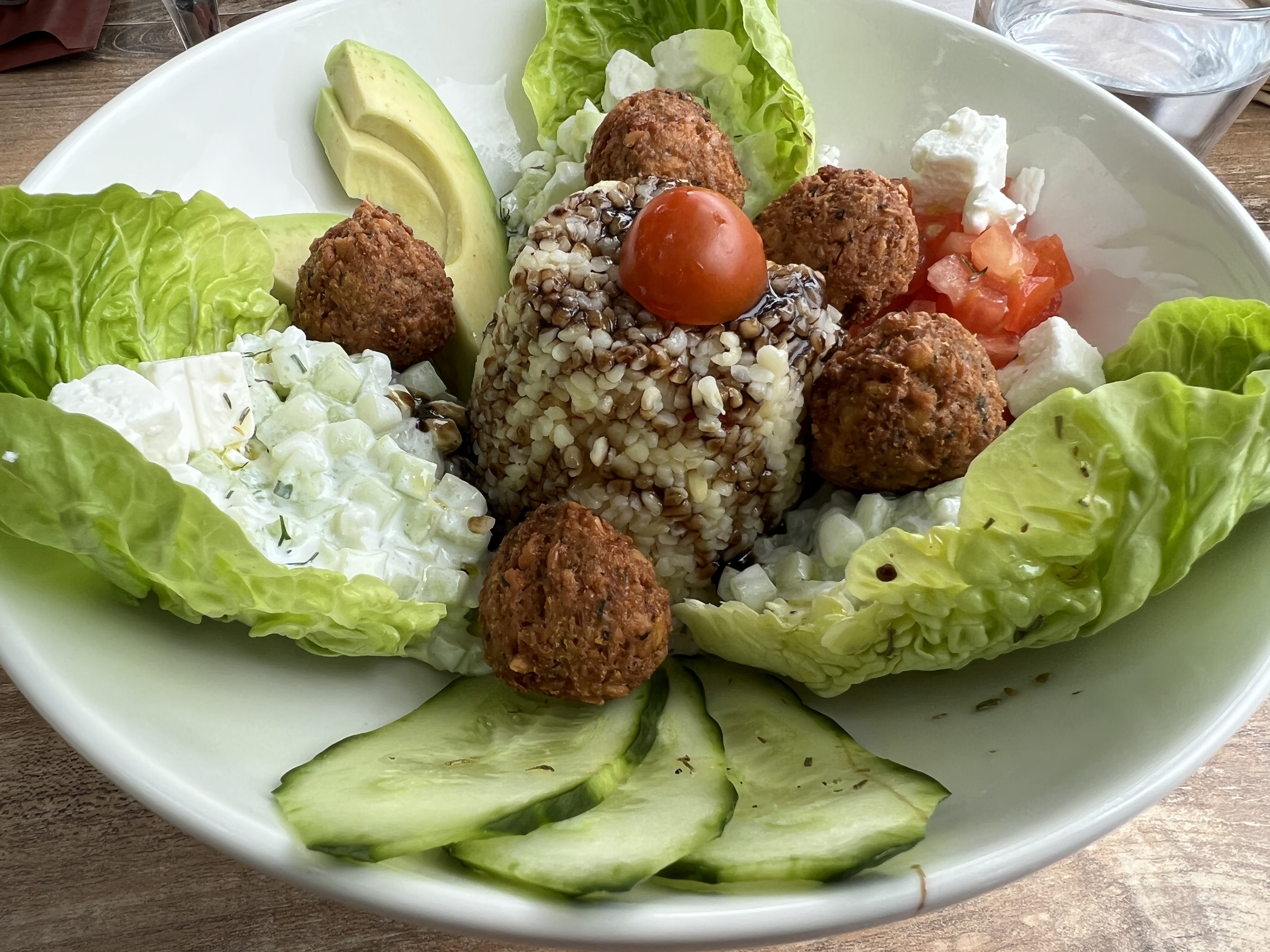 Accueil et service agréables, salades généreuses, tables sous les arbres au top