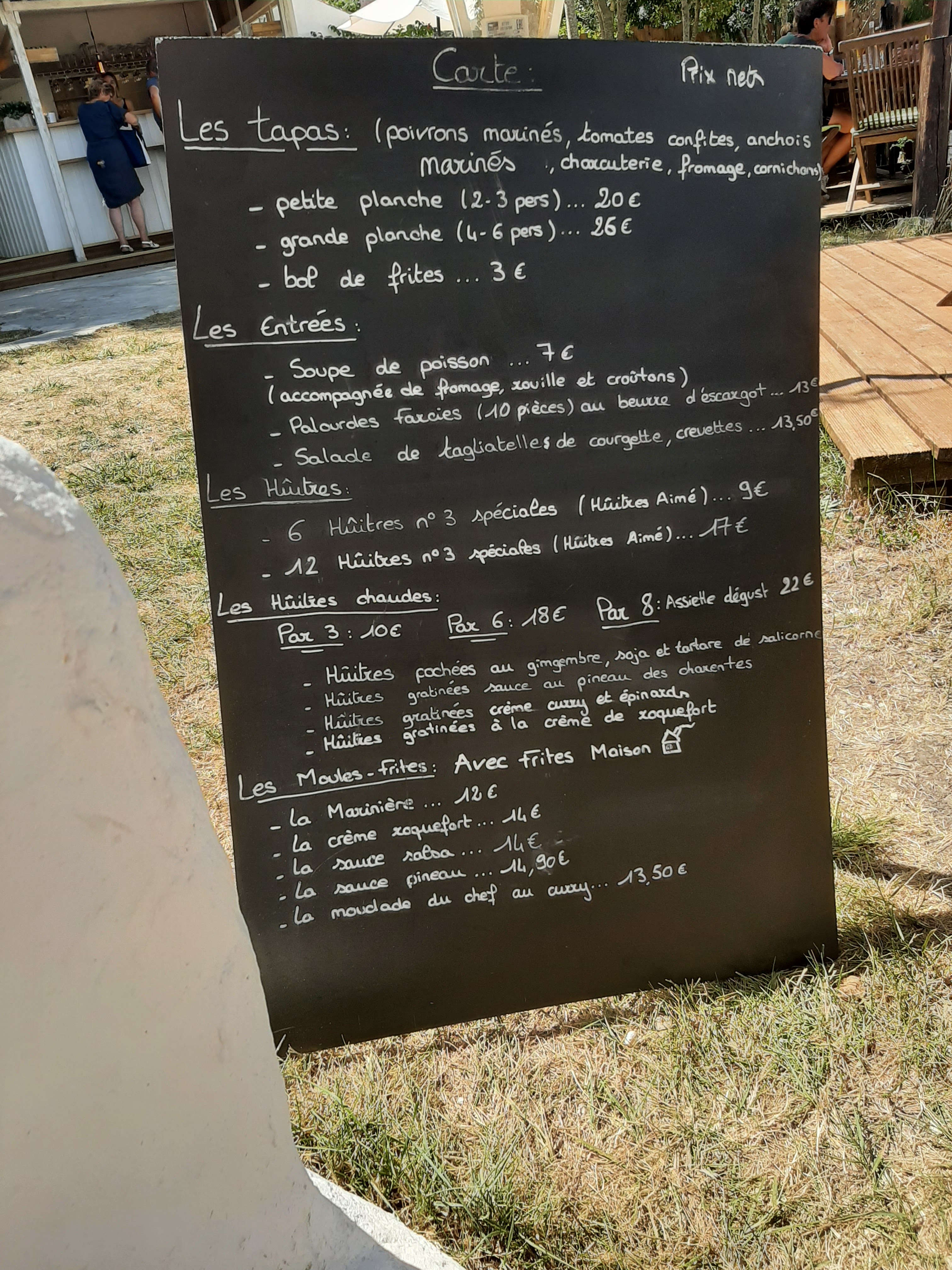 Excellent !! Huîtres chaudes, moules.. Le cadre est juste exceptionnel et reposant, avec un coucher de soleil sur les marais.