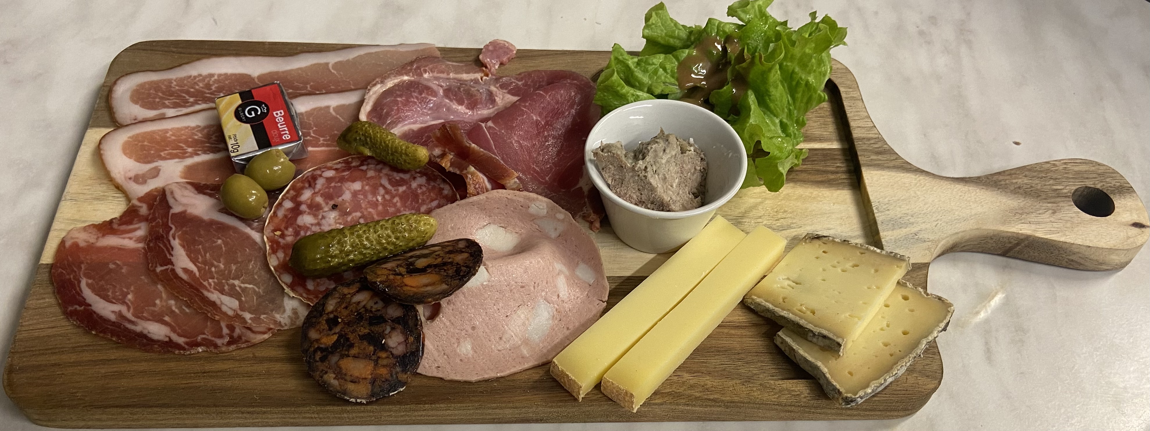 Petit restaurant avec mon fils en été Cadre agréable. Le fromage et la charcuterie sont de qualité. Le service était impeccable. Merci Nous reviendrons encore cette semaine