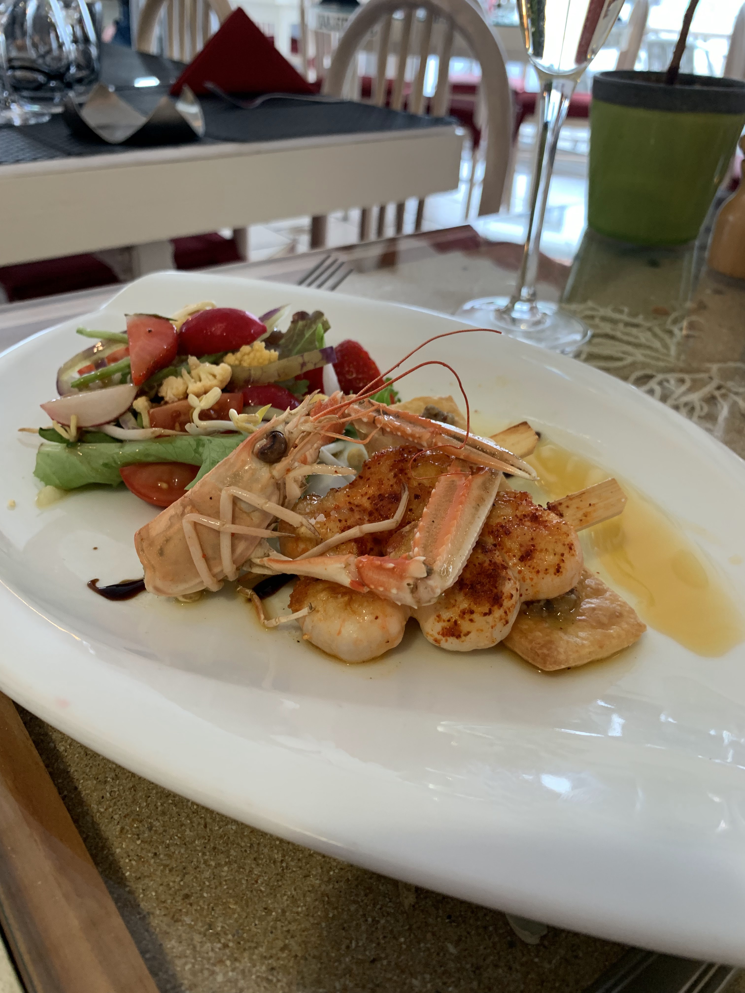 Accueil chaleureux à votre écoute. Félicitations à la cheffe qui m'a concoctée un menut sans produits laitiers ni gluten étant allergique. Je l'avais prévenue la veille. Une mention spéciale pour la déco des tables surprise de la mer.