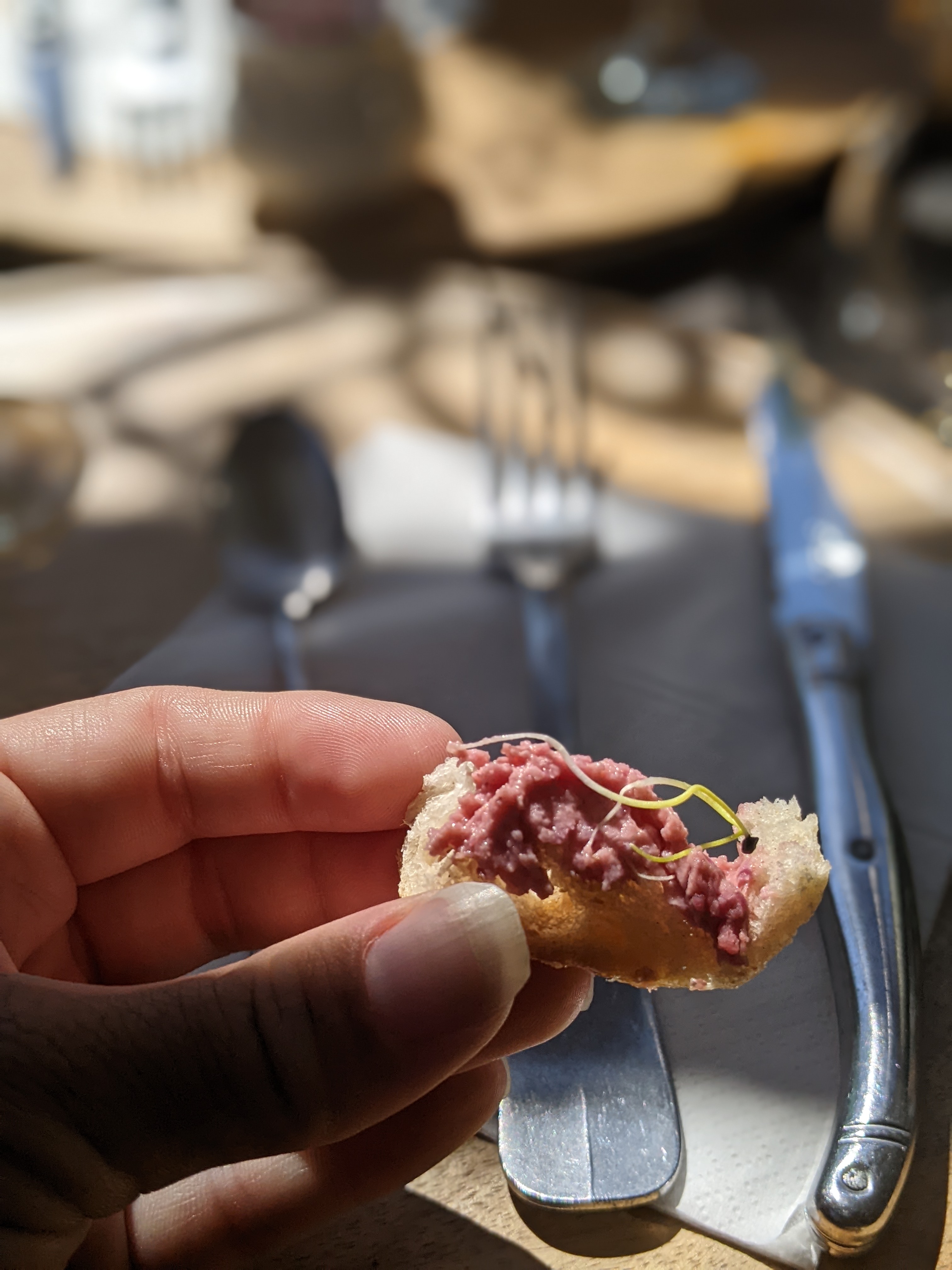 Jour de chance nous avons eu une table pour 2 sans réserver en amont. Plats délicieux et recherchés (garniture un peu tiède, parce qu'il faut bien un axe d'amélioration), bon vin, personnel agréable, jolie déco et bonne musique. Belle découverte !