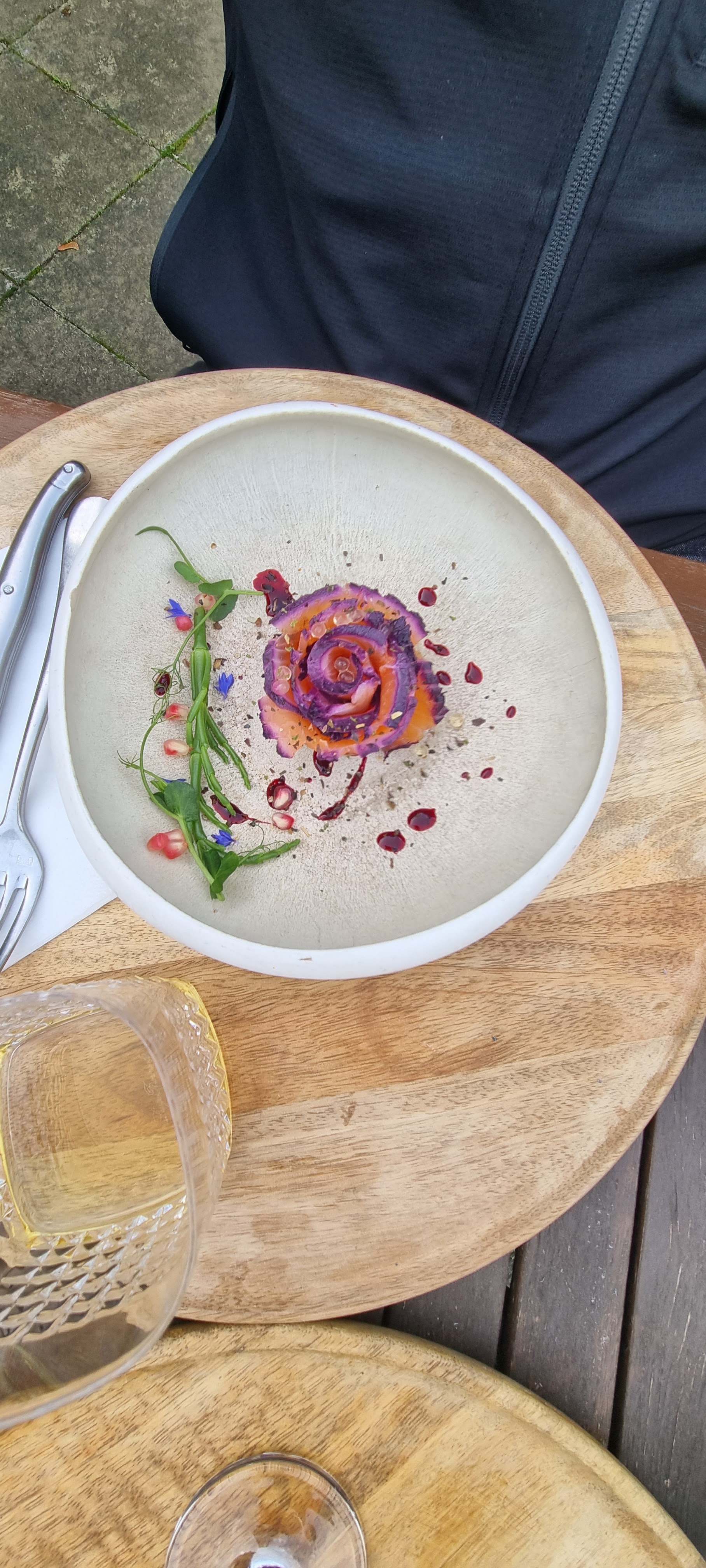 Déjeuner en terrasse couverte qui nous a permis de profiter de l’extérieur malgré un temps capricieux La cuisine était parfaite , conseils accords mets/vin au top en salle Courage pour la saison , on repassera a l’occasion ! (Photo -> risottos au sarrasin) Arnaud & Mélanie