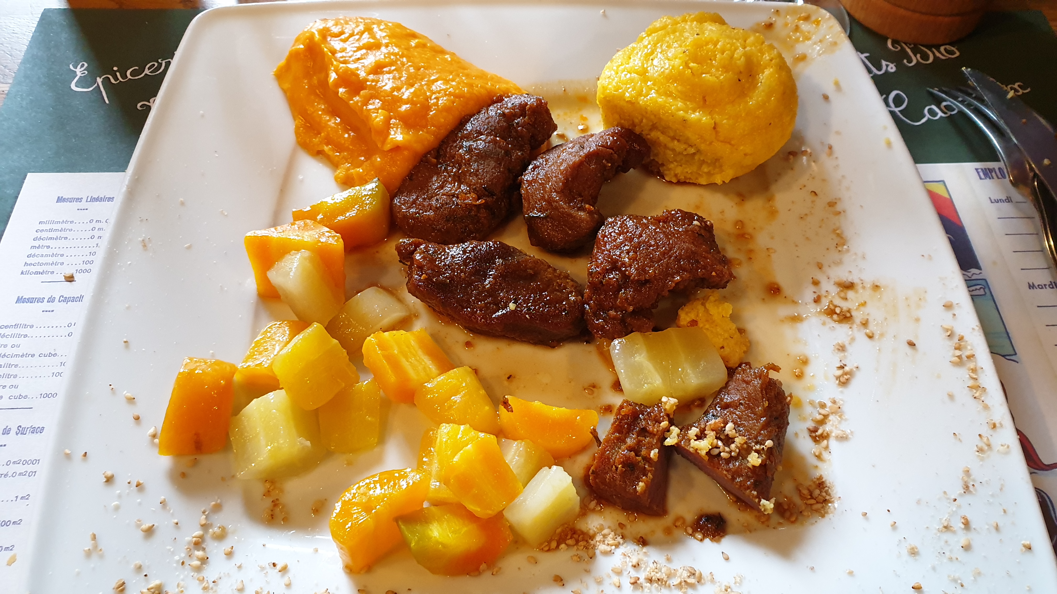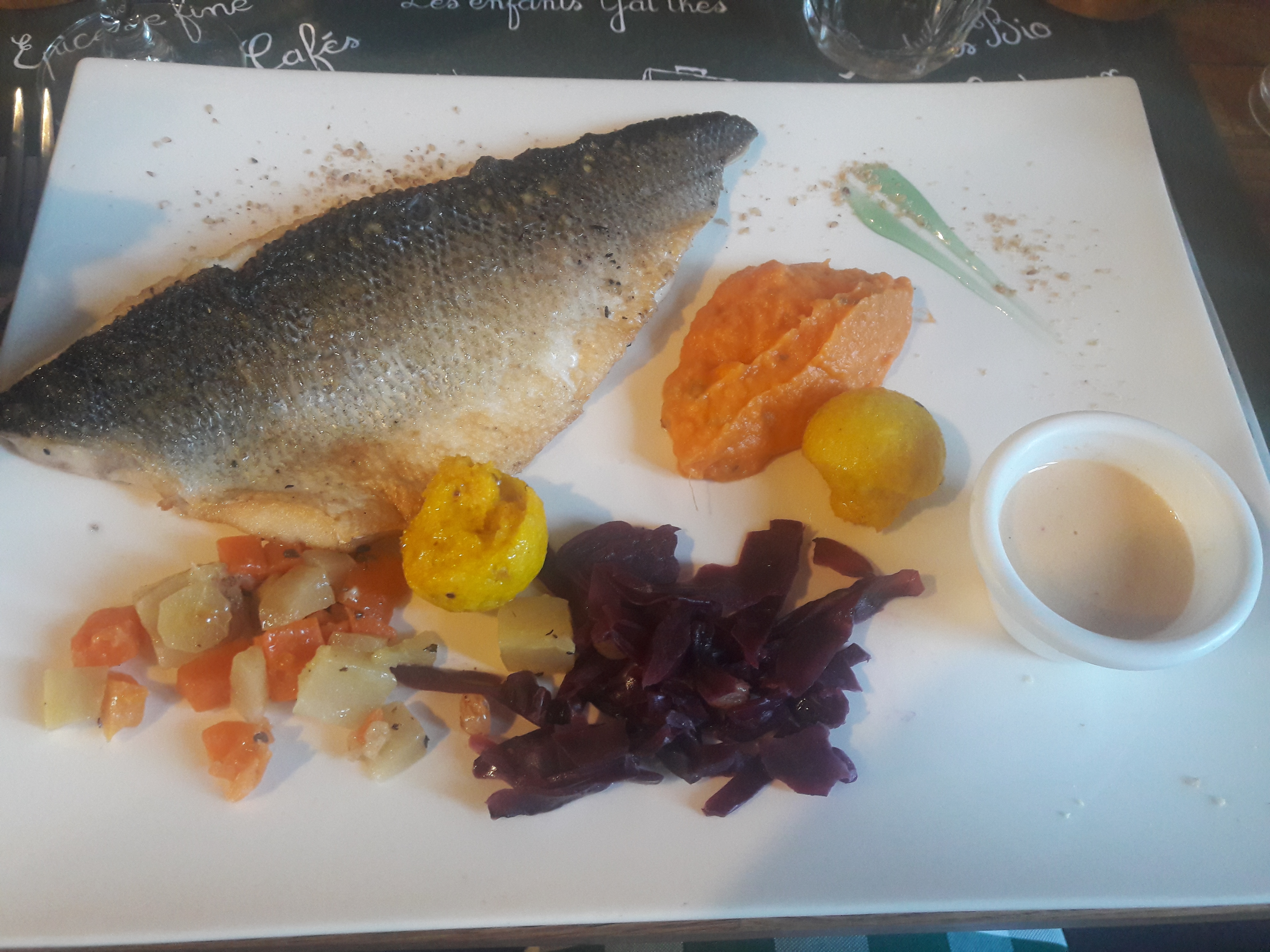 De très beaux plats, colorés, bons et féminins ! (Fleurs comestibles, graines germées, très belles assiettes etc..) J'ai beaucoup aimé les choix de repas végétariens ! Allez-y les yeux fermés. Rapport qualités et prix très correct. Nous y retournerons pour une prochaine visite de la Gacilly ! Merci à vous et bravo.