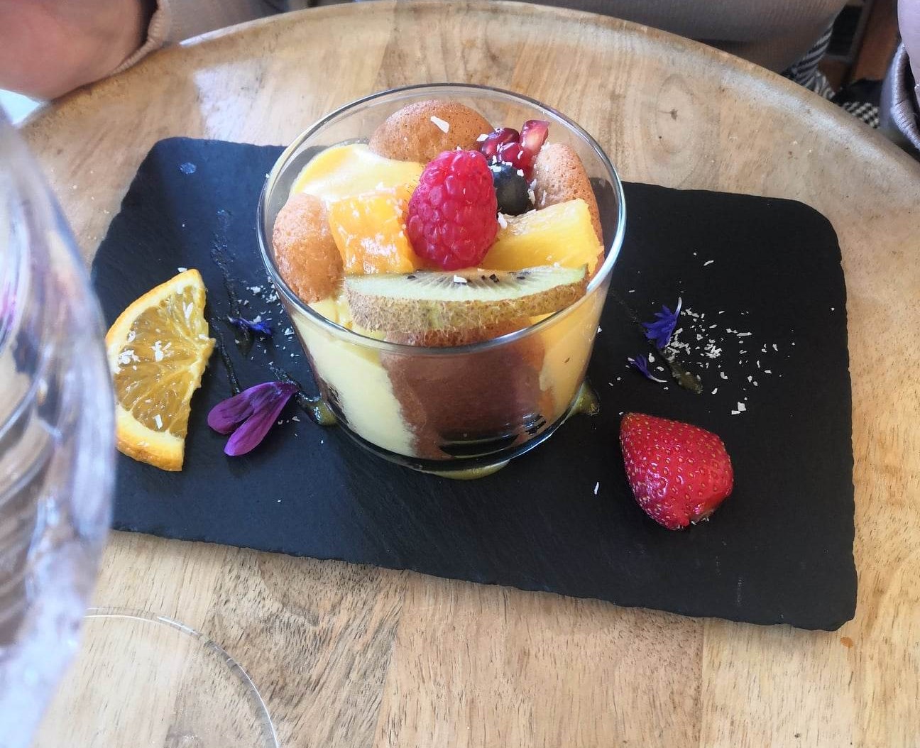 Tout était parfait Merci 🤩 A commencer par une réservation par téléphone à 12h pour le midi même avec un sourire dans l’accueil qui s’entend À notre arrivée on nous demande soleil ou plutôt à l’ombre et on propose de l’eau pour mon chien 2 vins blanc bio à l’apéro très bon avec un amuse bouche ce qui devient rare Merci à Fabian sympathique serveur calme et attentionné Maintenant lassiette un truc de dingue du goût des saveurs et des alliances top et générosité dans la quantité Trompe l’œil très réussi, bar mariné excellent Le risotto au sarrasin copieux avec des champignons goûteux L’assiette italienne comme là-bas et c’est rare Vous avez compris allez-y les yeux fermés ! Nous on y retourne bientôt MERCI À TOUTE LEQUIPE