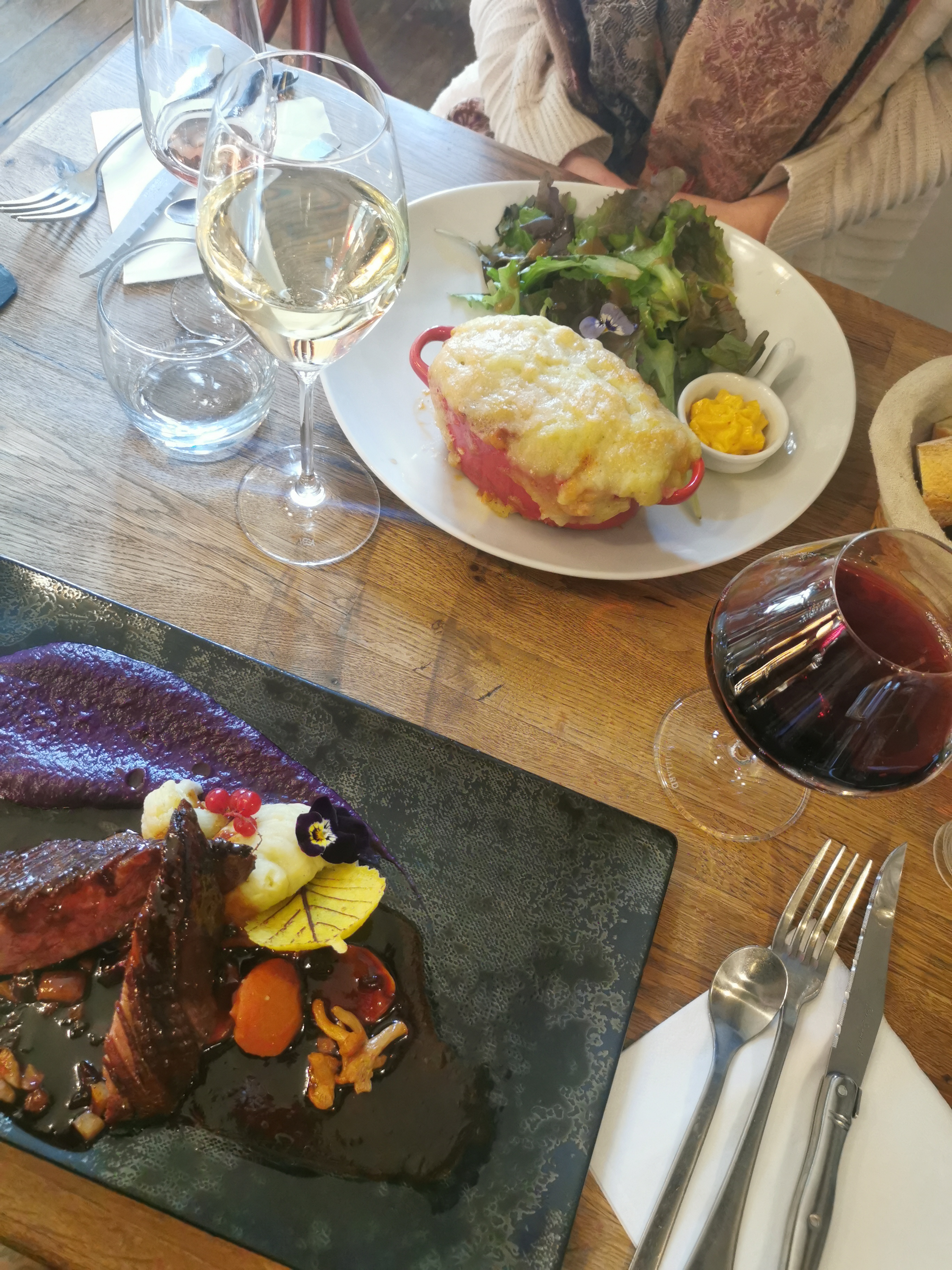 Une heure trente pour être servi, plat tiède, à peine cuit à coeur pour du porc, sauce fade, pas de sel ni poivre à table, pas de pain... l'entrée et l'apéritif, rien à dire. Le service et les plats ne sont pas à la hauteur du prix facturé. Nombre de routiers font mieux pour la moitié du prix. Essayez une autre adresse.
