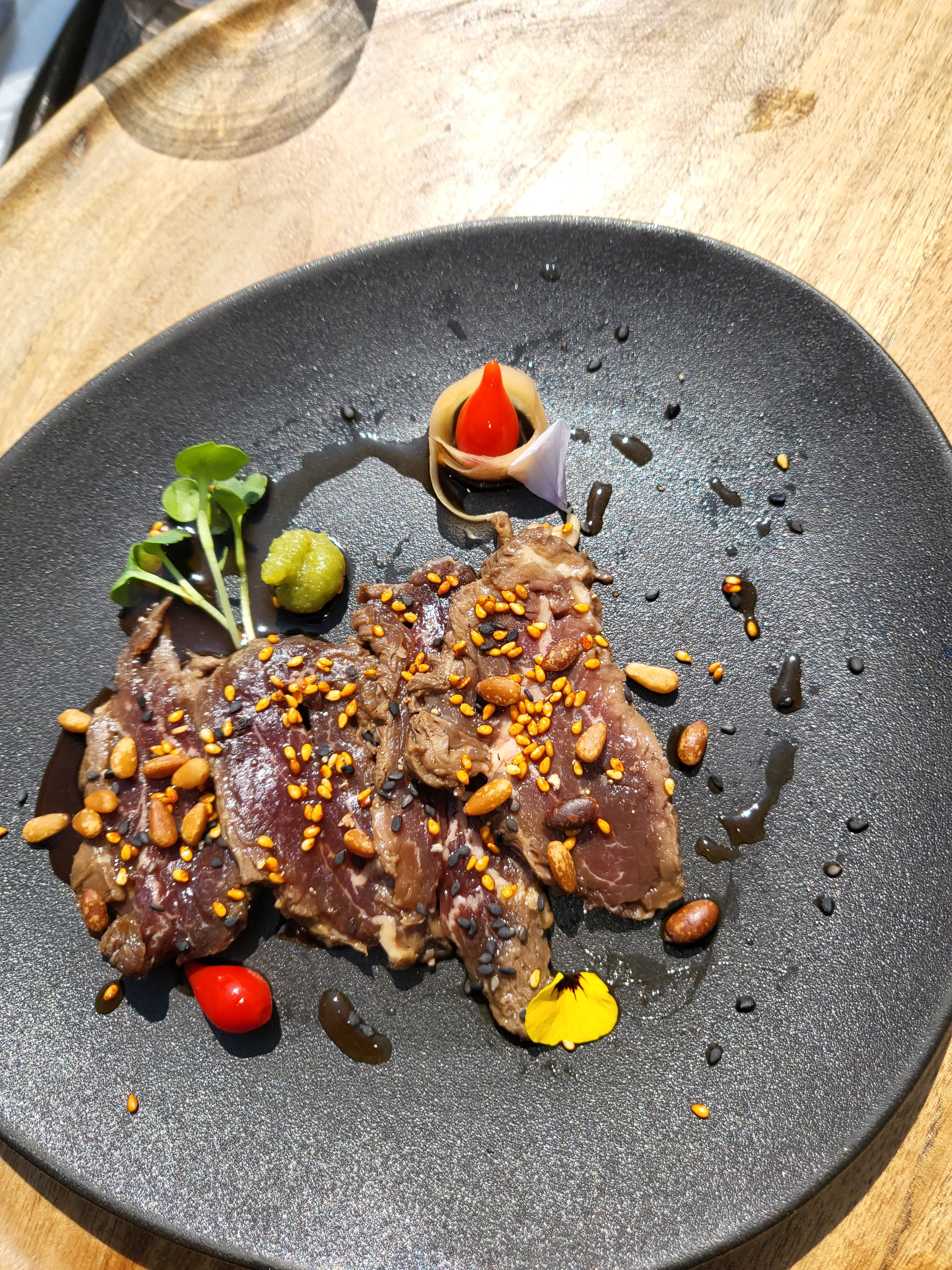 Bonjour les assiettes sont jolies et bonnes malgré un carpaccio réduit .Le prix 30 euros plat et dessert trop cher .Le service très moyen et tendu un sourire ne coûte rien. Nous avons pris un café gourmand ! Le café est arrivé après l’avoir réclamé deux fois ça n’avait rien de gourmand les gâteaux étaient terminés depuis longtemps .