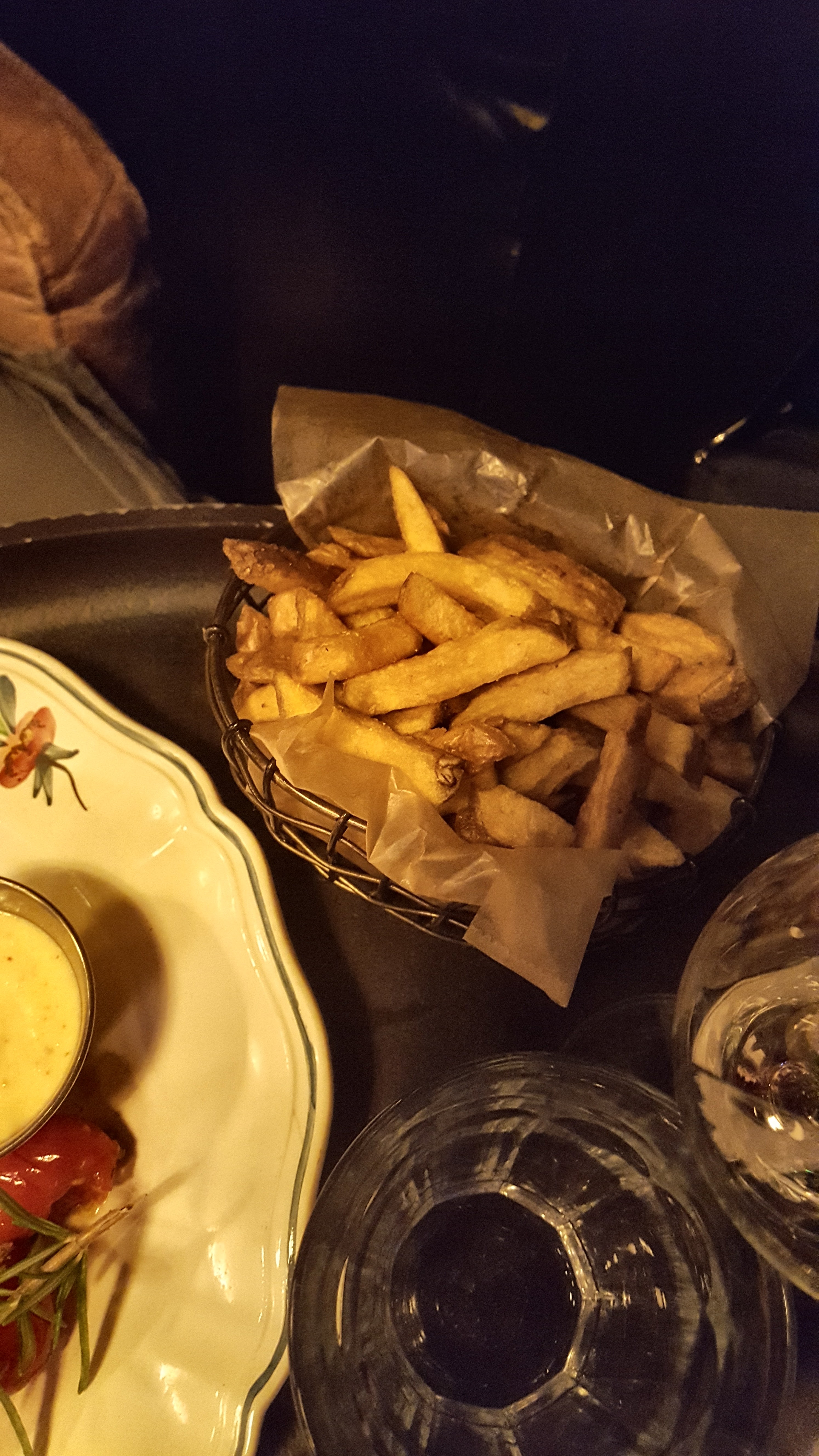 Vraiment déçu nous pris un apéritif à peine le temps de le boire on nous a apporté le plat filet de bar rien à dire les frites non épluchées brûlées et pas cuites Le dessert RAS SALLE au 2ème étage escalier etroit donc déconseillé aux personnes handicapées. WC 1/2 personne pas plus donc je ne recommande pas ce restaurant qui ressemble plus à une brasserie de mauvaise qualité.