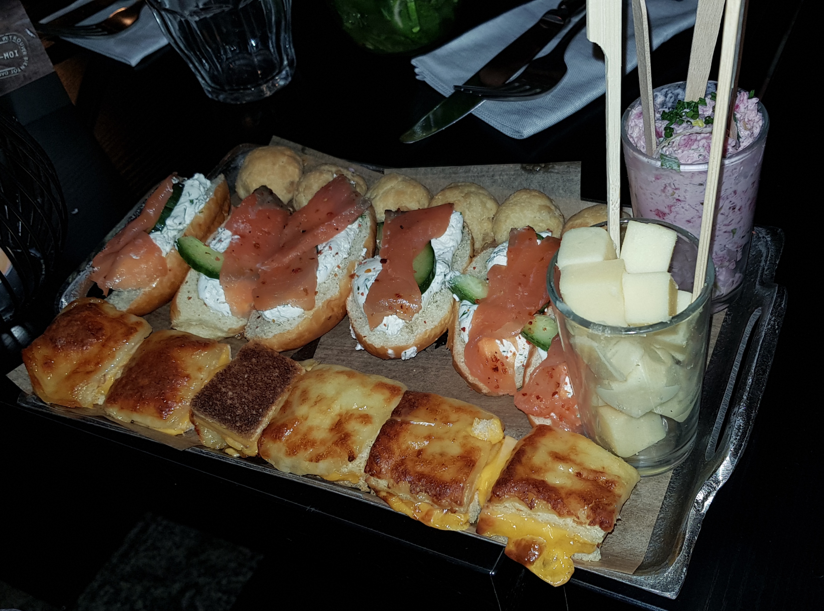 service un peu long et pas équilibré bien que le personnel soit tres sympatoche et avenant. portions des tapas pas fofolles, dommage car tres c'etait tres bon, le repas aussi, rien à redire. lieux chaleureux. je pense y retourner.