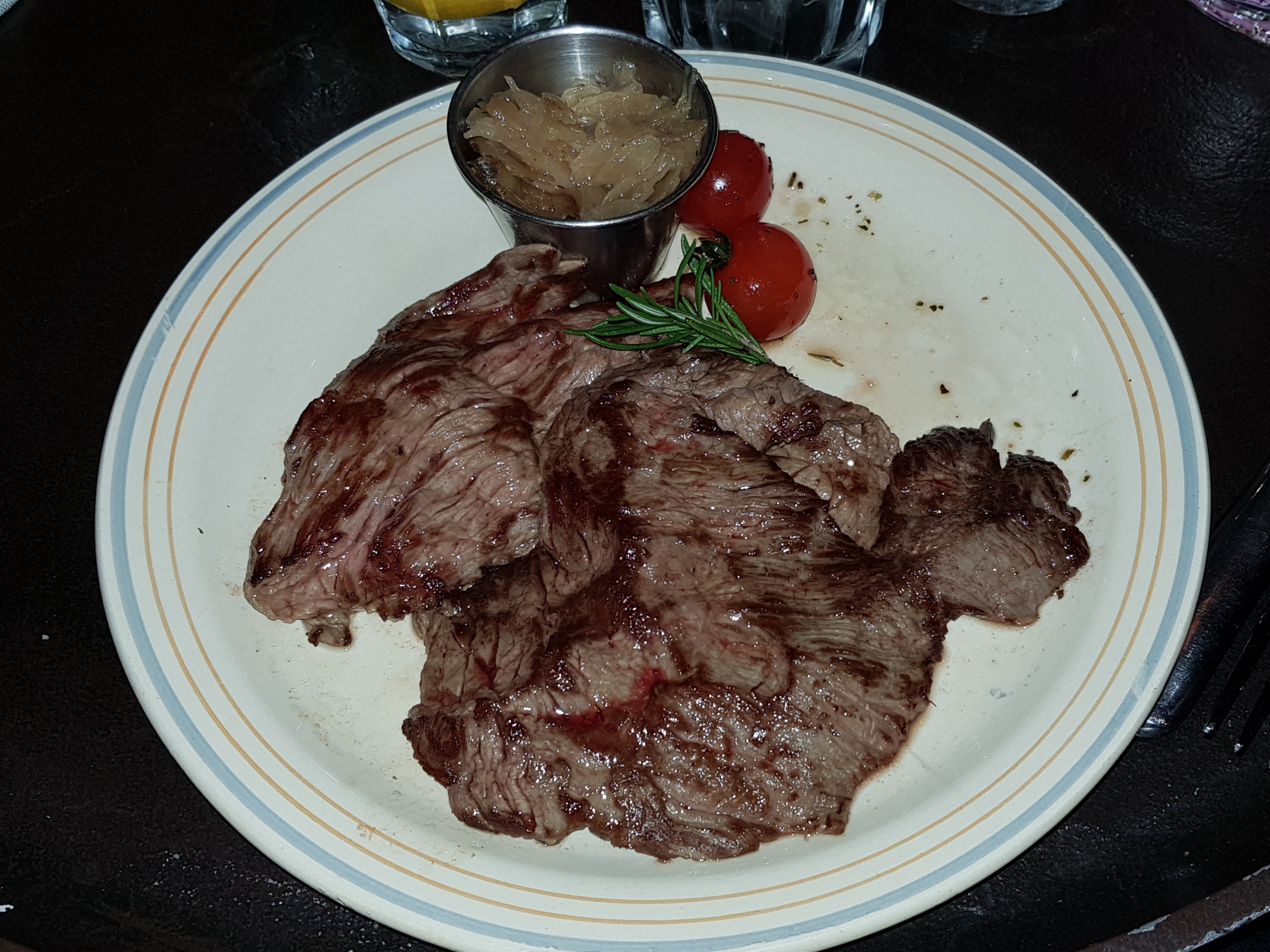 Le cadre est sympa et le service était plutôt rapide malgré de grand nombre de clients en salle. Par contre, nos plats étaient plus que décevants (le tigre qui pleure : n'avait que le goût de la sauce soja, légumes fades, donc aucun intérêt, l'onglet de bœuf : viande sans goût, lit d'herbes vraiment pas bon, trop gras, frites et mayo sans goût... je n'ai mangé qu'un tiers de mon assiette. On a fait savoir gentiment notre mécontentement au serveur, qui n'a pas semblé être du tout intéressé... Il était limite énervé de l'entendre ! Bref, j'ai eu l'une des pires intoxications alimentaires de ma vie après ce dîner... Honteux de devoir payer pour cela car ça a ruiné mon week-end du 14 juillet !