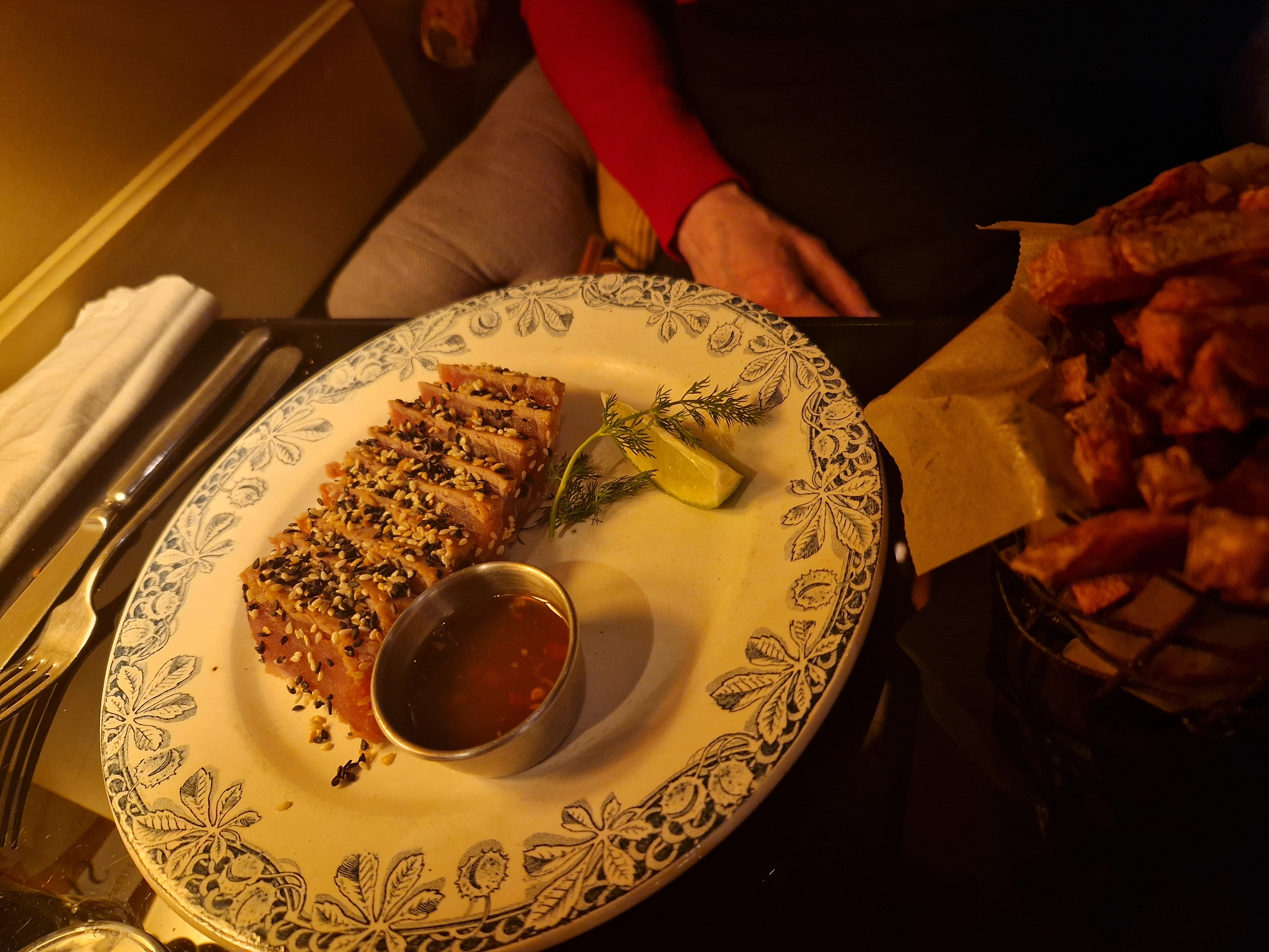 Repas très sympa, très agréable. Un tigre qui pleure toujours aussi bon. L'ambiance cosy et un peu sombre nous fait sentir comme à la maison. La planche de tapas est très sympa. Un prix un peu élevé mais qui se justifie par la qualité du service et des produits. Je recommande !