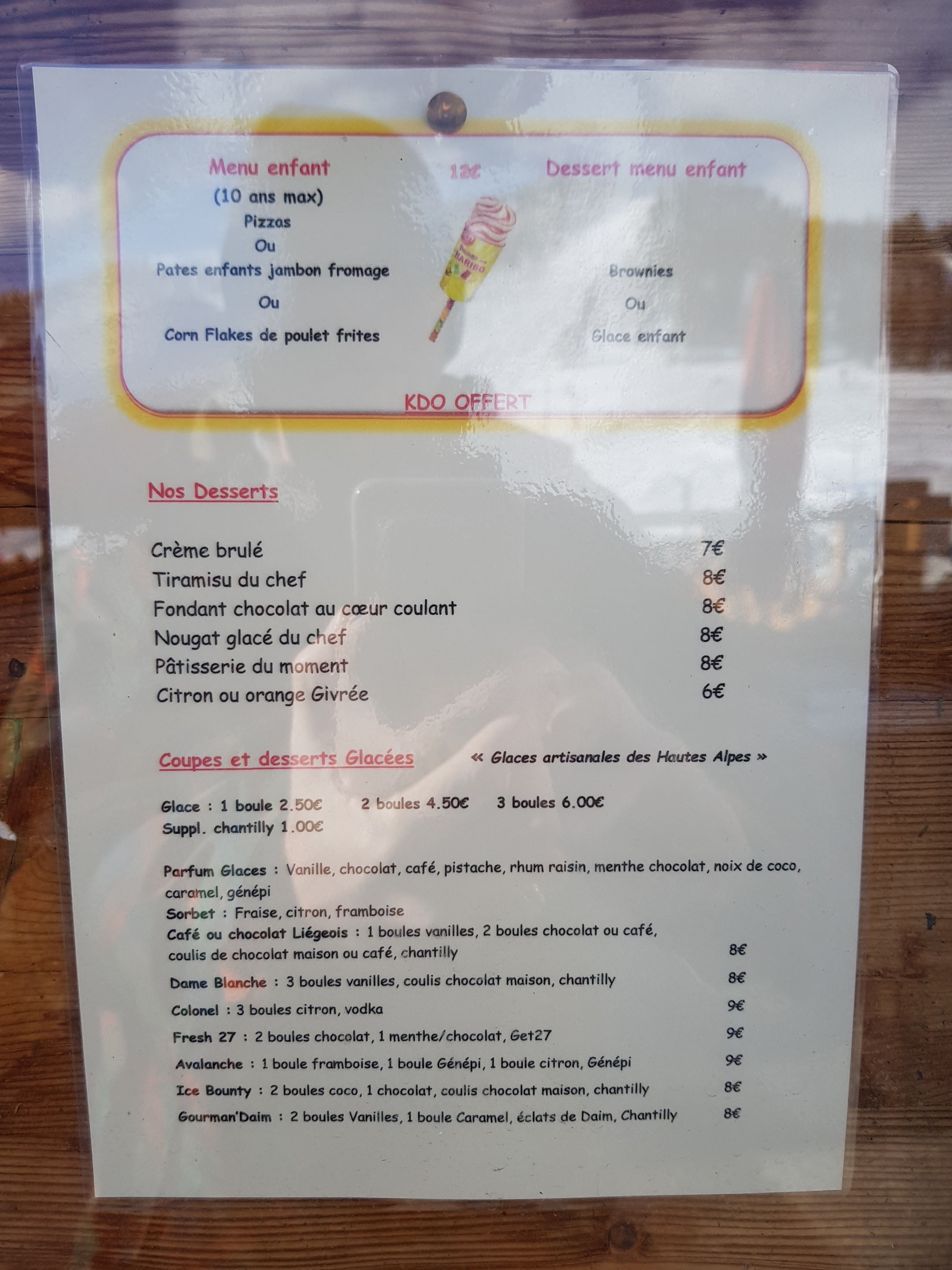 Vraiment excellent! personnels est au petit soin, très bon repas (mention special pour les pizzas, exellentes). Jouets offerts aux enfants en fin de repas, c'est juste super sympa ! Bref, je recommande fortement si vous êtes de passage sur Montgenevre 👍