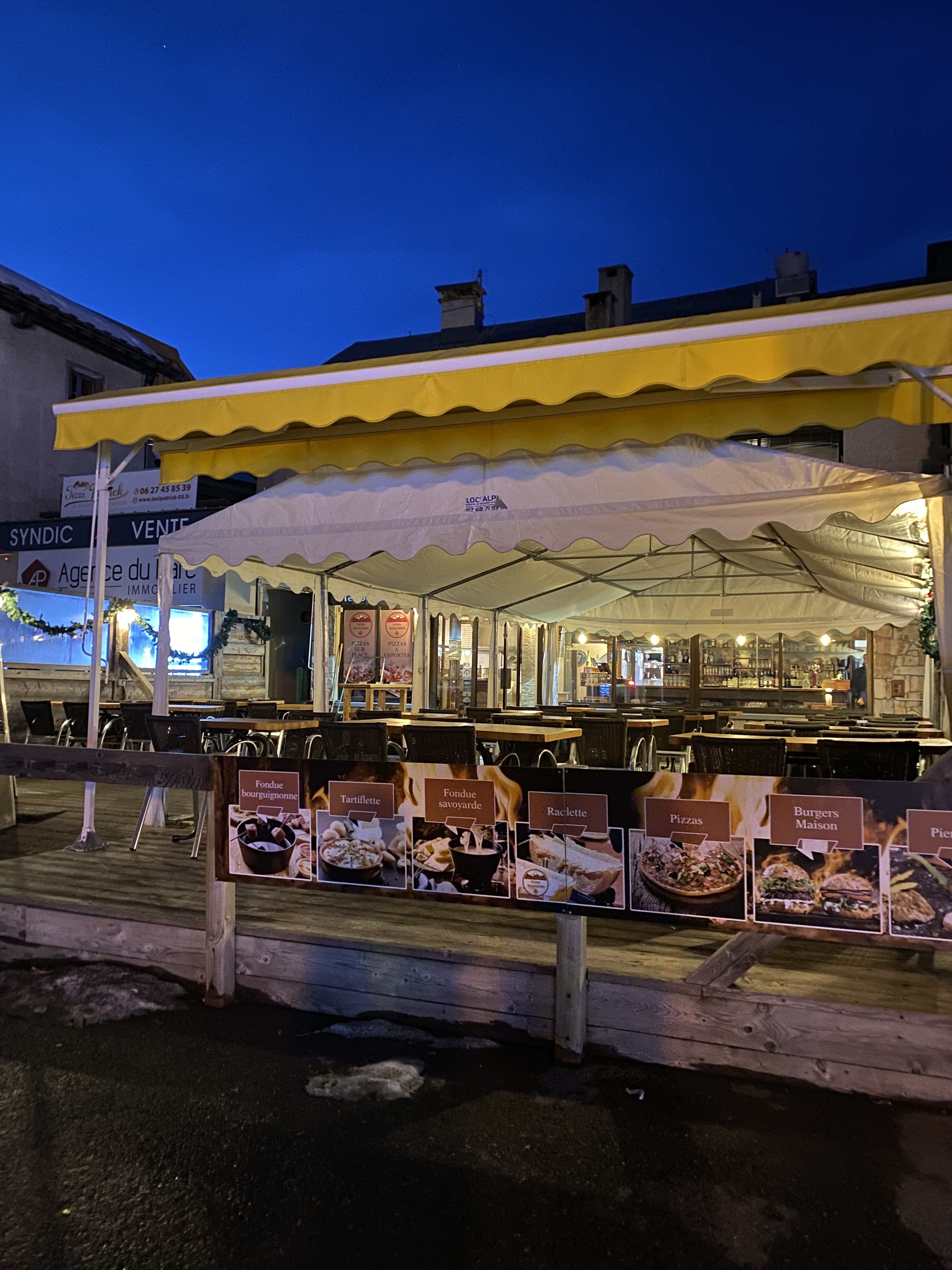 Restaurant avec des plats de montagne ( raclette, tartiflette,fondues,etc) Un des seuls restaurants ouvert en septembre Tous les commerces ferment en cette période