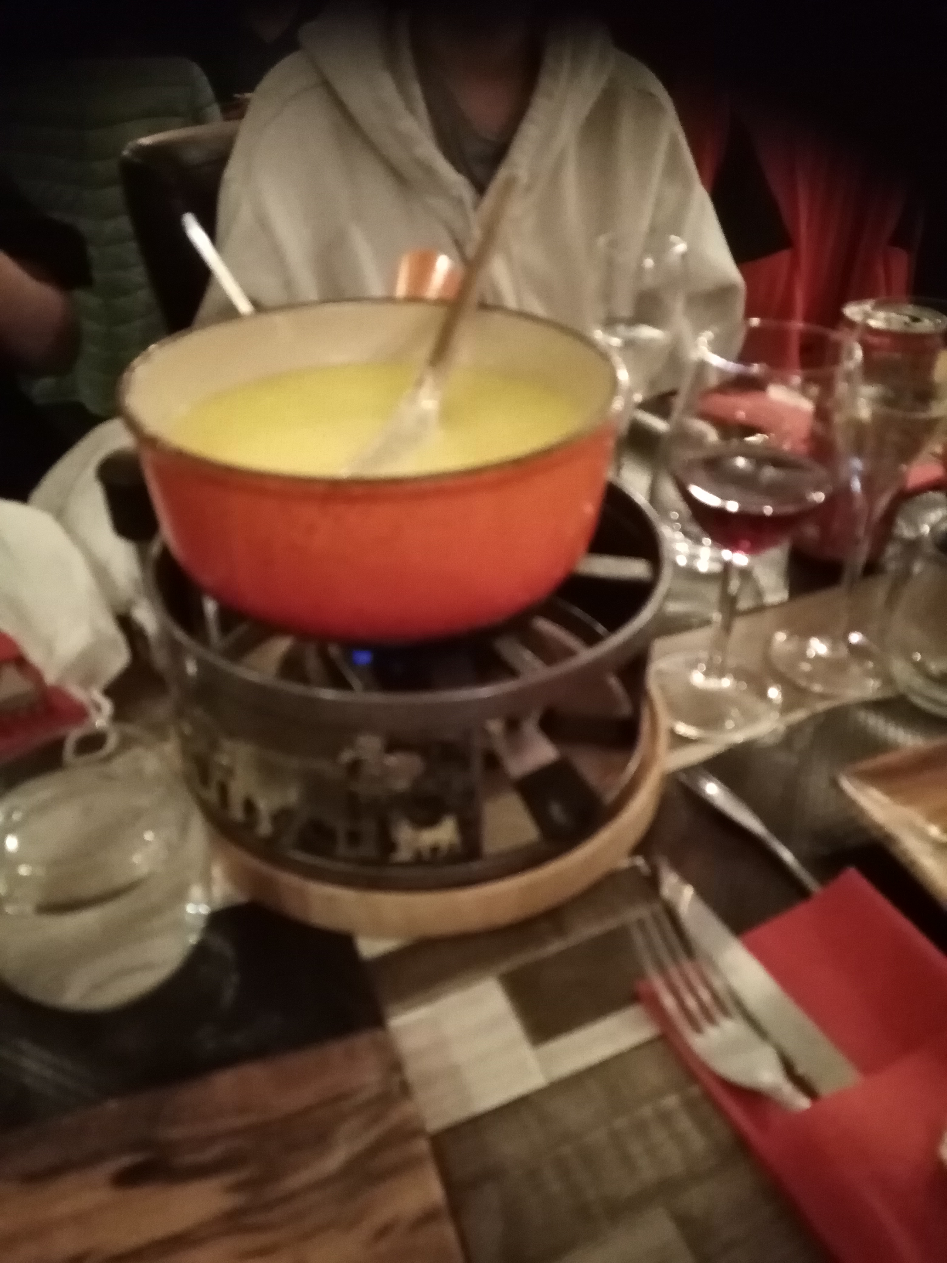 Une bonne fondue savoyarde pour terminer notre séjour à Montgenevre. Un bon Tresbaudon blanc et une ambiance sympa. Merci à toute votre équipe.