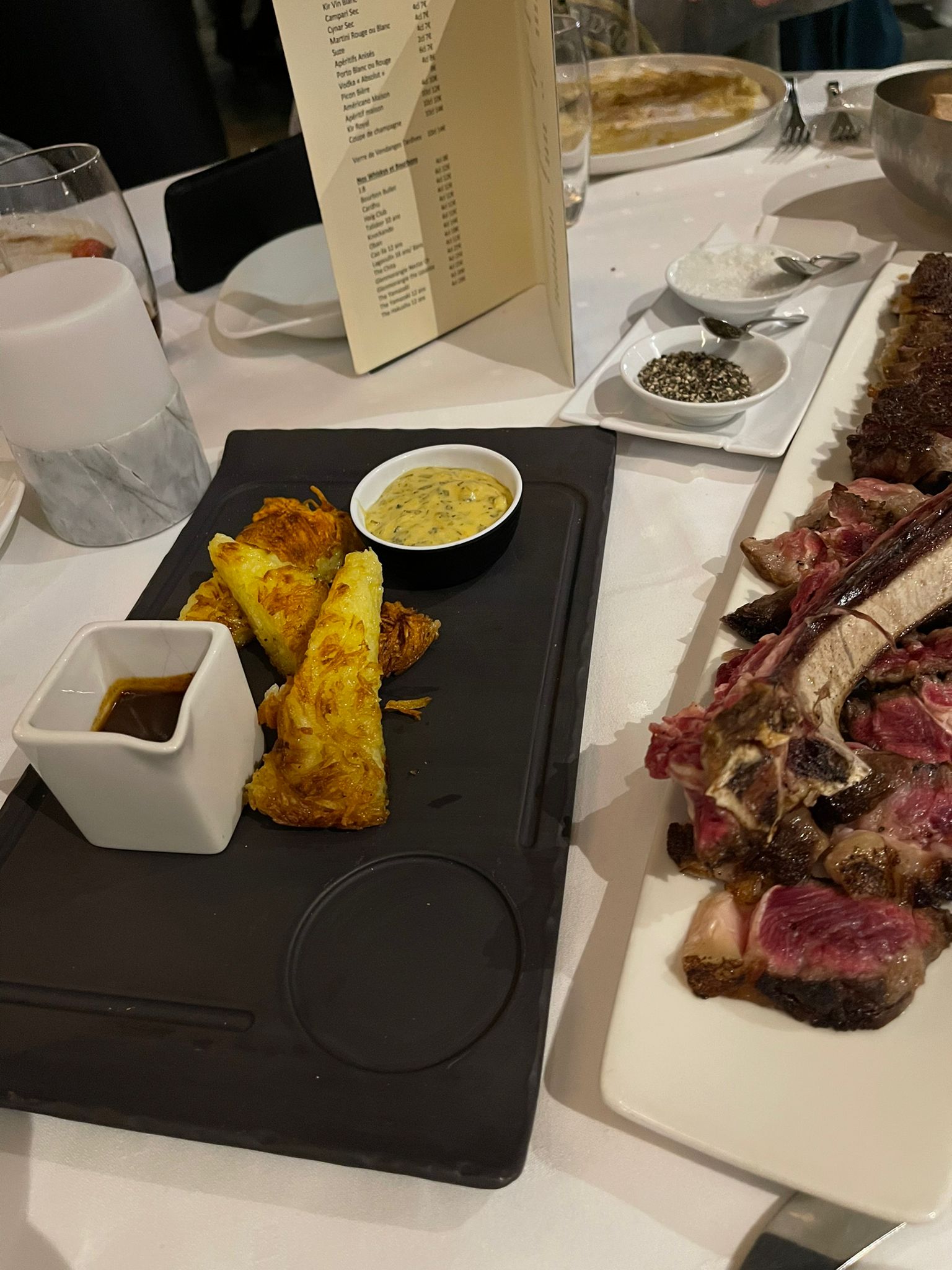 Un repas d'une grande qualité, des amuses bouche qui exalte les papilles, un choix de viande à tout prix avec les conseil de chef qui connaisse leur produits, un plateau de fromage bien présenté et des dessert succulent. Cela fait plusieurs fois que je me rend dans ce restaurant et jai toujours autant de plaisir à savoir que je vais y aller, quand j'y suis et quand jen parle autour de moi. Merci à tout le personnel pour les conseils que ce soit viande, fromage, ou vin. Et a la prochaine dans ce lieu magnifique.