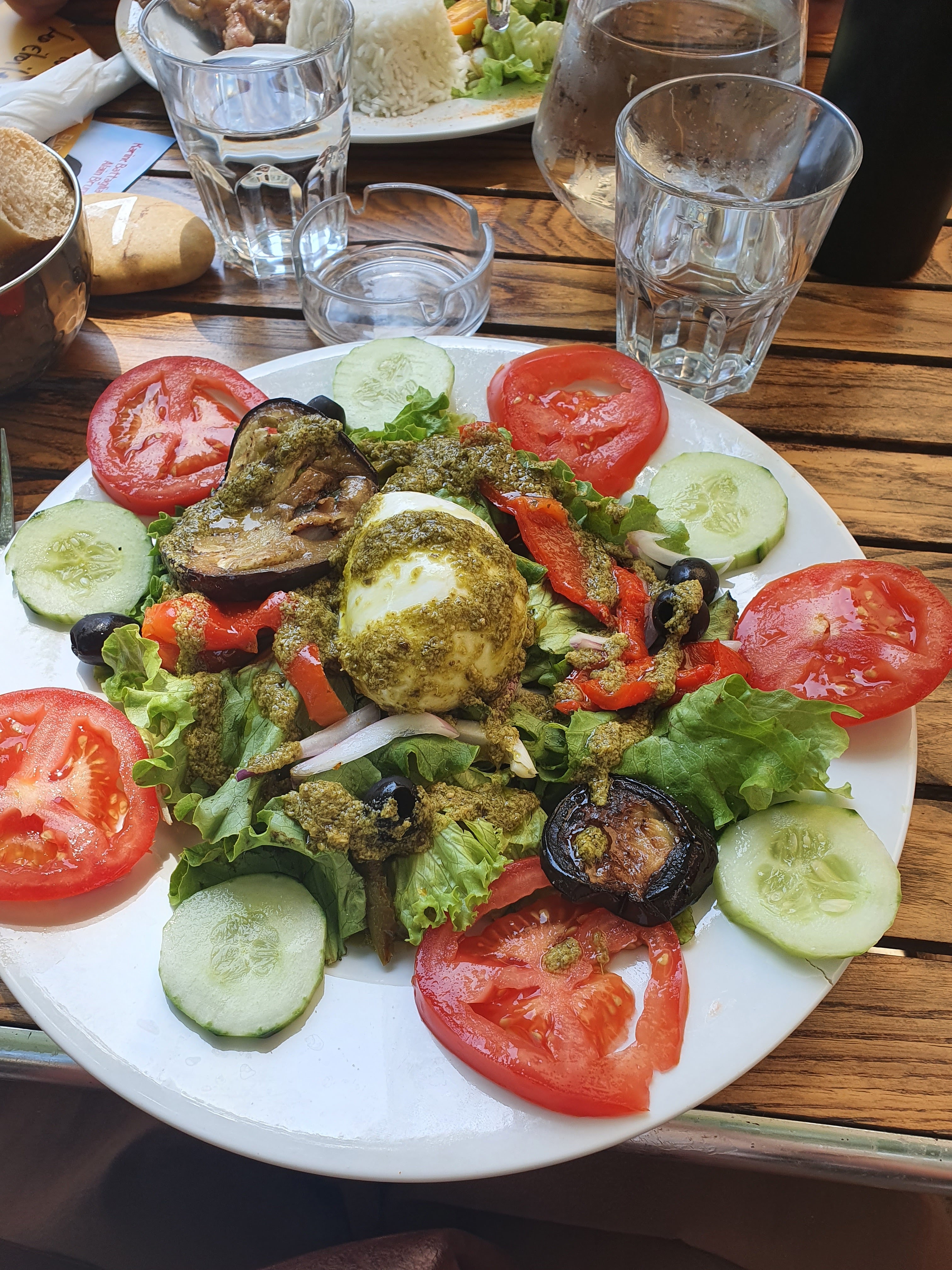 3 salades commandées, 3 salades qui sont des assemblages d’ingrédients en boîte. La palme pour les haricots verts en conserve de ma salade niçoise. Certes, c’est le festival d’Avignon et il y a du monde mais à 16€ la salade, on peut s’attendre à un minimum de goût. Je reviendrai certainement voir une pièce au théâtre mais pas au restaurant.