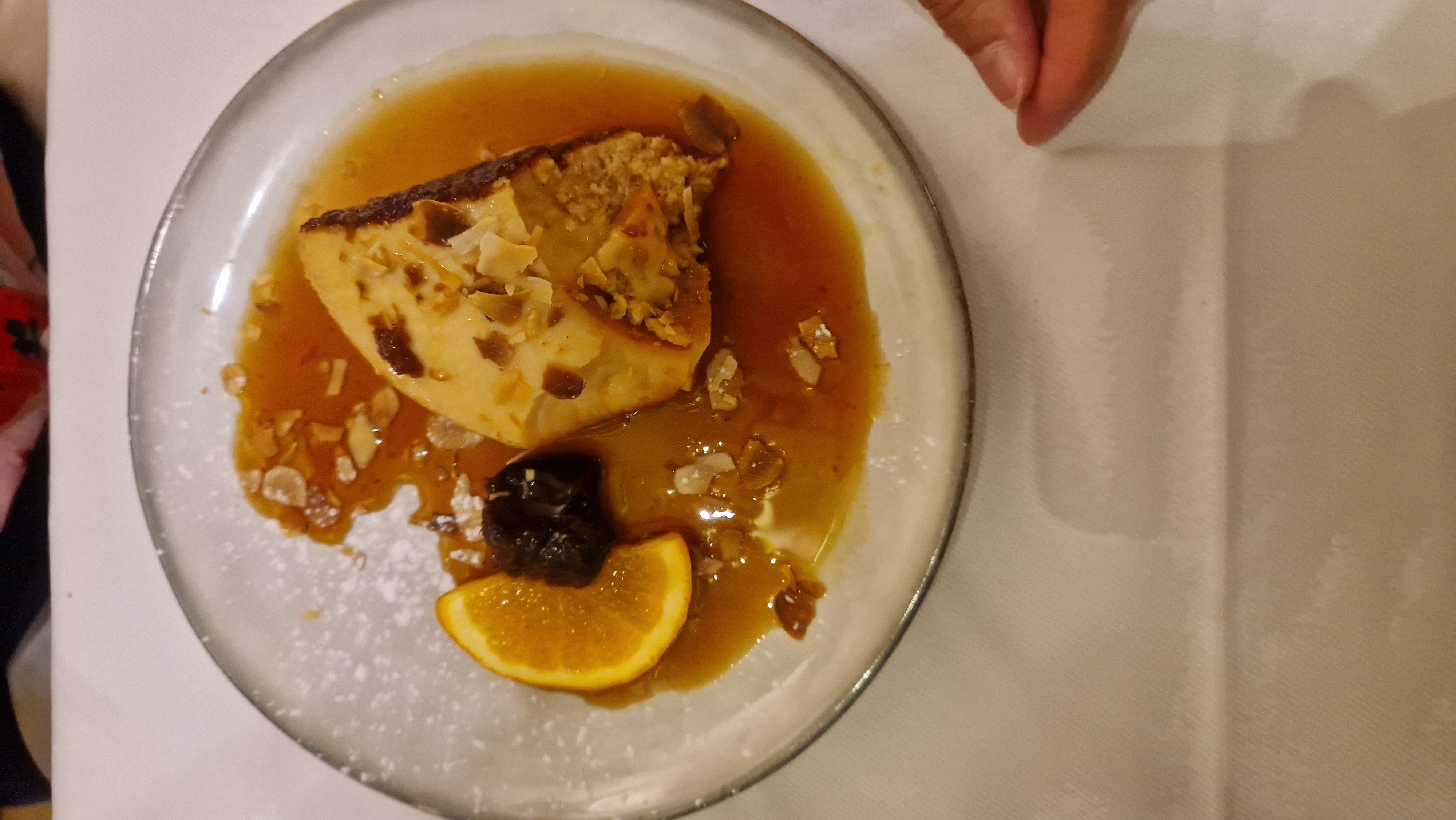 Voici le dessert Flan caramélisé servi tel quel.....Avait-il été déjà entamé ? Le chef s'est déplacée nous certifiant que son flan était servi à la cuillère....