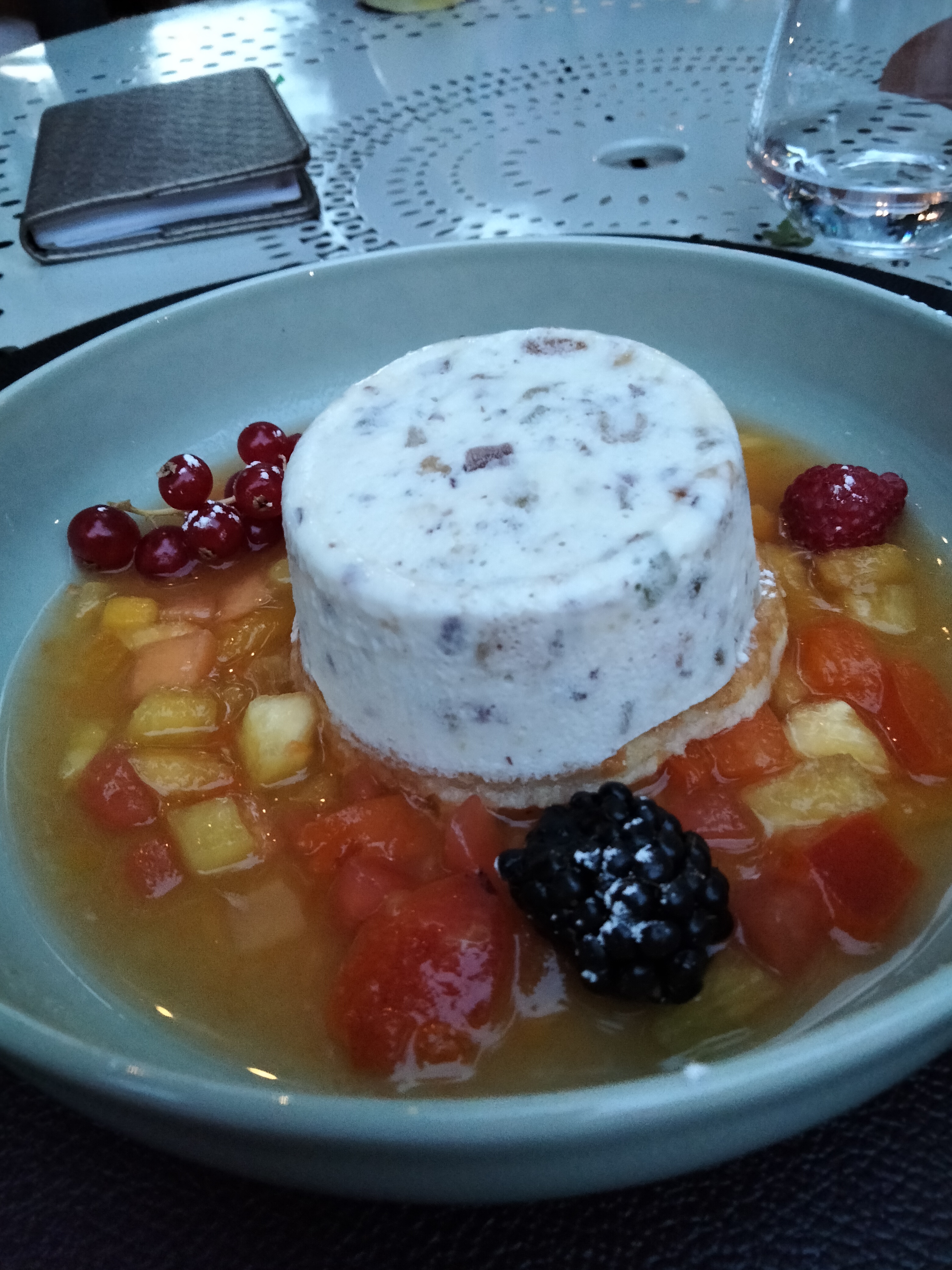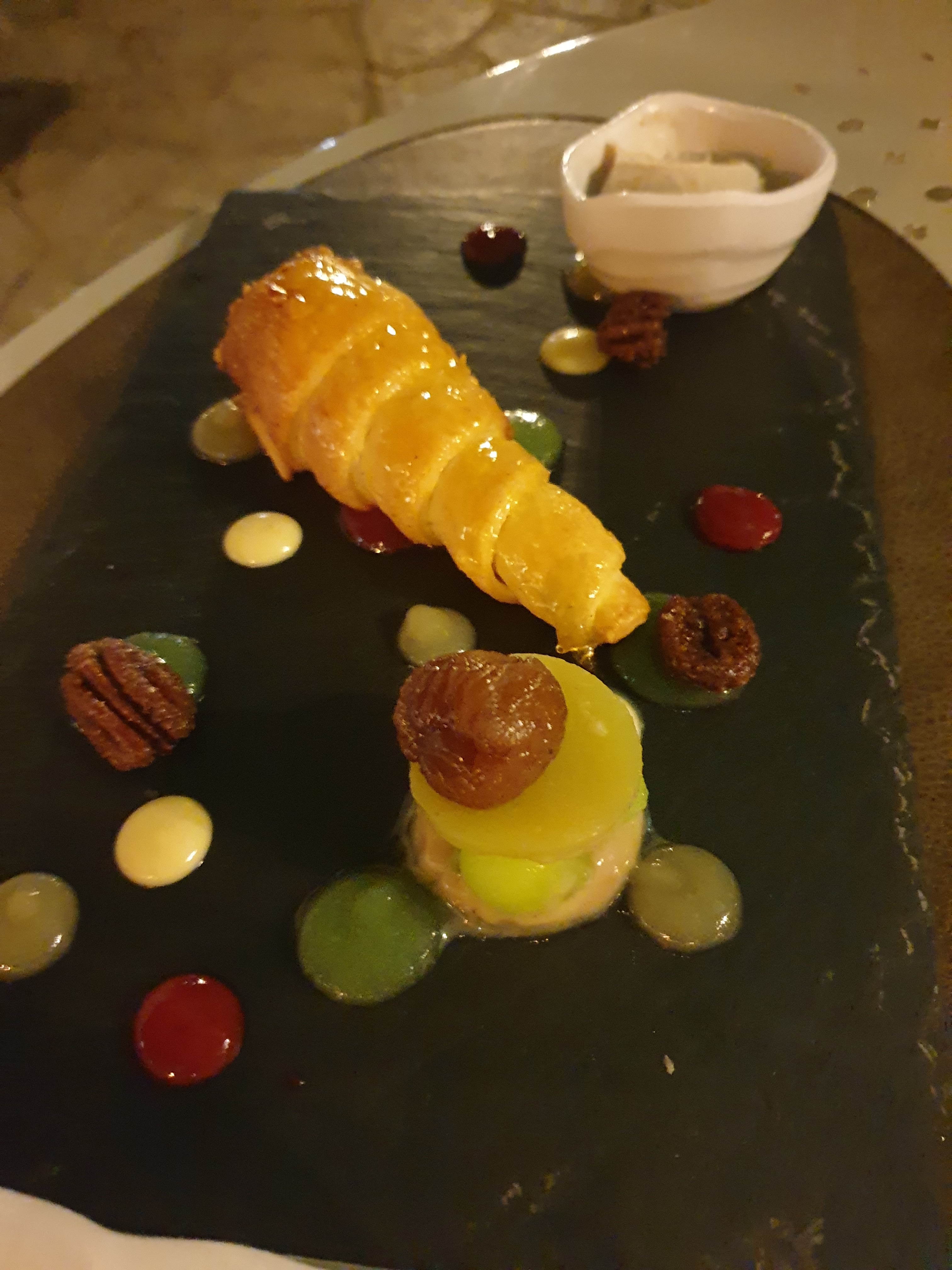Nous avons rejoint des amis qui séjournaient ici et avons passé un très bon dîner. La structure est au cœur d'une gorge et il y règne un merveilleux silence. La carte des vins est assez riche et, parmi les plats consommés, une place d'honneur revient au merveilleux sorbet de clôture.
