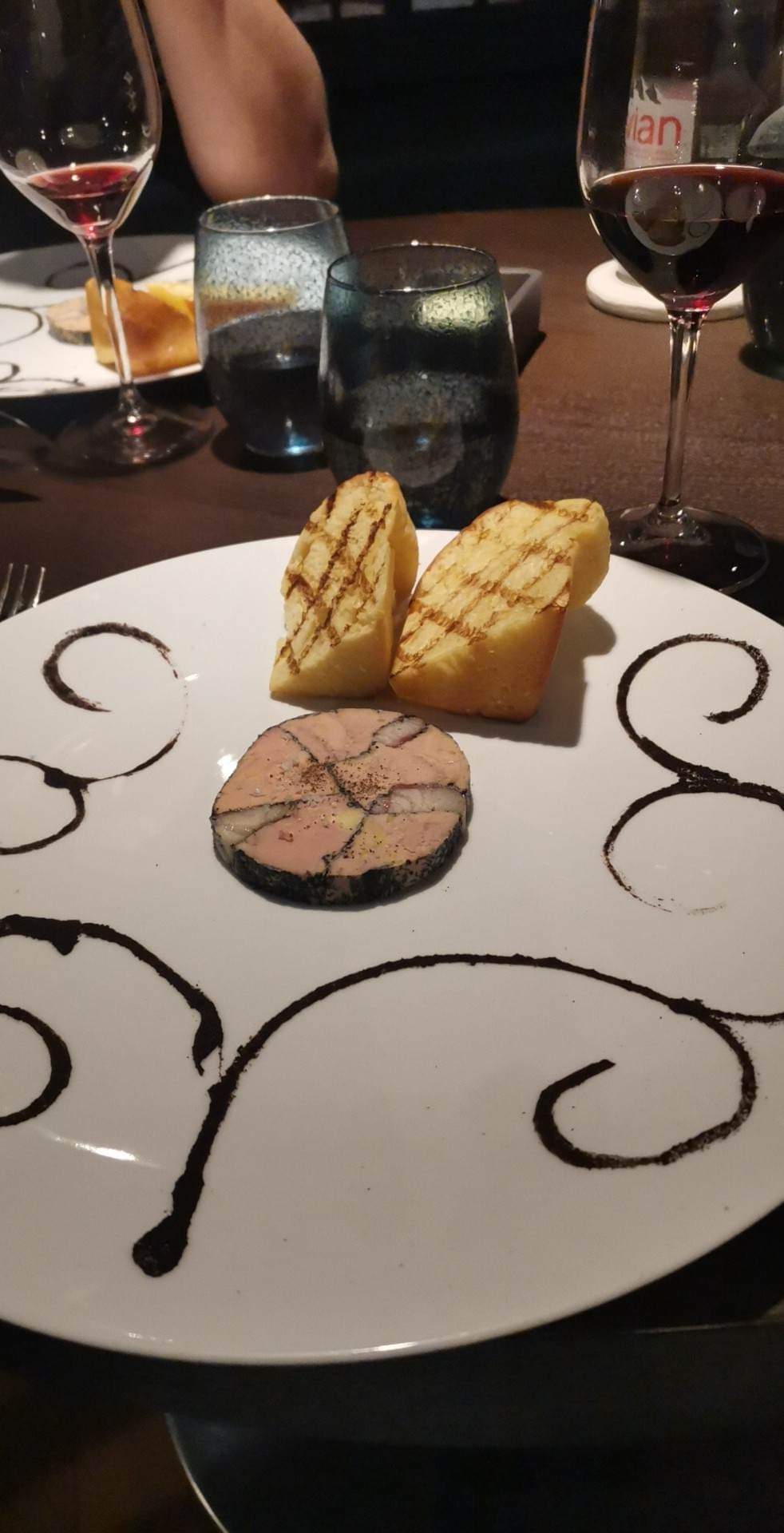 Nous avons passé un excellent moment avec une bonne nourriture et nous avions un certificat prépayé pour notre cocktail avant le dîner, le repas, l'eau minérale, les vins avec chaque plat et une boisson chaude. Nous avons acheté une entrée en supplément et nous avons également bu du cognac après le dîner. Je n'ai pas remarqué qu'il s'agissait d'eau minérale car seule une marque figurait sur l'addition à 7 euros. On nous a demandé si nous voulions de l'eau plate ou de l'eau gazeuse et on s'attendait à ce que ce soit le cas car leur site web indiquait qu'elle était incluse dans le repas lors de l'achat du chèque-cadeau. Le serveur a ouvert une deuxième bouteille pendant le repas, mais on ne nous a pas dit qu'il y aurait un supplément à payer. Ce fut une fin très décevante pour une expérience formidable. Ce n'était pas une question d'argent, mais le fait que nous ayons été facturés pour un article inclus sans préavis.
