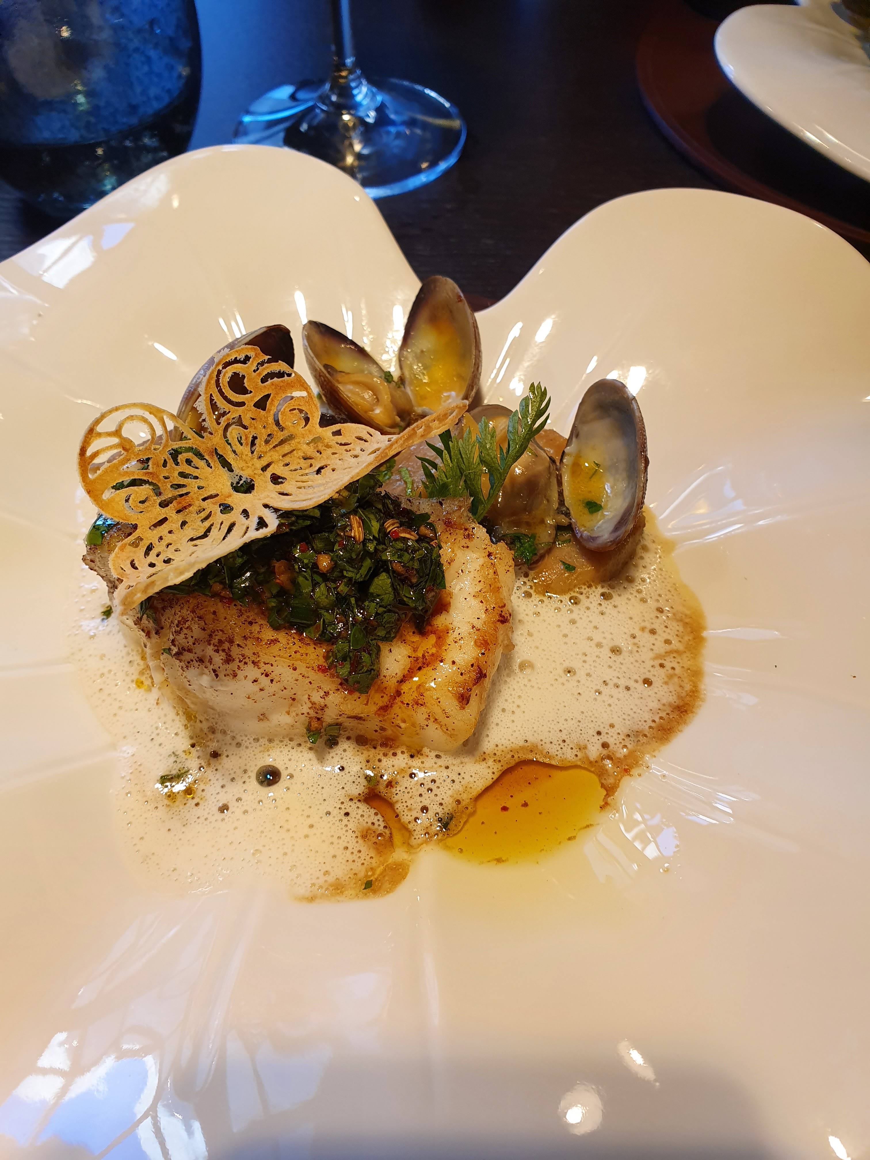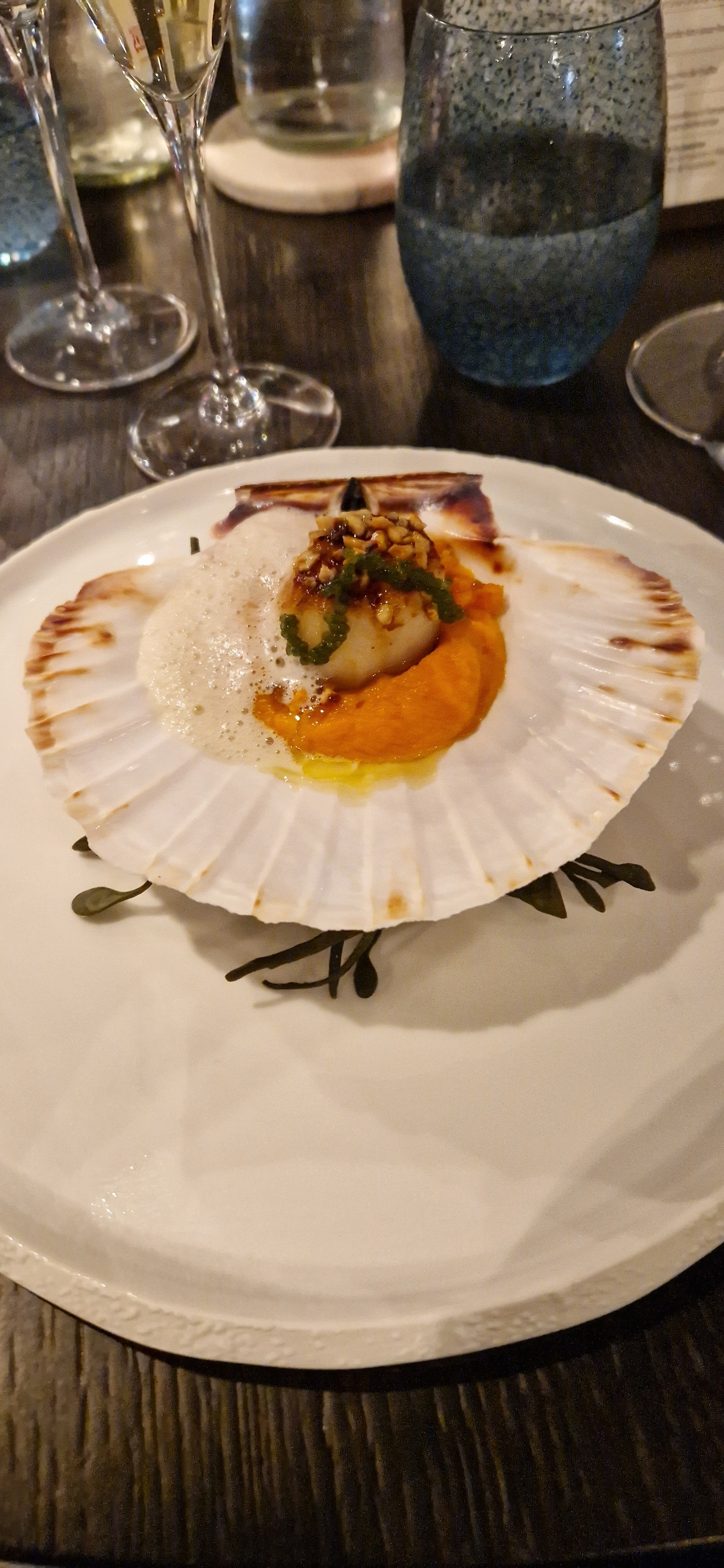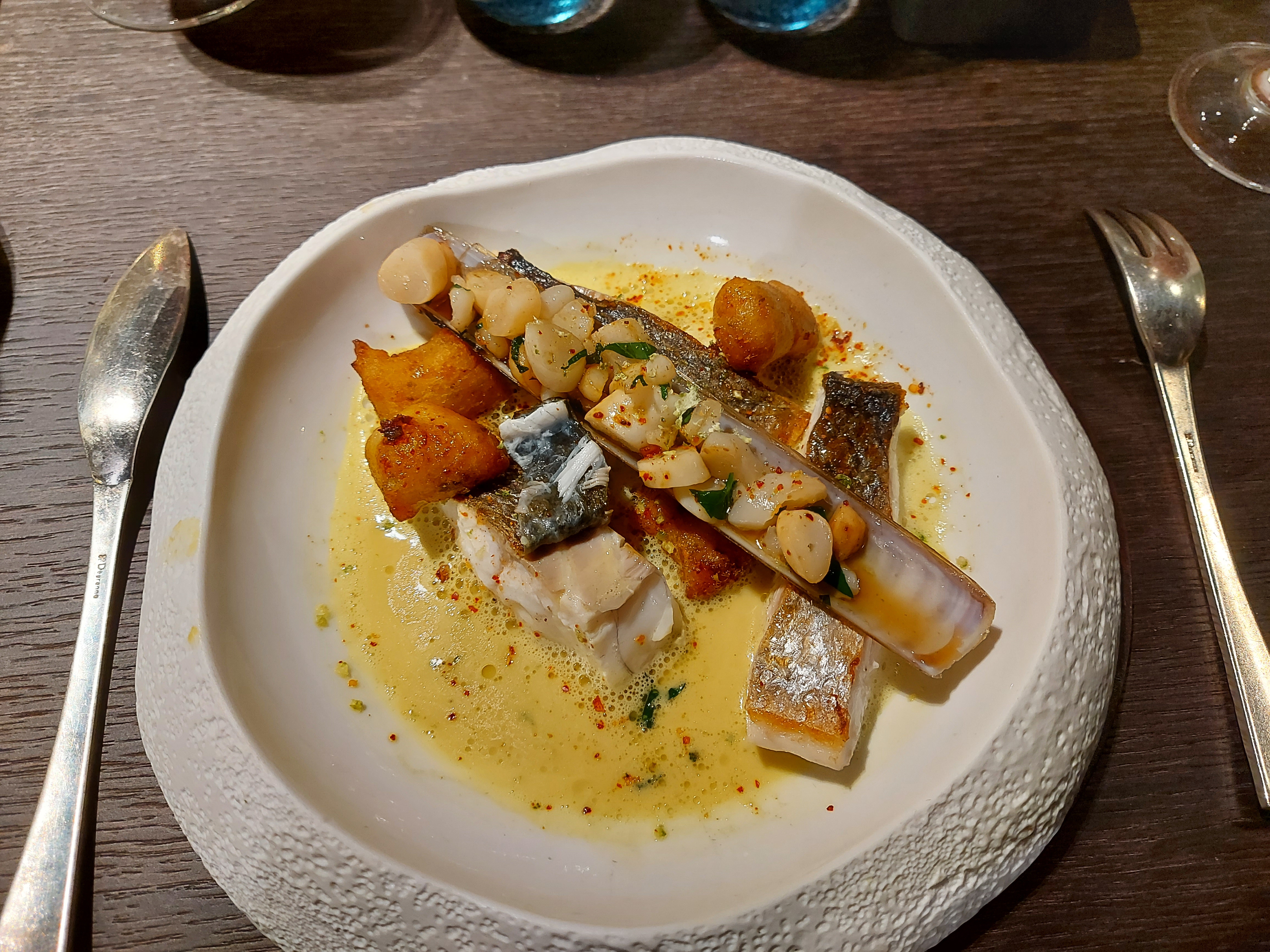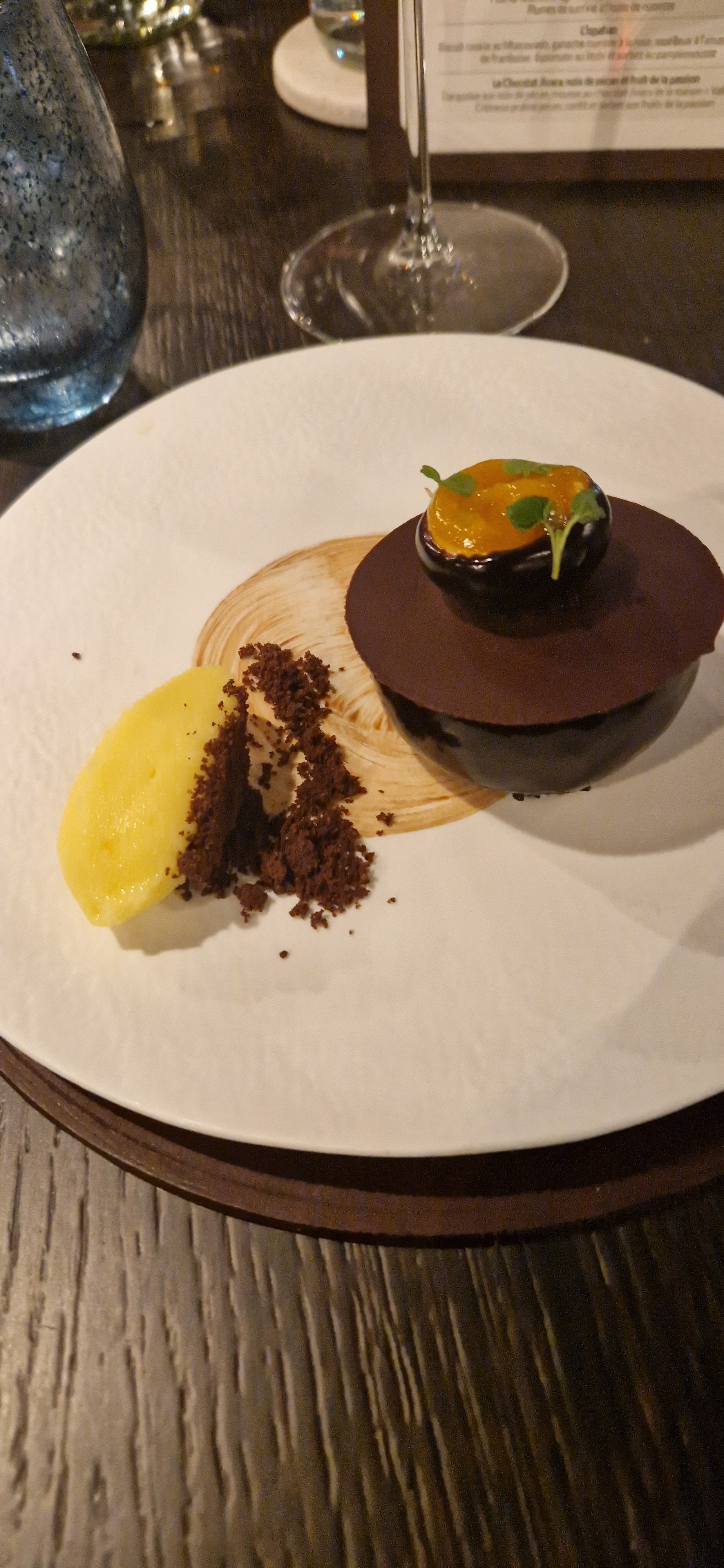 De passage dans ce restaurant ce soir. Nous avons passé un agréable moment dans une ambiance détendu. Le menu dégustation était excellent du début à la fin...les différentes saveurs sont très bien associées. Des plats d'une excellente qualité sont proposés dans ce restaurant et le cadre est vraiment sympa décoréavec goût. Le service des plats à table à était au top. Deux petites déceptions et bien dommage et le moment de l'encaissement qui nous a paru glacial limite gênant venant d'un membre du personnel qui nous a pris un peu de haut. Et également la personne qui nous a pris la commande du vin(2bouteilles)...qui nous a indiqué à voix haute que c'était la moins chère...je trouves ça dommage pour le standing du restaurant.
