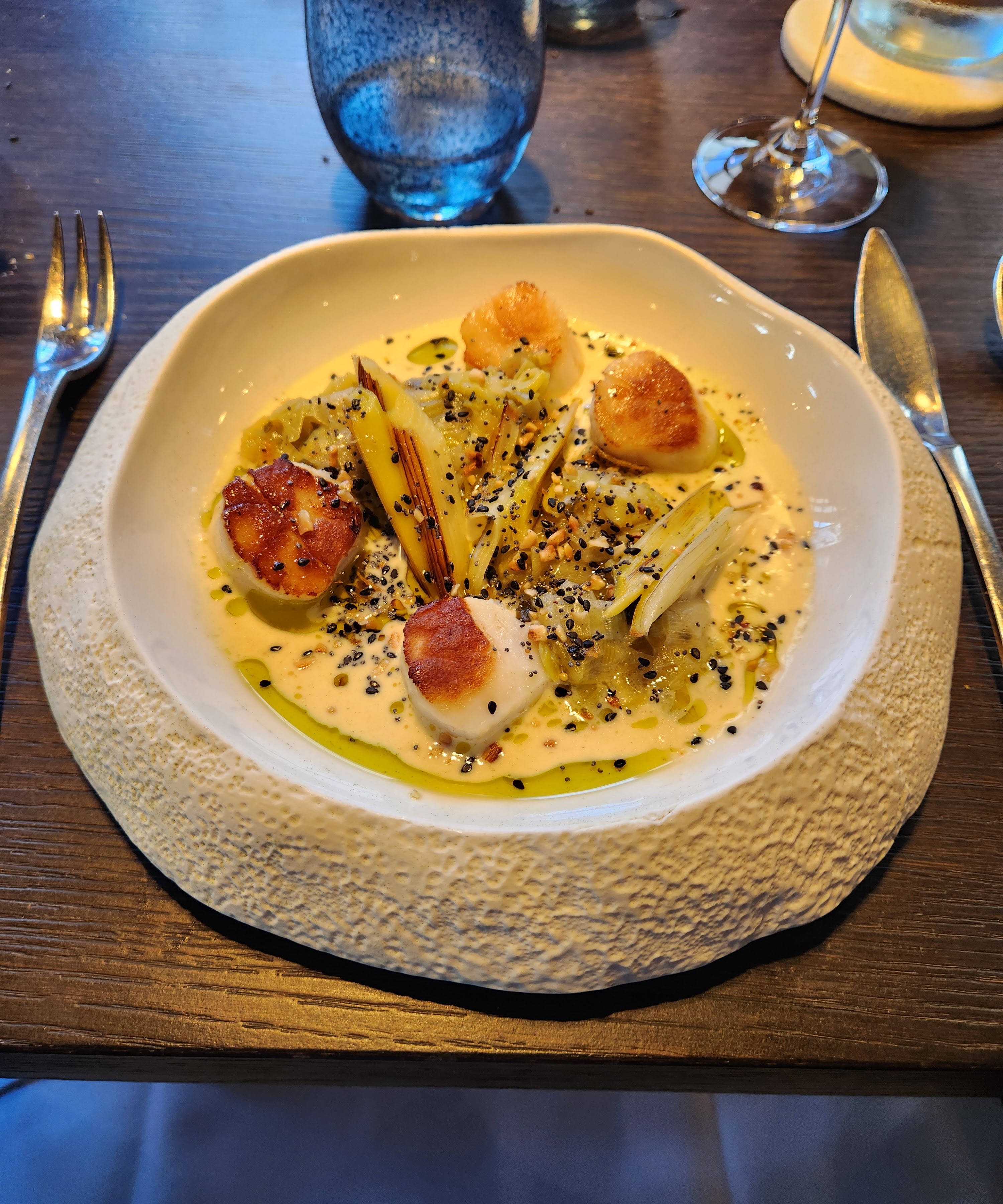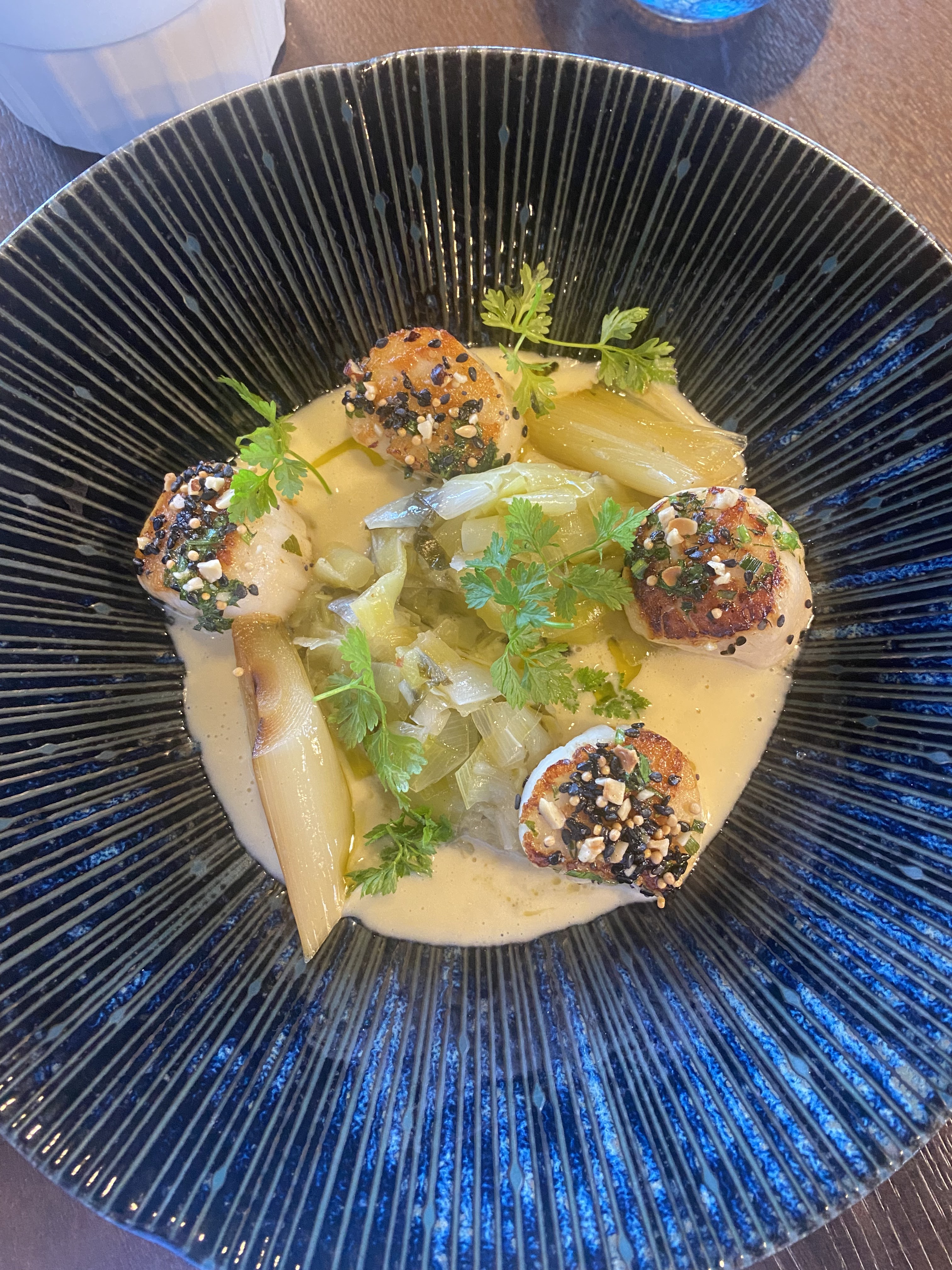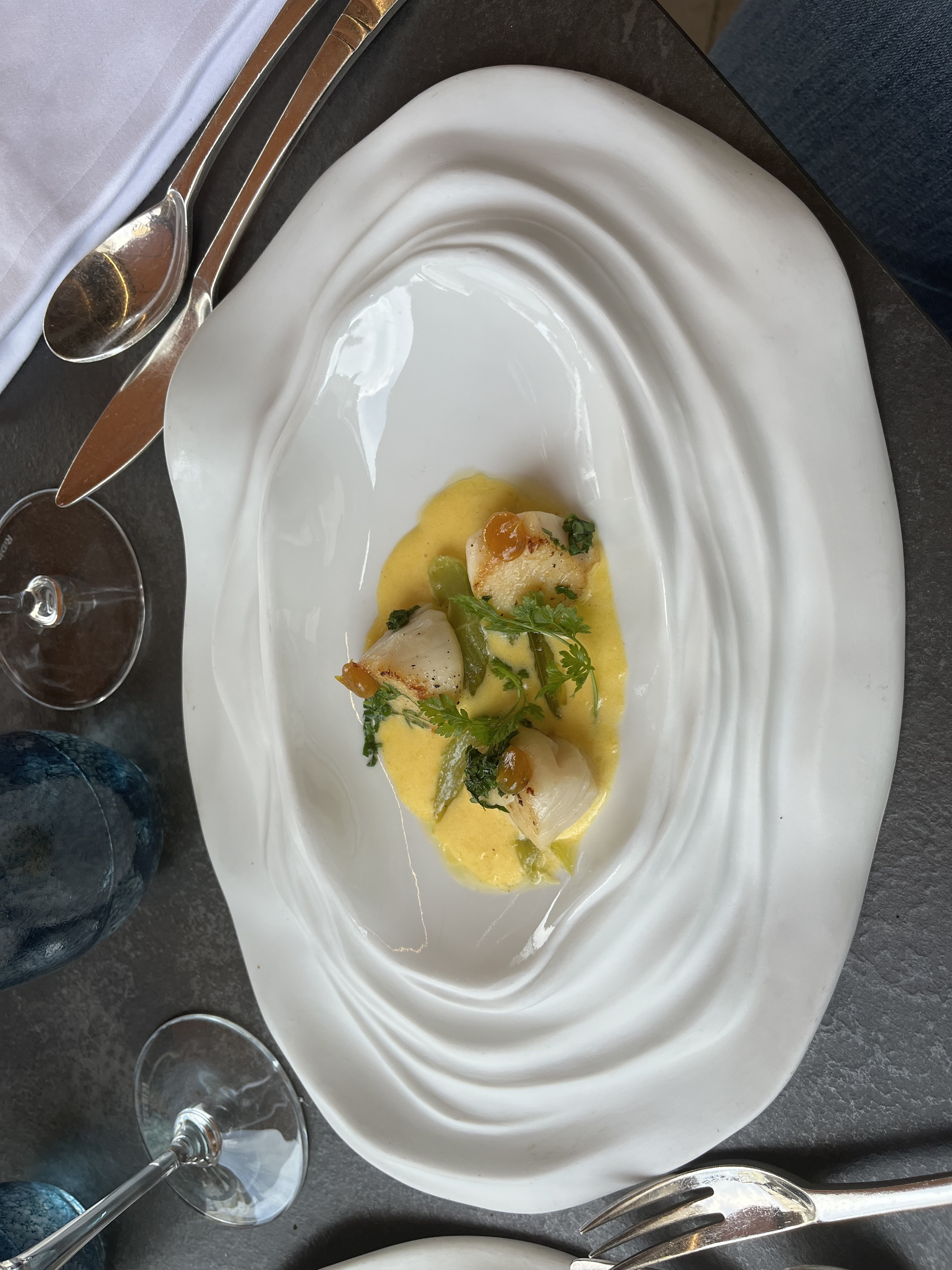 Nous avons pris un délicieux repas et avons apprécié la superbe qualité de chaque plat. Les assaisonnements étaient bien équilibrés mais innovants. L'accompagnement de poireaux aux coquilles St Jacque était vraiment exceptionnel. Le personnel était attentif et capable de répondre en anglais à nos demandes avec grâce et charme.