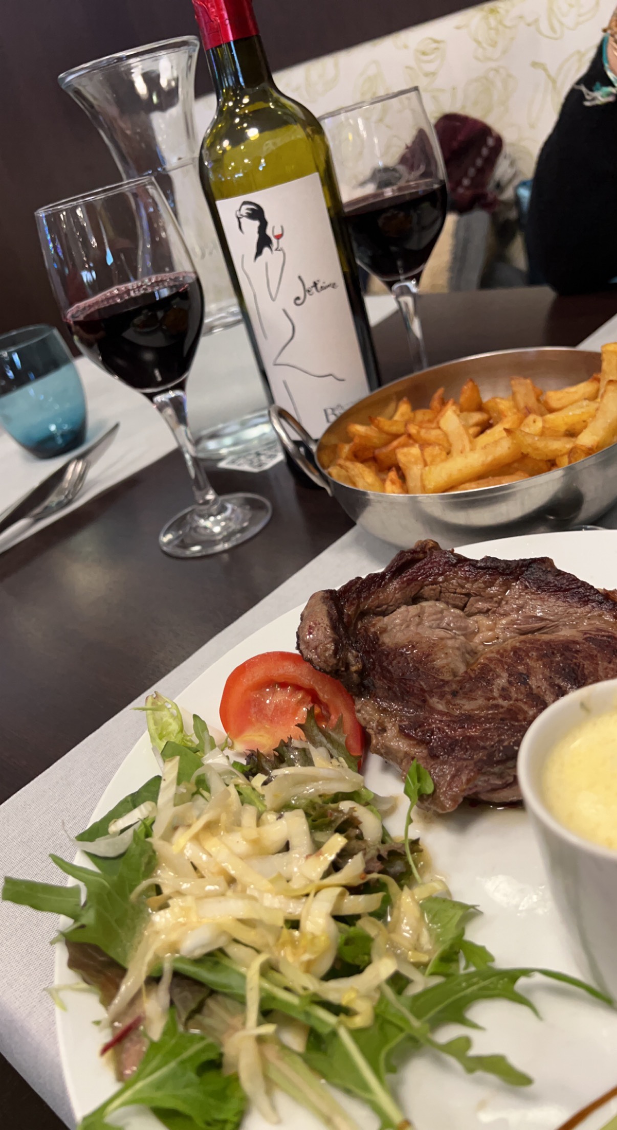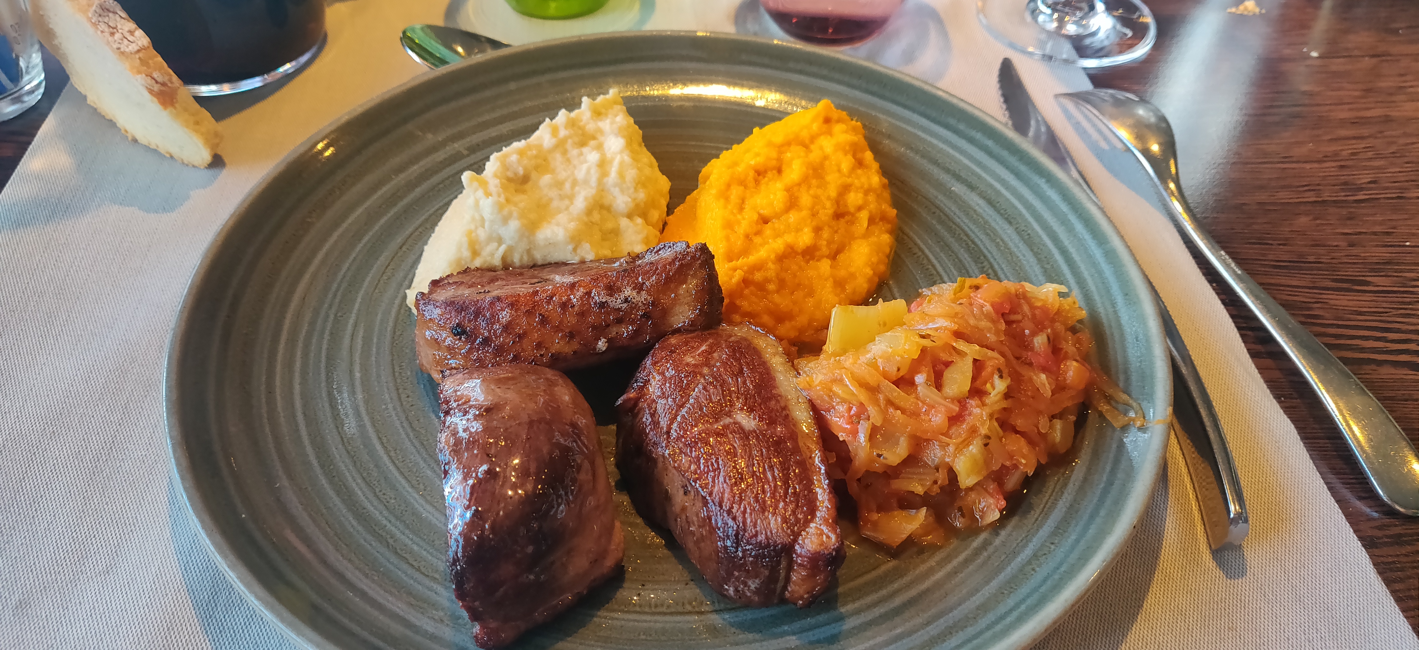 Viandes délicieuses, cuisson parfaitement maîtrisée (c'est rare) , excellente tarte tatin. Bravo à l'équipe... En ces temps de manque de personnel!! Très bon rapport qualité-prix.