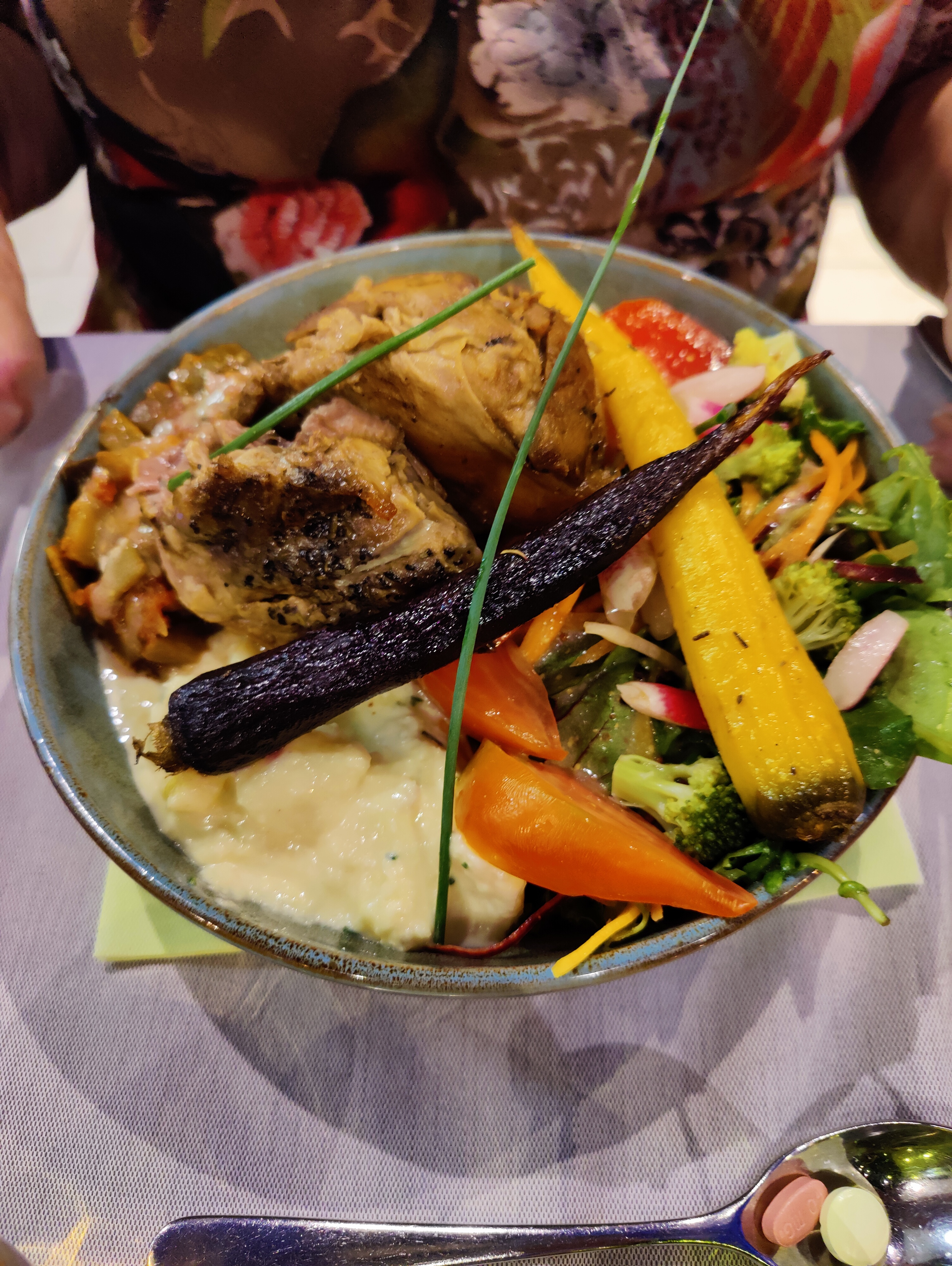 Déception pour ce restaurant qui pourtant nous a était conseiller ...deja a peine arriver on commande l'apéritif qui n'est même pas servi que la serveuse reviens à la charge pour notre commande repas sous prétexte qu'il était soit disant 14h30 et qu'il fallait se dépêcher...alors qu'il n'était que 13h 😅 ...commande passer grosse déception et pas que pour moi .. j'avais choisi une salade bowl...comment dire il y avait plus de sauce que de légumes ( cela dit l'assiette était bien garnie) les farcous était des pancake aplatis...je n'est rien pu manger c'était écœurant.et pour l'autre personne qui avait pris une autre salade bowl même souci pour la sauce ...et les tranches de saumon était très très épaisse cela était écœurant également. Mon mari avait choisi une cuisse de canard avec aligot la cuisse de canard était sèche je pense trop cuite...bref pas mal de chose serait à revoir ...il y a quand même un point positif..la portion des assiettes sont très généreuses.