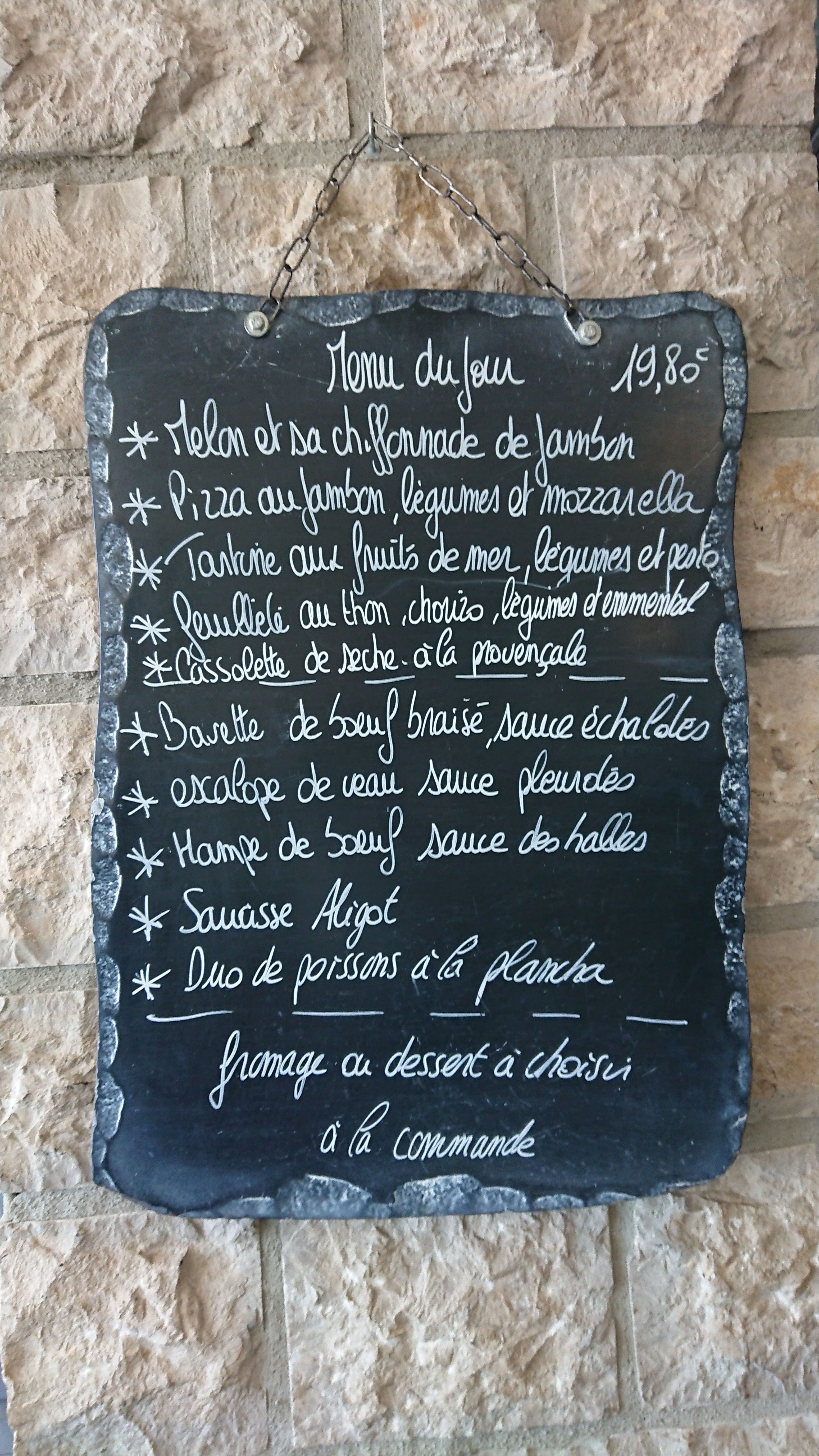 Menu du jour correct l'entrée était bonne. Par contre je n'ai jamais mangé une viande comme celle là. Habitué aux viandes fondantes de l'Aubrac celle que l'on m'a servi était très dure je n'ai pas pu la manger. Déçu ne reviendrai pas.