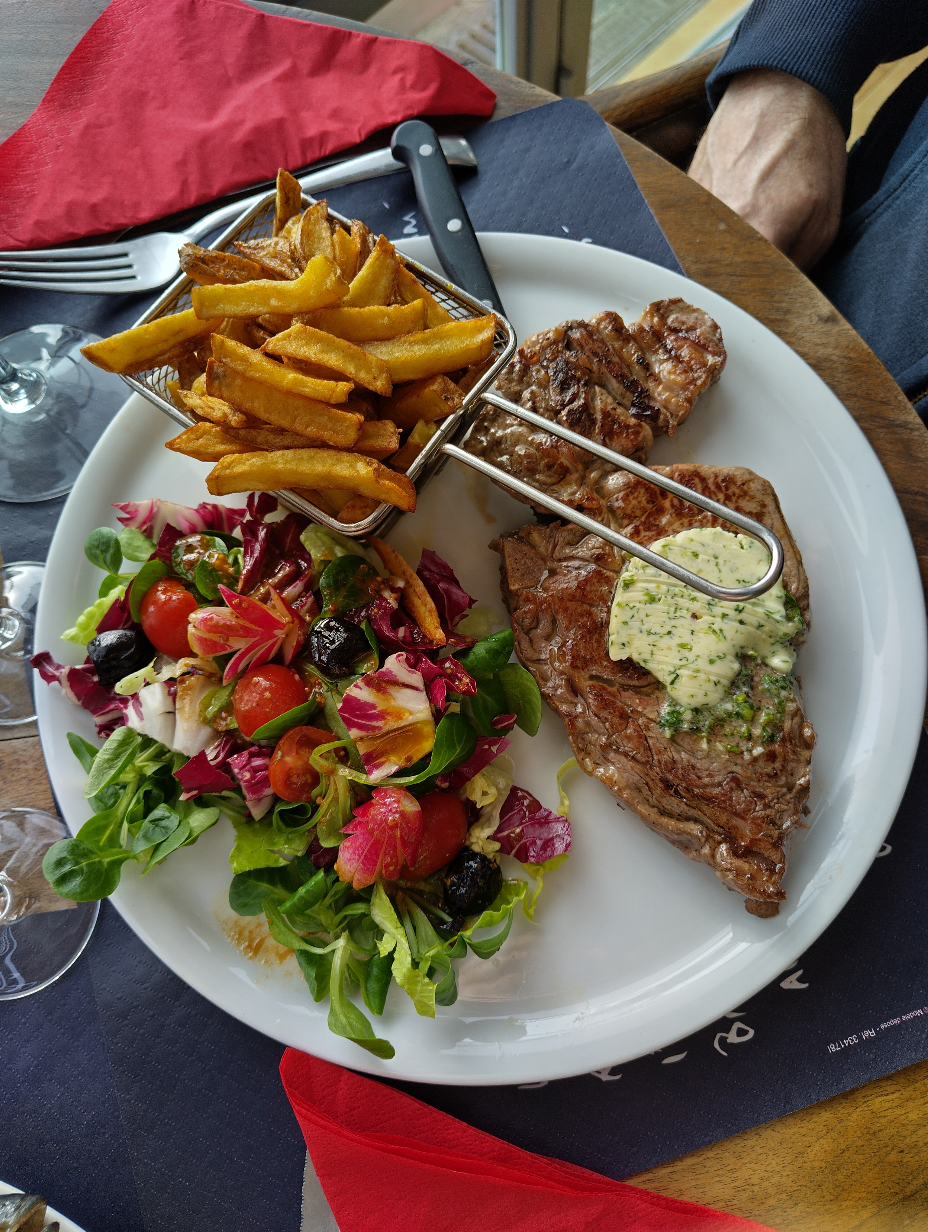 Excellent Nous avions choisi la côte de taureau accompagnée de ses frites et de sa salade.