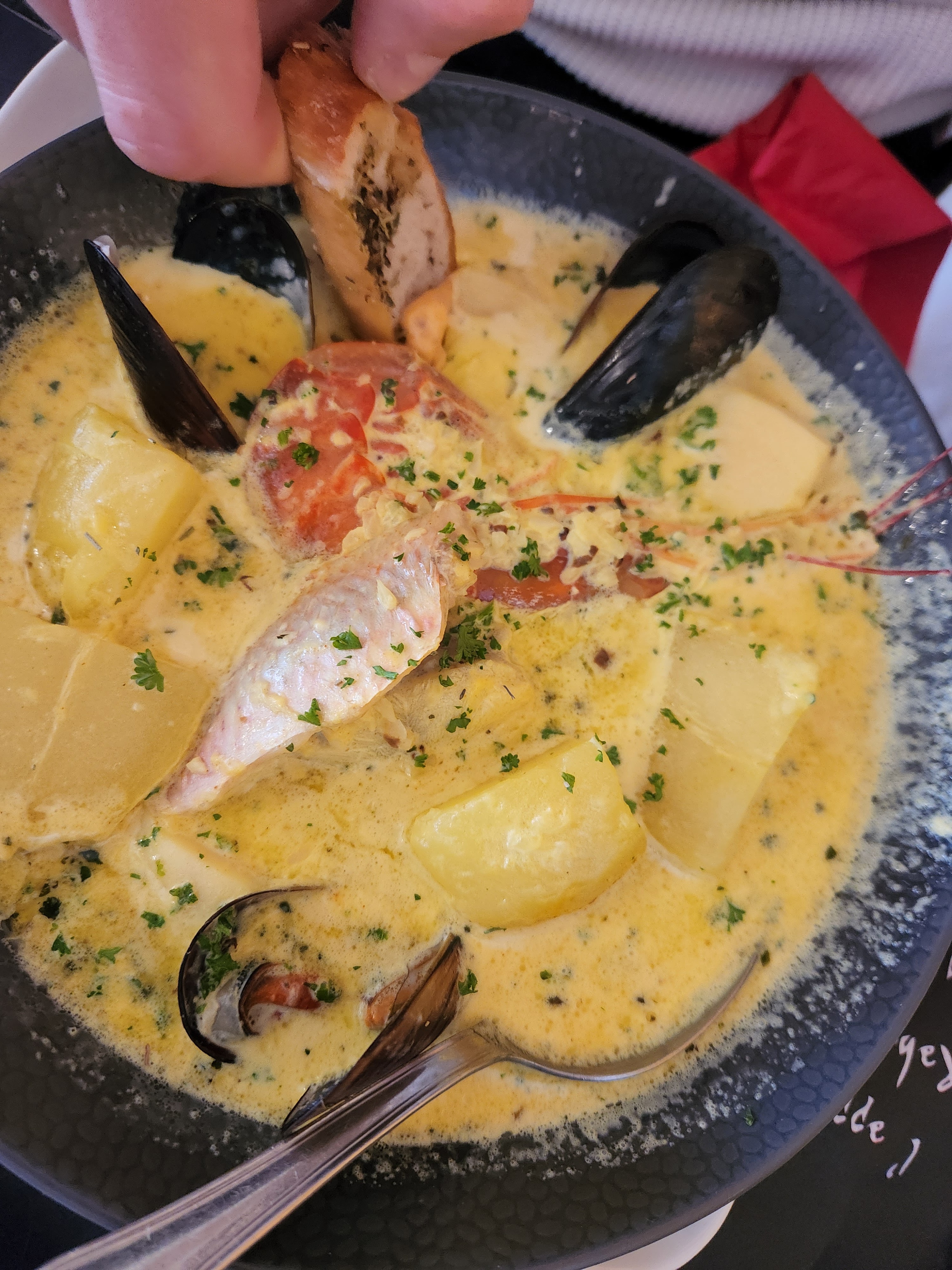 Super repas de midi, des moules marinières avec un jus jamais goûté aussi bon, et mon épouse un pavé de thon parfait …. Nous recommandons ….