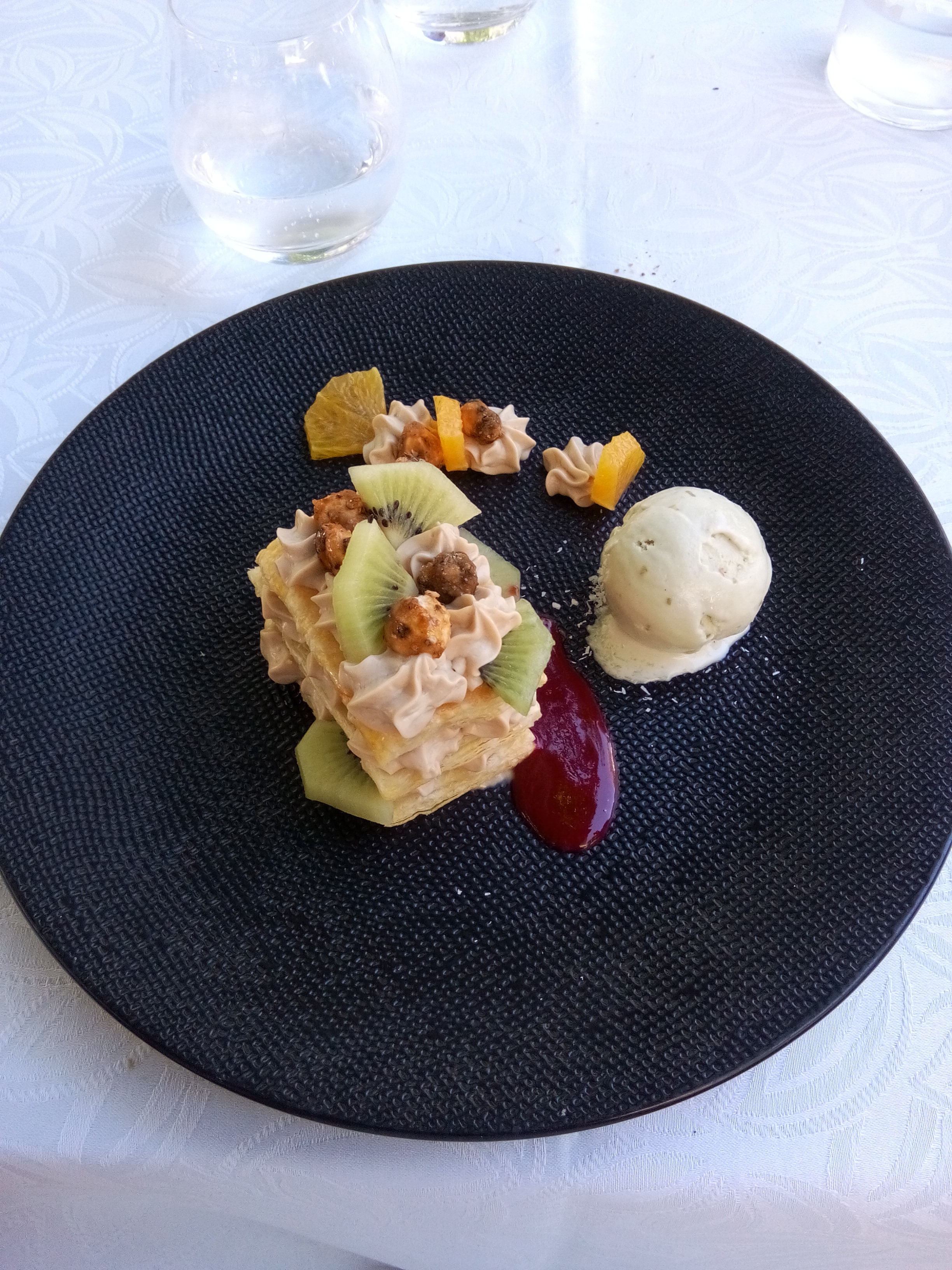 Tout est parfait, le cadre, le service et bien sûr les plats très raffinés. Ambiance un peu chic..du coup avec mon short même habillé cela dénotait un peu..mais aucune remarque.