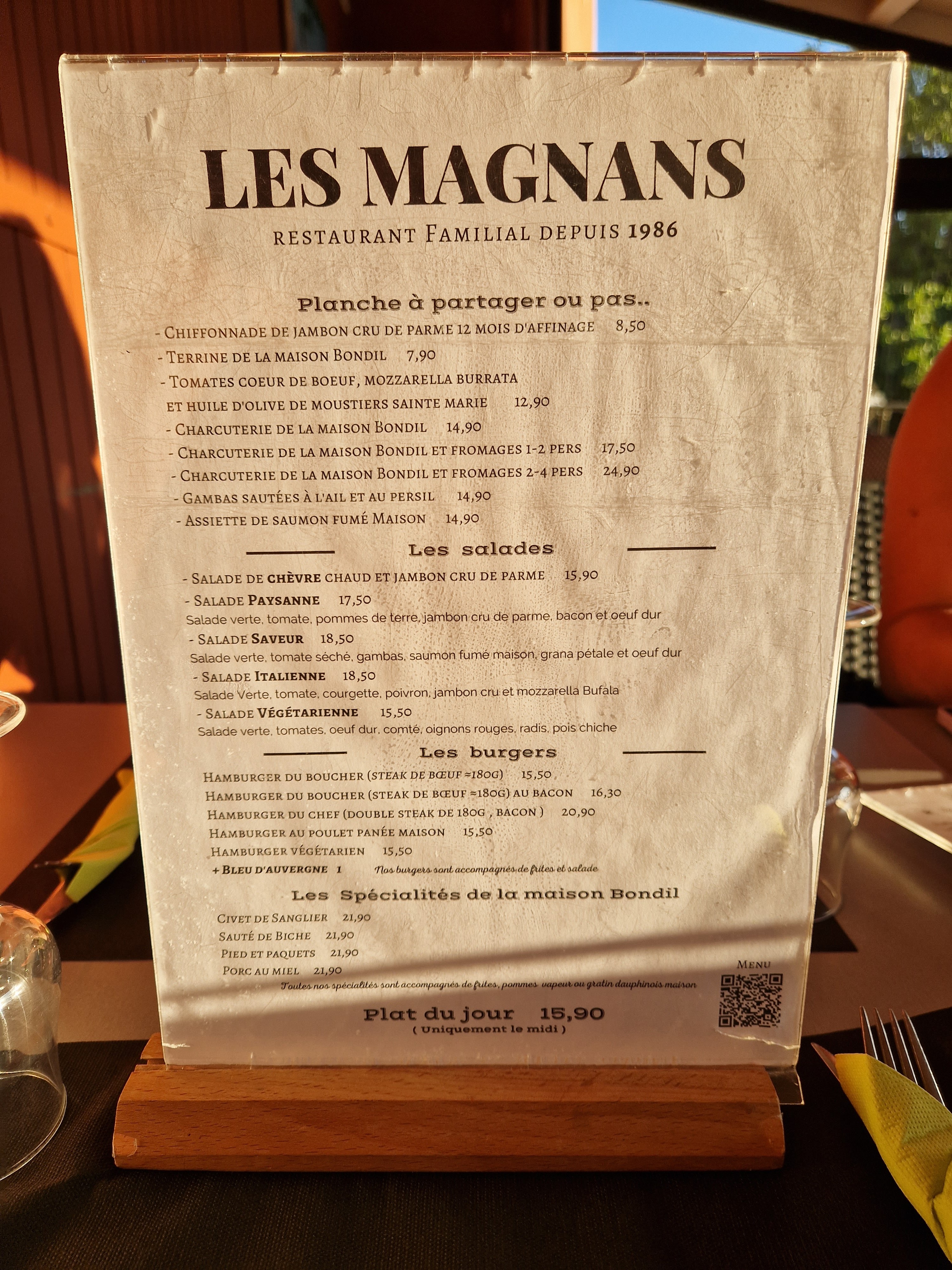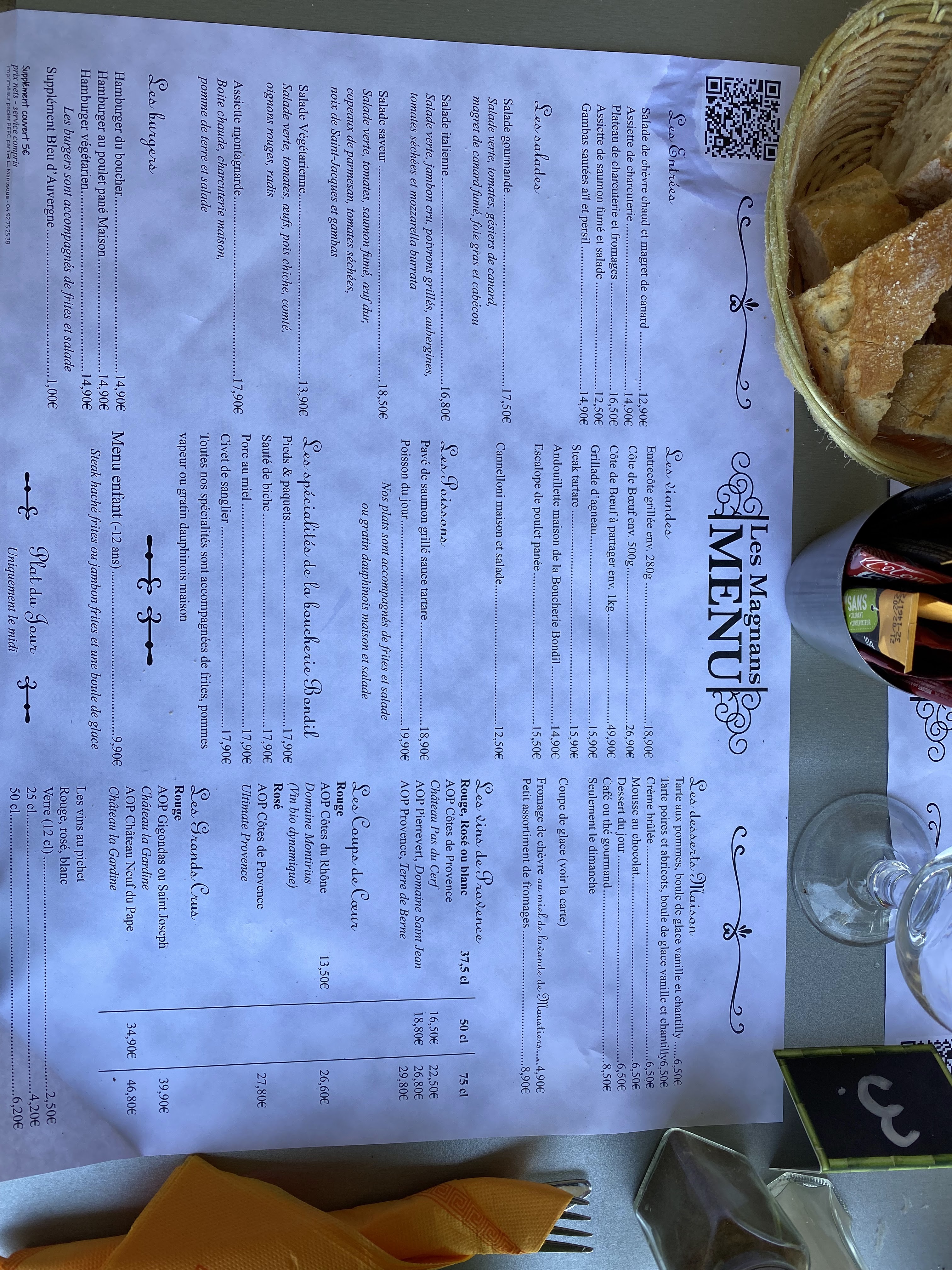 En vacances dans la région, nous sommes venu dîner dans le restaurant Les Magnans. Nous avons passé une très agréable soirée sur la terrasse tout en se régalant des plats choisis. Personnel au top, toilettes très propres, prix plus que correct, assiettes joliment décorées et savoureuses....👍 C'est sur, on reviendra dans ce lieu. Merci à toute l'équipe de nous avoir fait passer un agréable moment avant de se ballader dans votre très jolie ville.