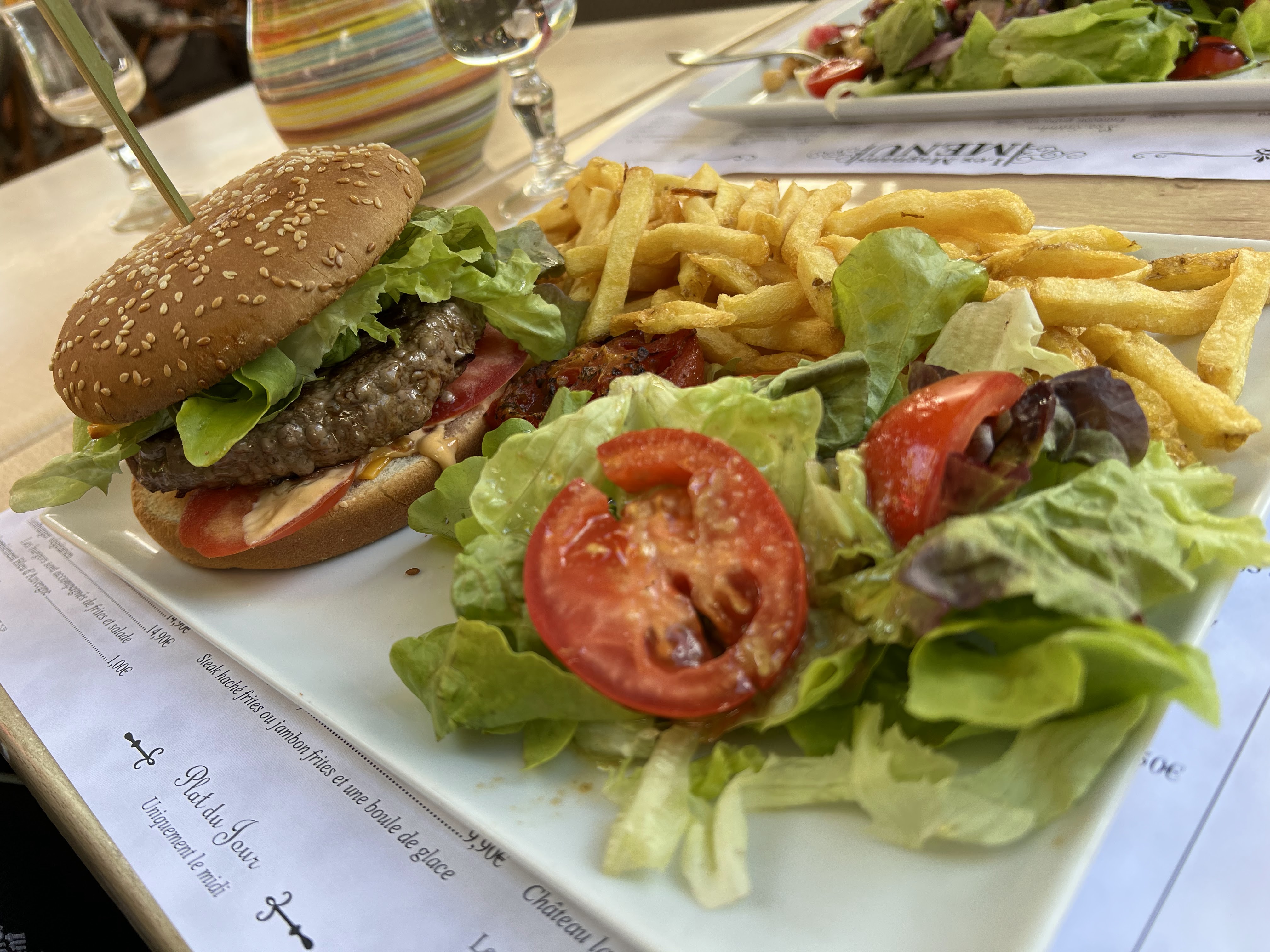 Burger américain mais meilleure texture ! Salade saine et environnement rafraîchissant. Les tomates sont délicieuses !