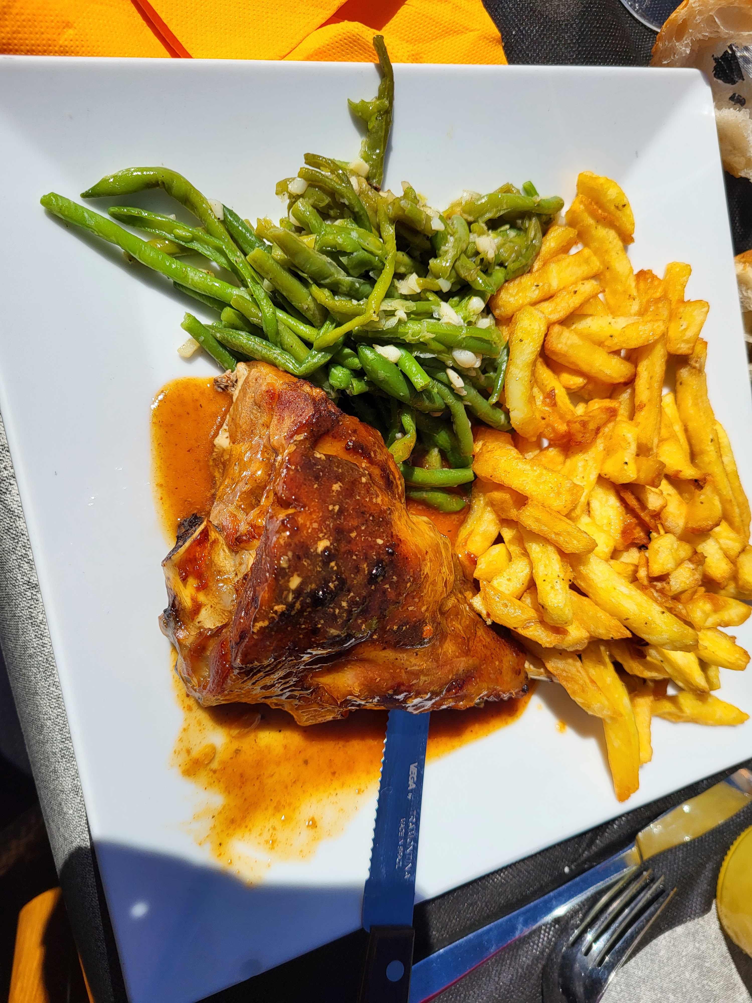 Cadre sympa jolie veranda ensoleillée, serveurs sympas, notre enyrecote était réussie