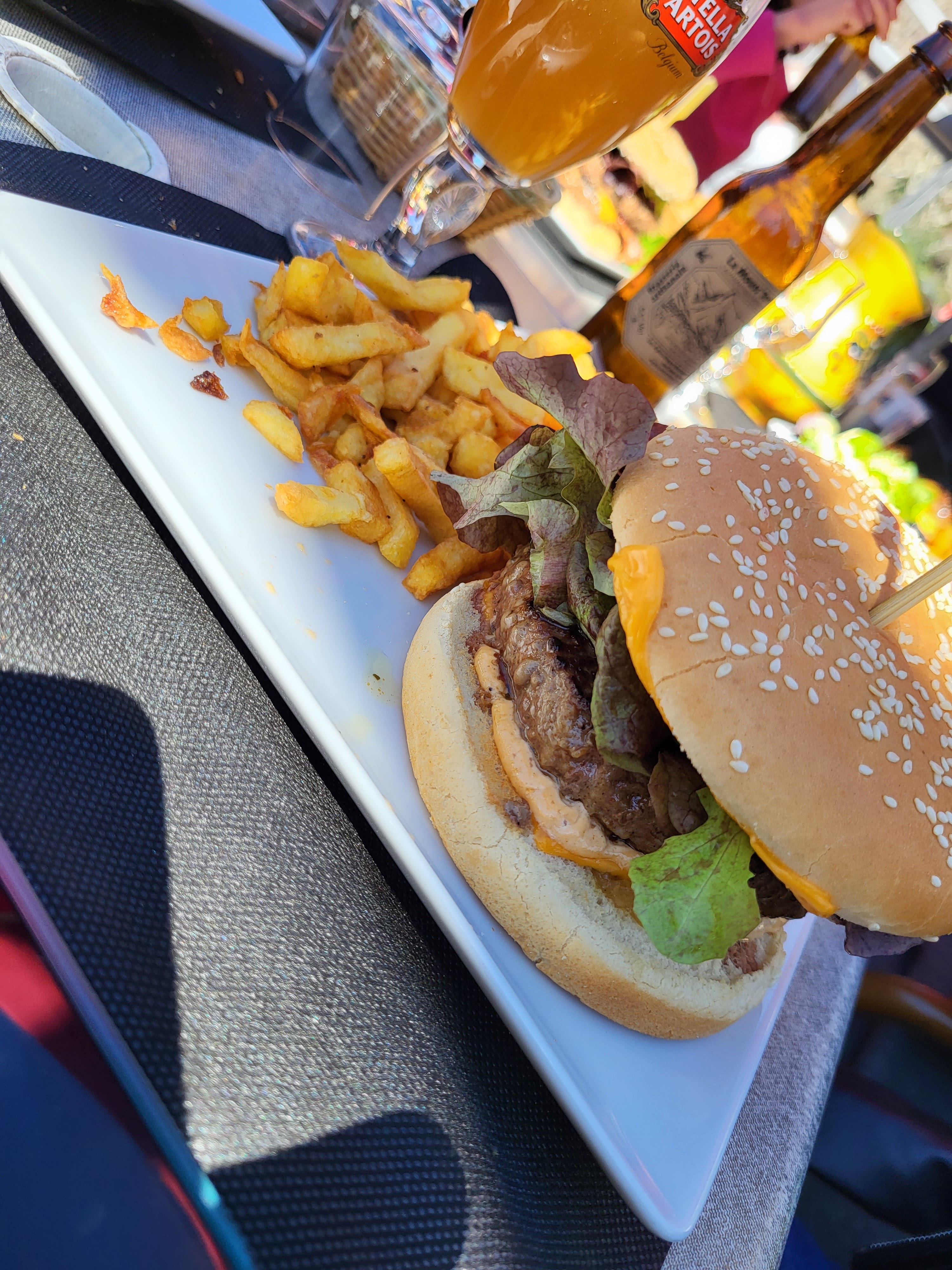Excellent restaurant ! Cadre et terrasse avec une vue magnique. Nous y sommes allés en famille à 5 pers. La bavette était excellente ainsi que les burgers et boîtes chaudes. Les serveurs sont très agréables et accueillants. Vous pouvez y aller les yeux fermés. Je recommande