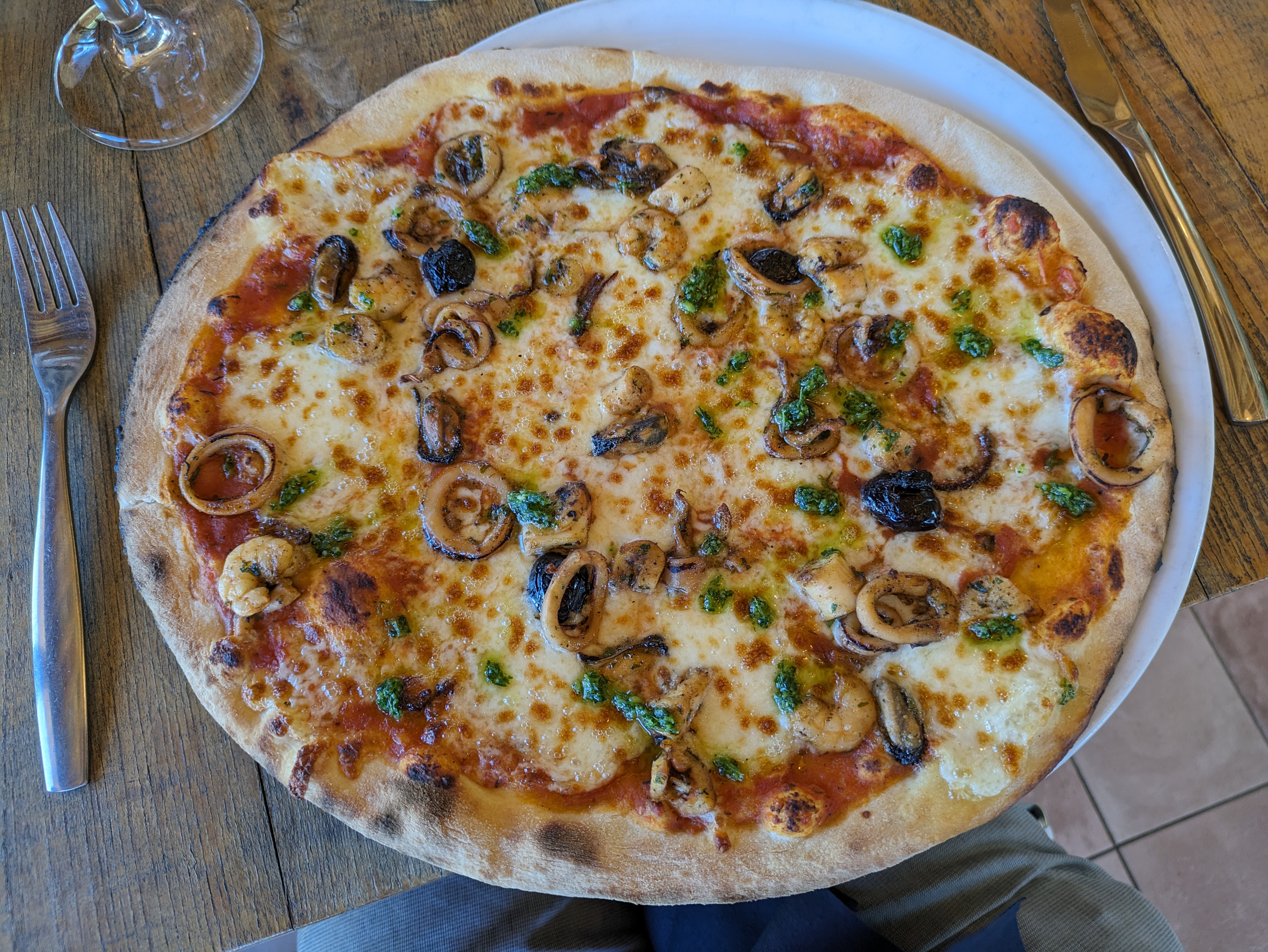 Tres bon restaurant, rizotto encre de seche et c gambas, pizza au feu de bois parfaite ambiance decontracte.