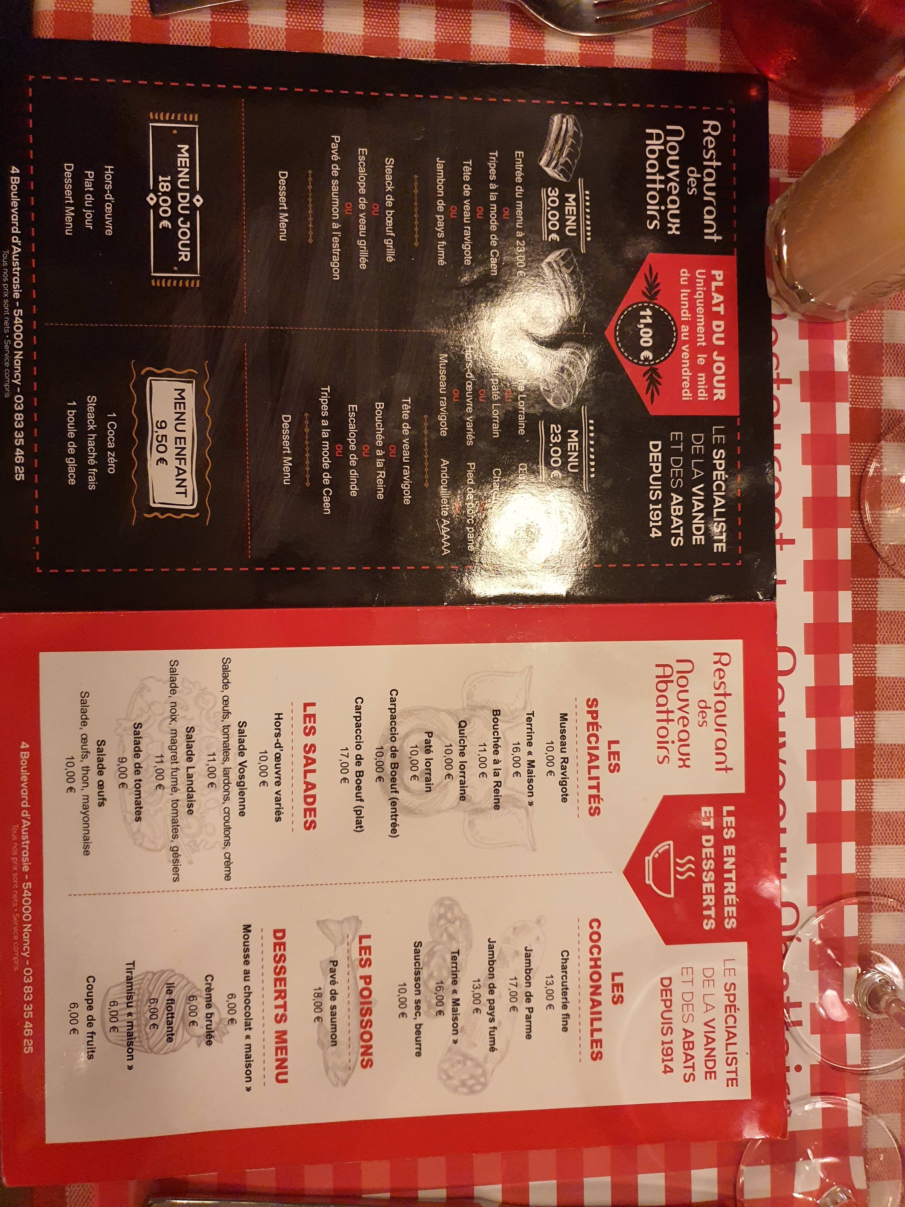 Le temple de la viande sur Nancy. Des produits de qualité avec du fait maison et quand c pas le cas c est annoncé L équipe est jeune, dynamique et très sympa. Le tout orchestré par un patron présent et qui veille au bien être des clients. La décoration est d époque avec des nappes à carreaux Si vous êtes sympa le patron vous racontera l histoire du lieu qui a nourri des générations. Je connais ce lieu depuis de très nombreuses années. Je vous le recommande et vous invite à goûter les rognons.