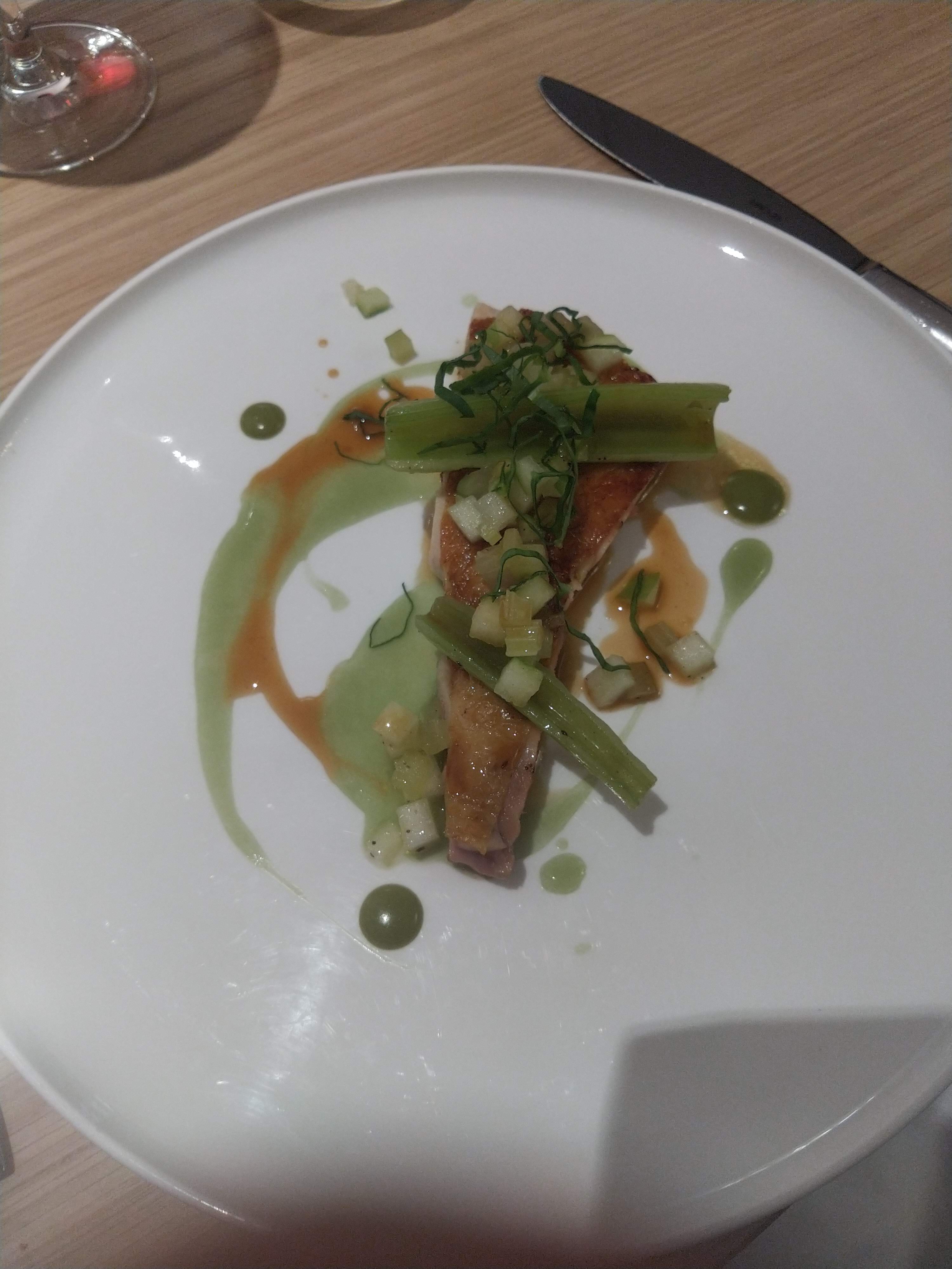Plutôt mitigés : nous découvrons à notre arrivée que notre réservation n’avait pas été enregistrée et sommes installés du coup à l’une des plus mauvaises tables du restaurant. L’entrée ( à base de betterave) n’était pas d’un niveau « étoilé « le poisson ( médaillons de lotte) était délicieux très bien réalisé , le dessert également. Par contre un stress constant du début à la fin du dîner généré par un personnel sur les nerfs. Les serveurs n’ont cessé de courir en continu, beaucoup trop de couverts pour le nombre trop limité de personnes au service. Nous avons du attendre le sommelier alors que nous étions déjà servis il était tout azimut ayant beaucoup de mal à suivre. Vraiment très désagréable quand vous réglez une note de 460 euros à deux ( certes un très bon Chateauneuf du Pape 2015 à presque 200 euros la bouteille mais une magnifique découverte). Dommage : il faudrait réellement réduire le nombre de couverts afin que l’on puisse se retrouver dans une ambiance détendue et déguster en paix.