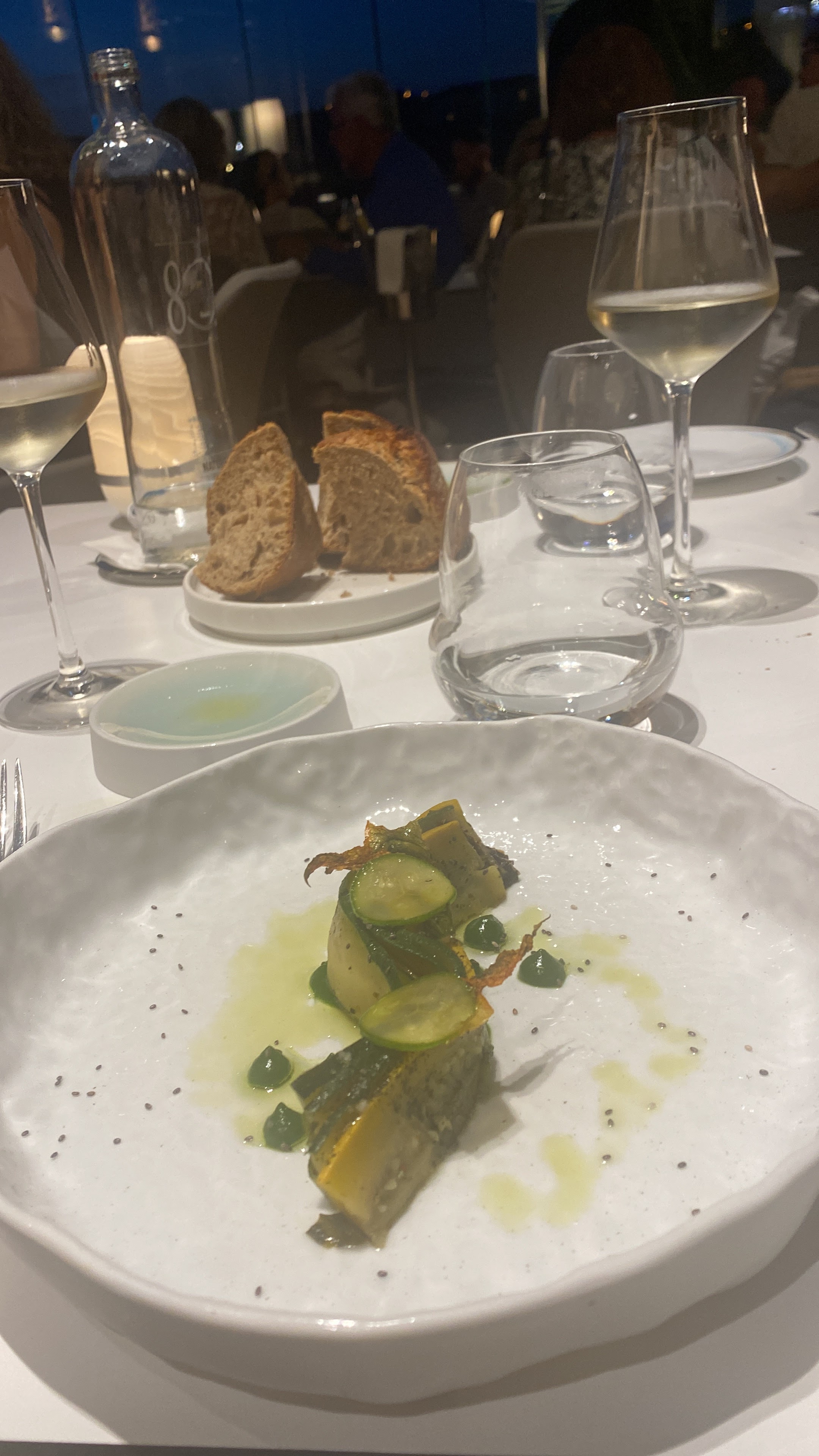 Excellent moment ! Une cuisine parfaitement maîtrisée avec des saveurs incroyables. Le pain est excellent, les mises en bouche divines, et le saint Pierre : fabuleux ! Les desserts nous ont également régalés. Le service est irréprochable. Ni trop. Ni pas assez. Aux petits soins, sans être omniprésent. Les plats sont bien présentés. Le sommelier est passionné et super pro : il nous a parfaitement orienté avec énormément de détails et de précisions. Ce qui ne gâche rien : la vue est à couper le souffle, au soleil couchant. Tout était au rdv pour une soirée d’exception. Étoile largement méritée à tous les niveaux! Petit bémol pour les intoxiqués au tabac : un petit coin fumeur à l’écart du reste de la clientèle aurait été le bienvenu pour nous éviter de sortir sur le trottoir.
