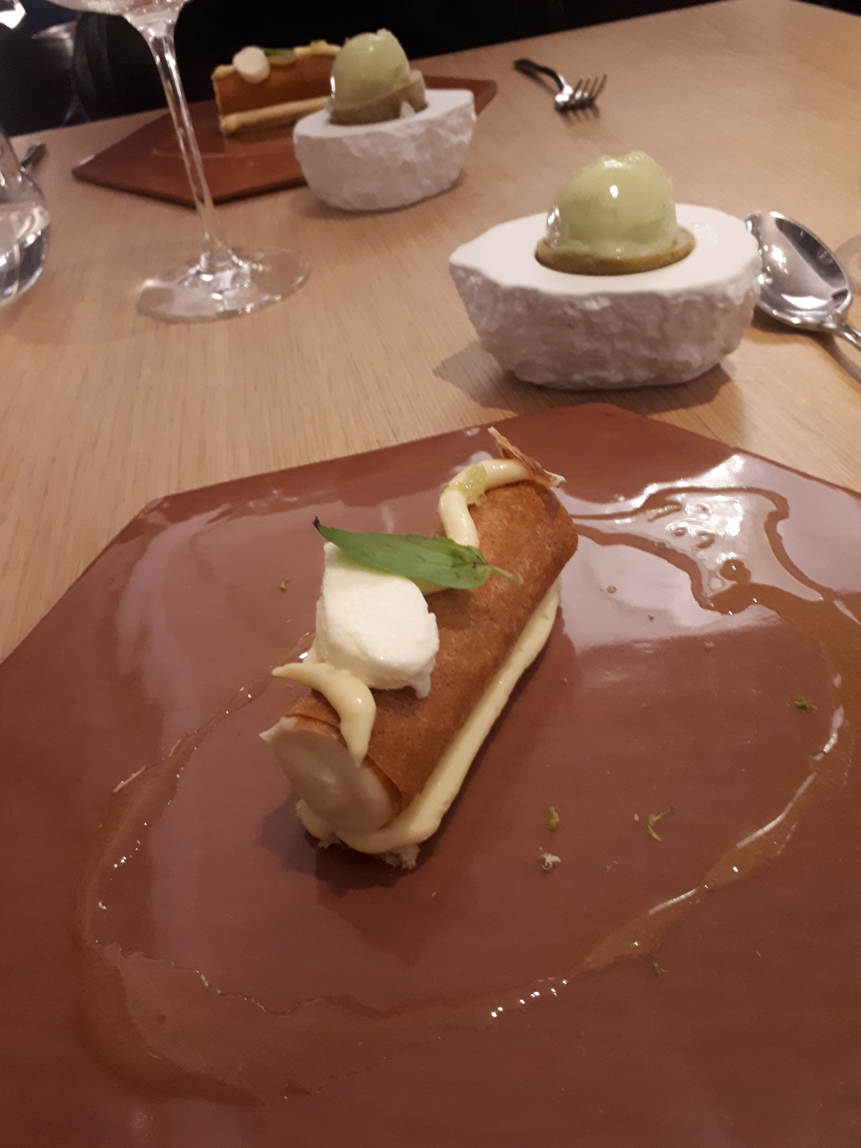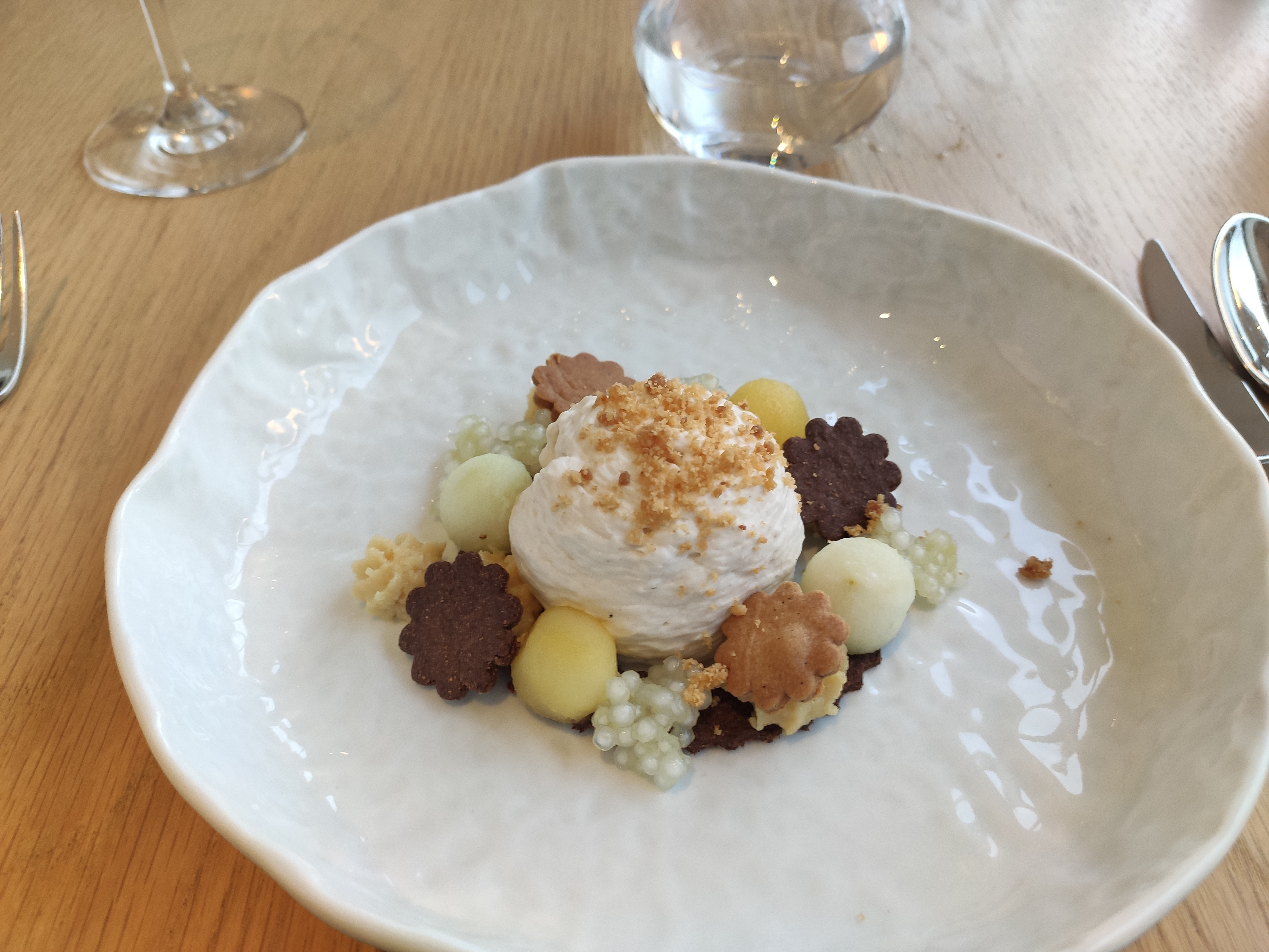 Tout est fin et précis. Ce n’est pas gourmand. Mais une exécution au top. Mention spéciale pour Nicolas notre jeune sommelier dans ce menu dégustation mer et vins