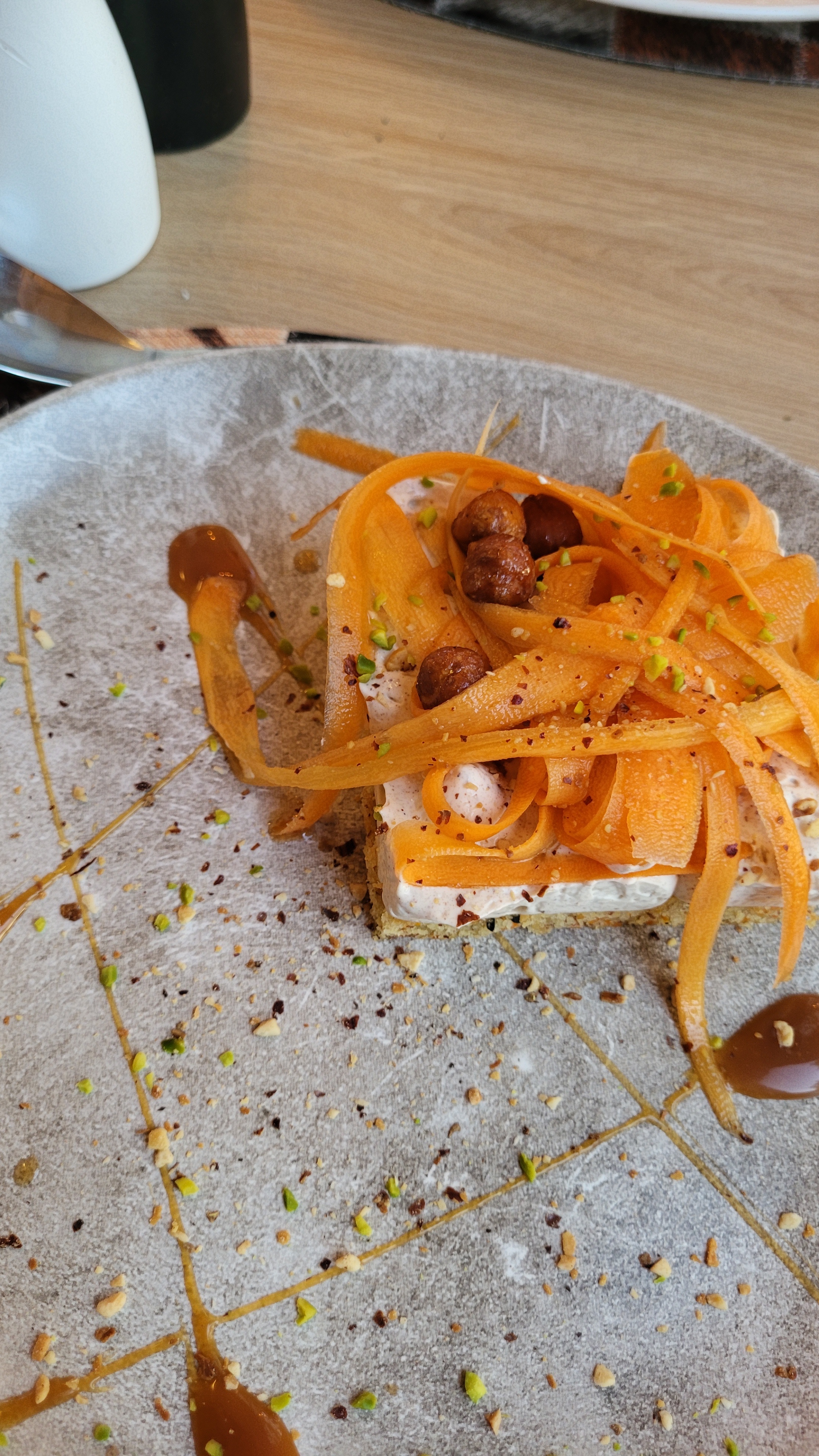 Je me régale avec chaque plat. La cuisine est soignée et délicieuse, un ++ pour l'assiette du Larmont, l'ambiance est zen, le service agréable et le panorama est époustouflant. Je conseille.