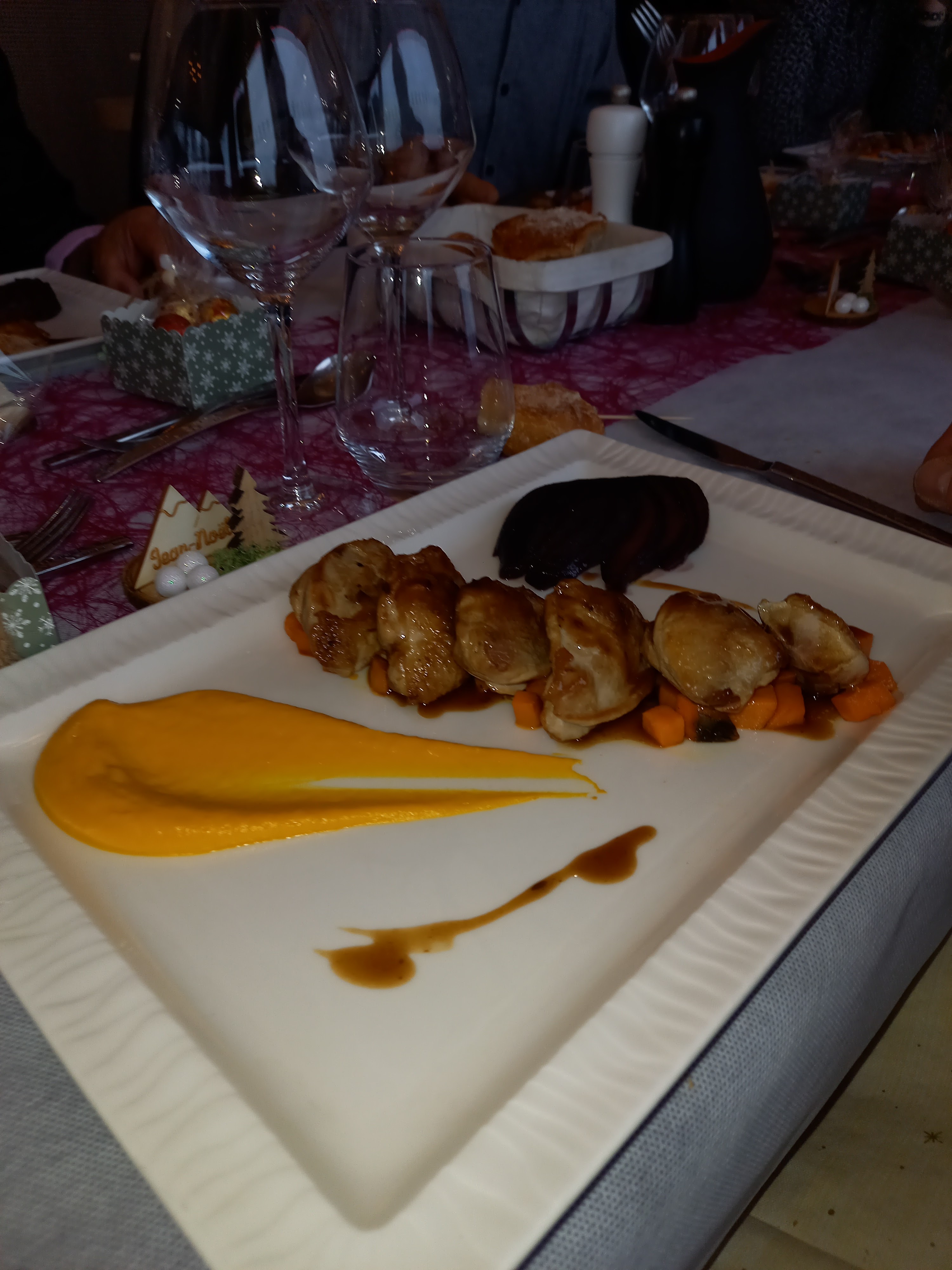 Nous avons tous les deux très apprécier la soirée de l'amuse bouche au dessert même si le mien avait un petit goût de brûler. L'ambiance et la musicienne très bonne malgré 1-2 fausse notes mais ce n'est pas important. Nous reviendrons avec plaisir l'année prochaine.